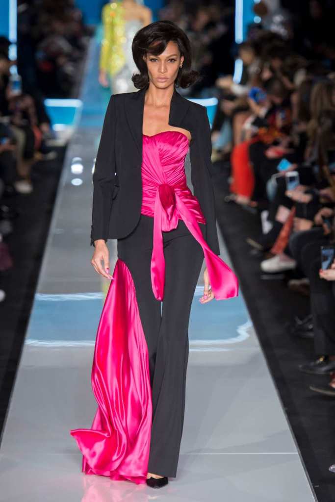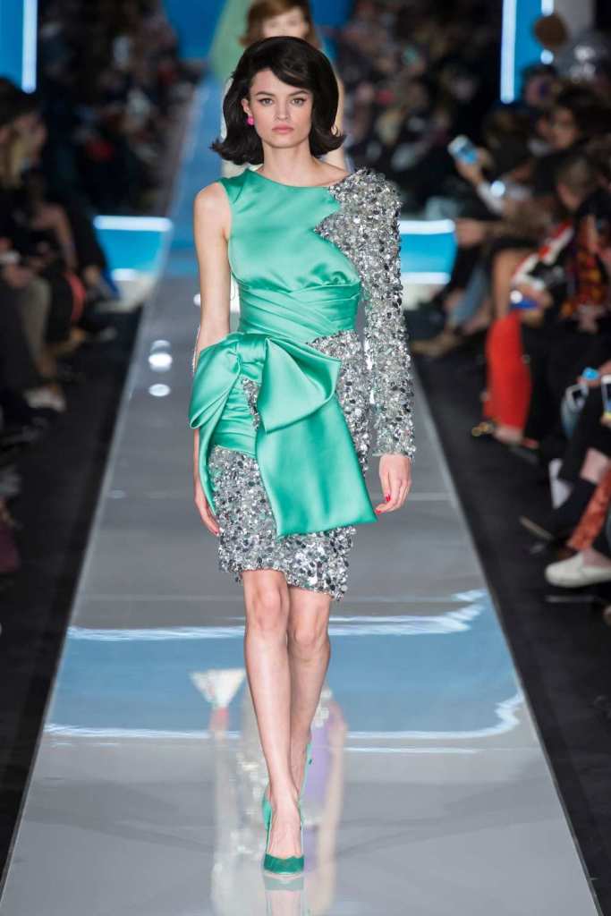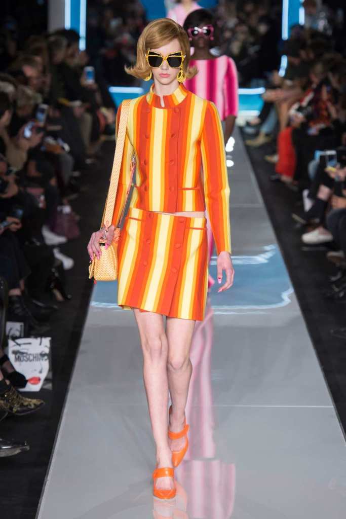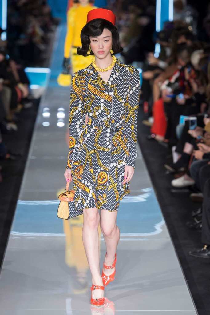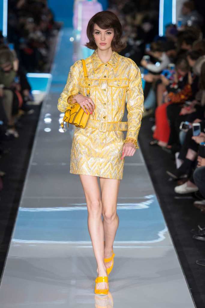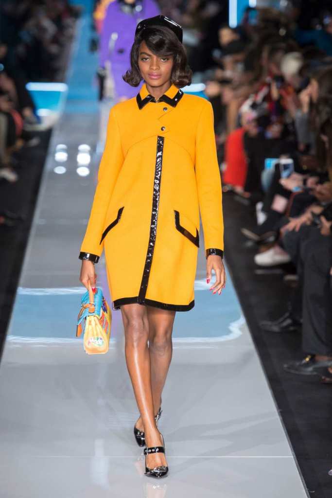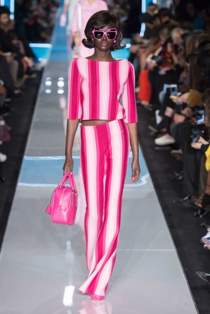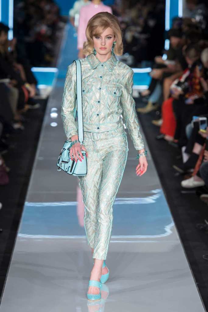 Moschino by Jeremy Scott has always been a pioneer of the unexpected-this time it was Jackie Kennedy-esque suits. Even with all the randomness, this was one of the most toned down and subverted Collections by Scott. He created this kitschy collection fueled by his obsession with conspiracy theories. Moschino’s playful aesthetic, like past collections referencing McDonald’s and Barbie, has a devoted following, favoring joy over philosophy. The show featured vibrant 1960s-style skirtsuits and ball gowns merging retro elegance with modern flair.