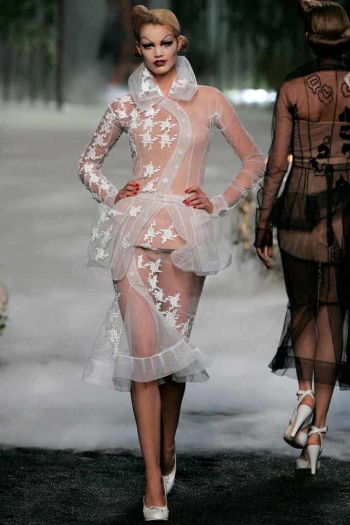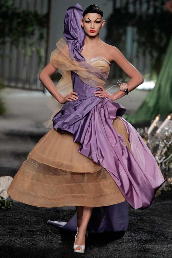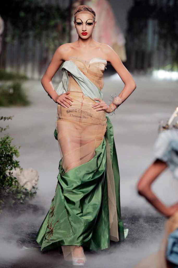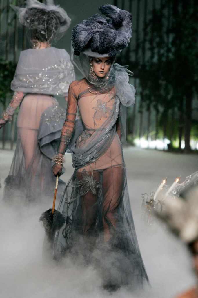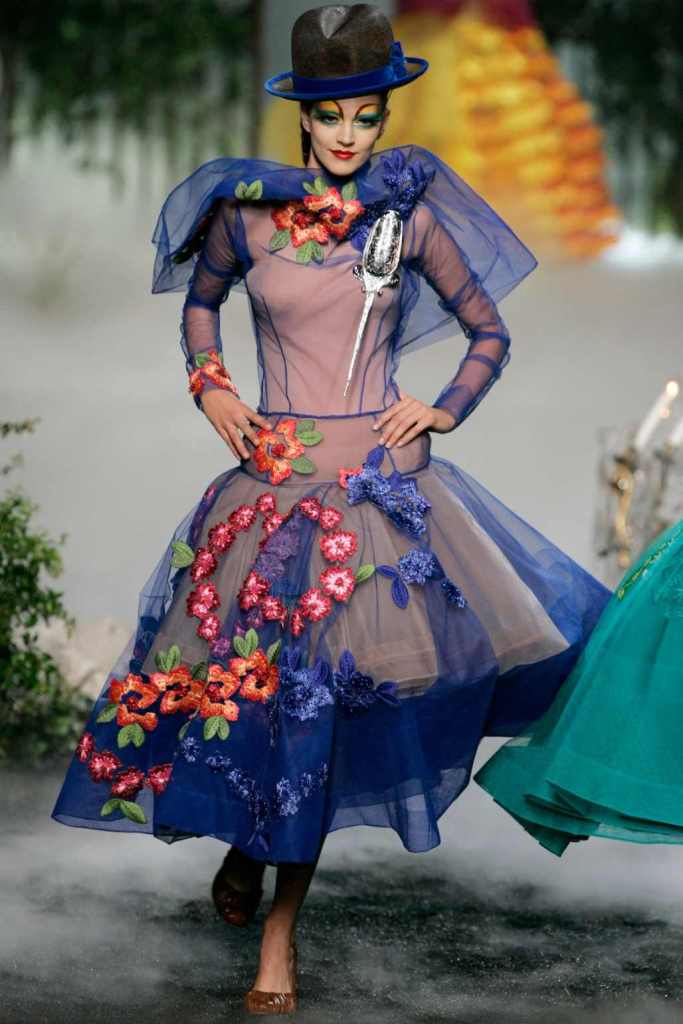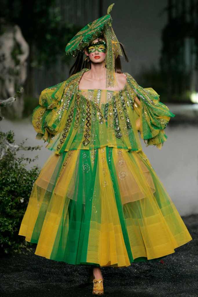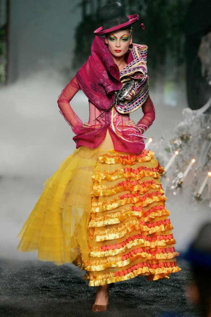 This is one of those rare collections where Galliano so directly revisits the Dior history. Celebrating with his own signature glam, the collection celebrates the New Look. Every look is transparent, deconstructed and incredible. The collection also reinterpreted how Christian Dior was photographed by iconic photographers like Irving Penn and Cecil Beaton. They often placed Dior creations in a romantic dreamscape, which is very evident in these clothes. The use of color in this connection is saturated, vivid and contrasting. With the significant use of sheer fabric, This collection also emphasizes the details and artistry.