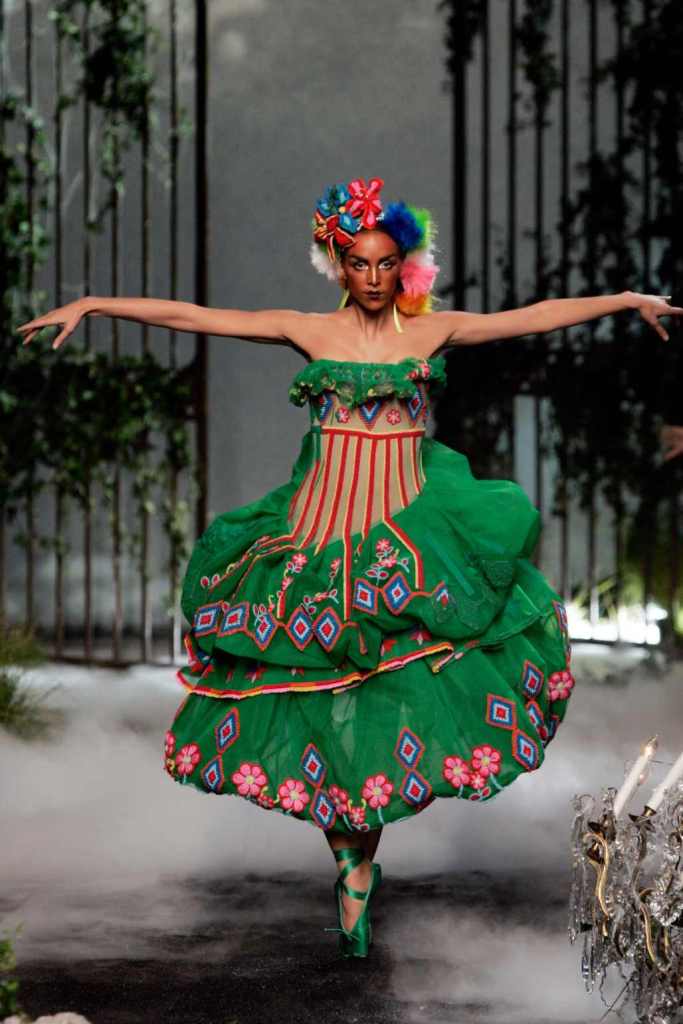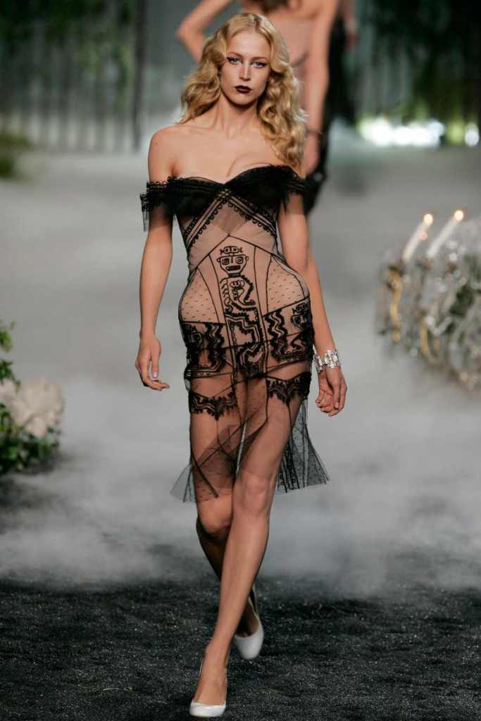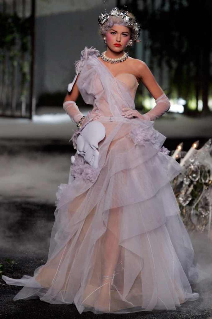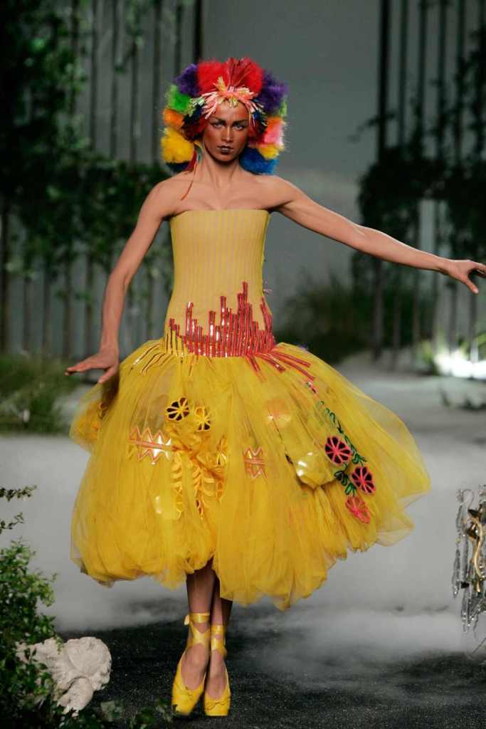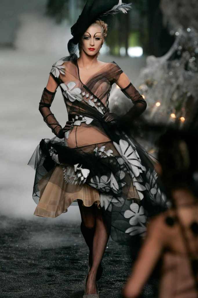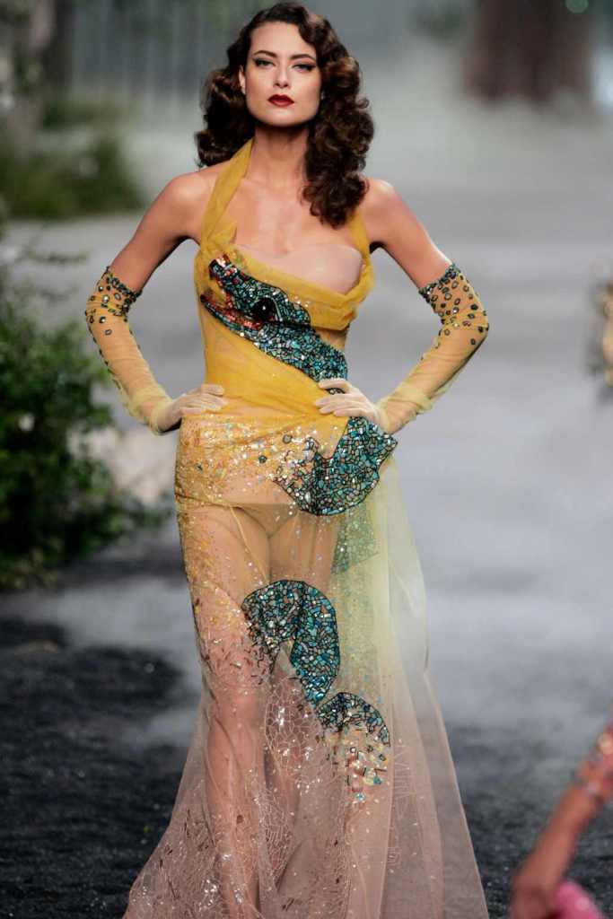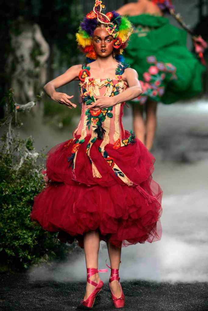 This is one of those rare collections where Galliano so directly revisits the Dior history. Celebrating with his own signature glam, the collection celebrates the New Look. Every look is transparent, deconstructed and incredible. The collection also reinterpreted how Christian Dior was photographed by iconic photographers like Irving Penn and Cecil Beaton. They often placed Dior creations in a romantic dreamscape, which is very evident in these clothes. The use of color in this connection is saturated, vivid and contrasting. With the significant use of sheer fabric, This collection also emphasizes the details and artistry.