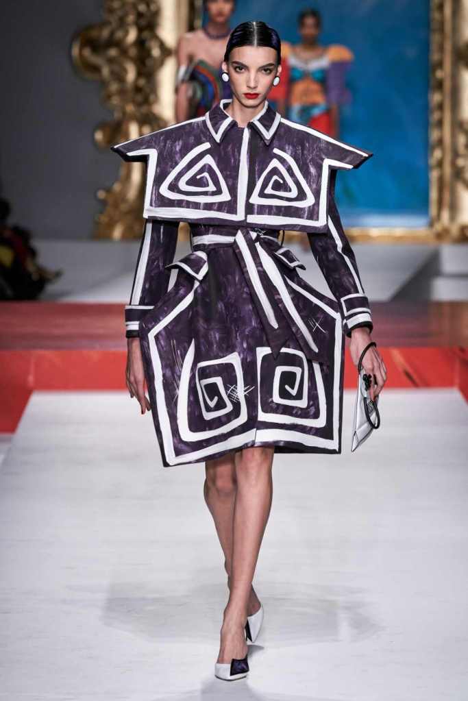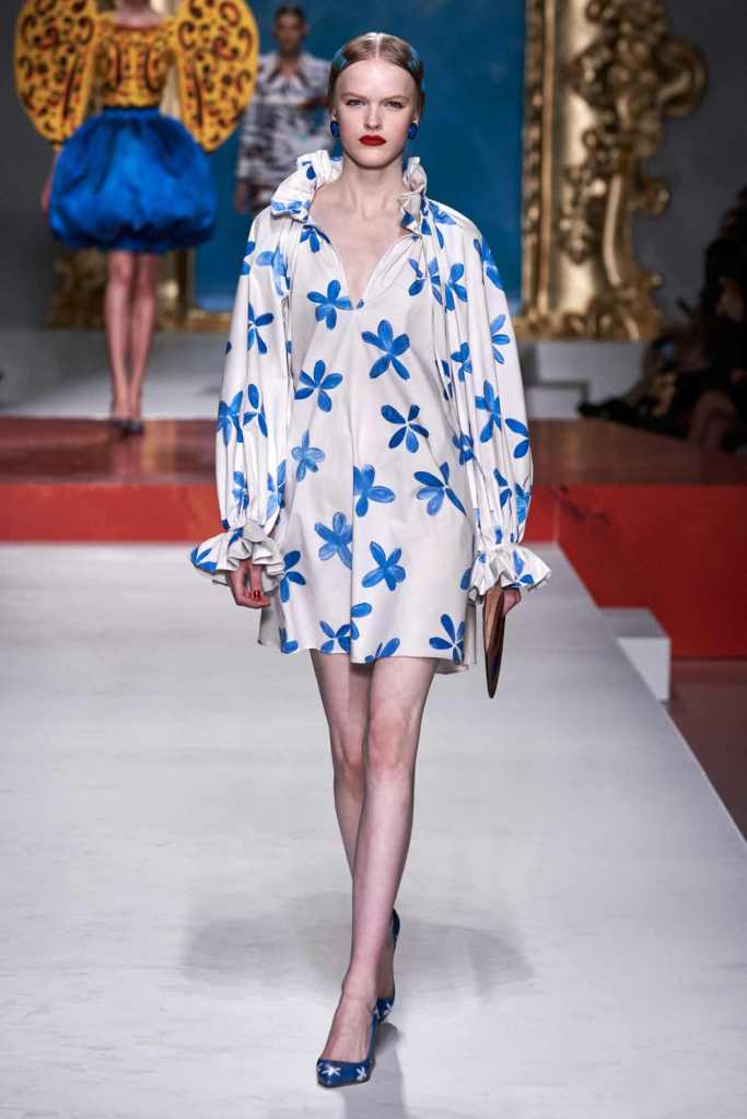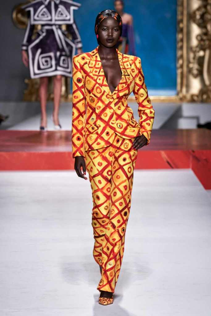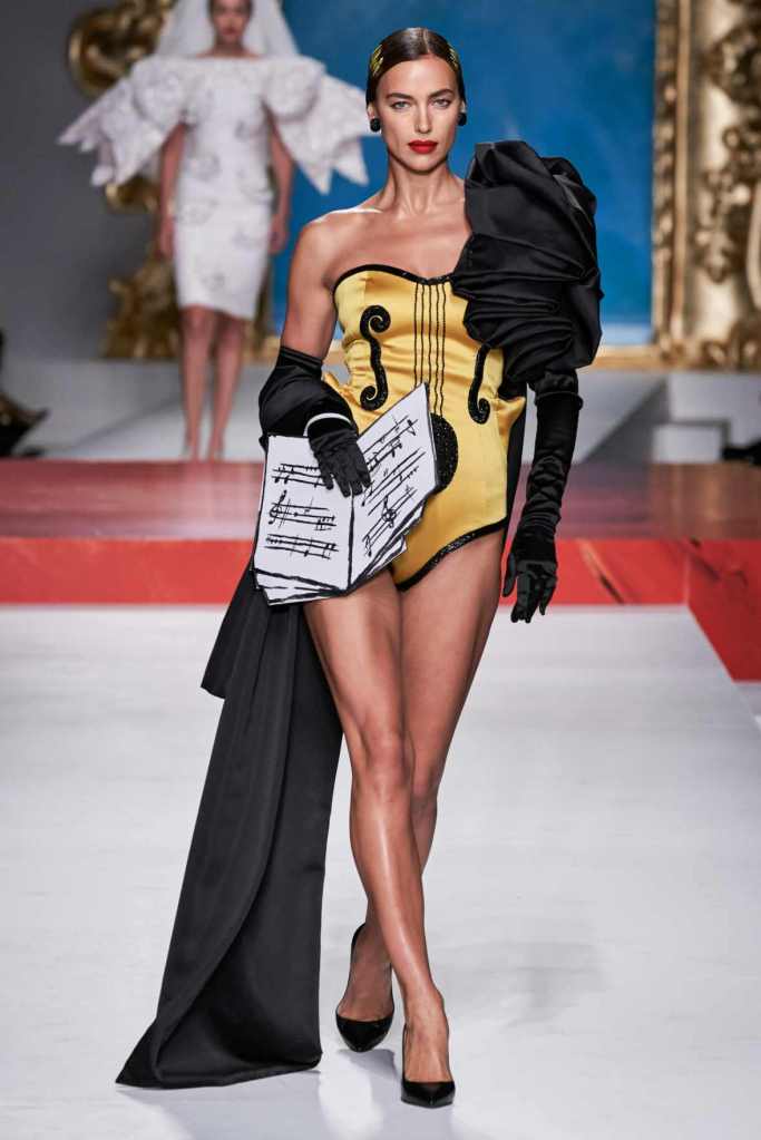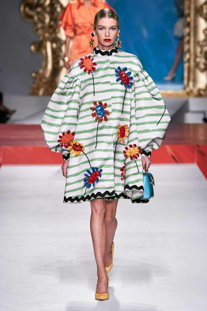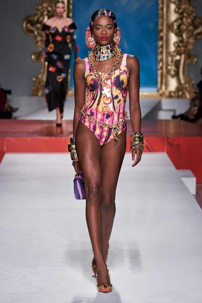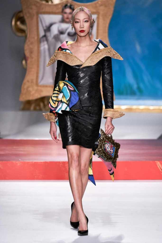 The runway transformed into a living art gallery, showcasing vibrant colors and abstract motifs reminiscent of Picasso’s diverse artistic phases. With Moschino’s bold interpretation, it’s hard to distinguish whether life is imitating art or vice versa, but one thing is certain – these Moschino creations are impossible to ignore.