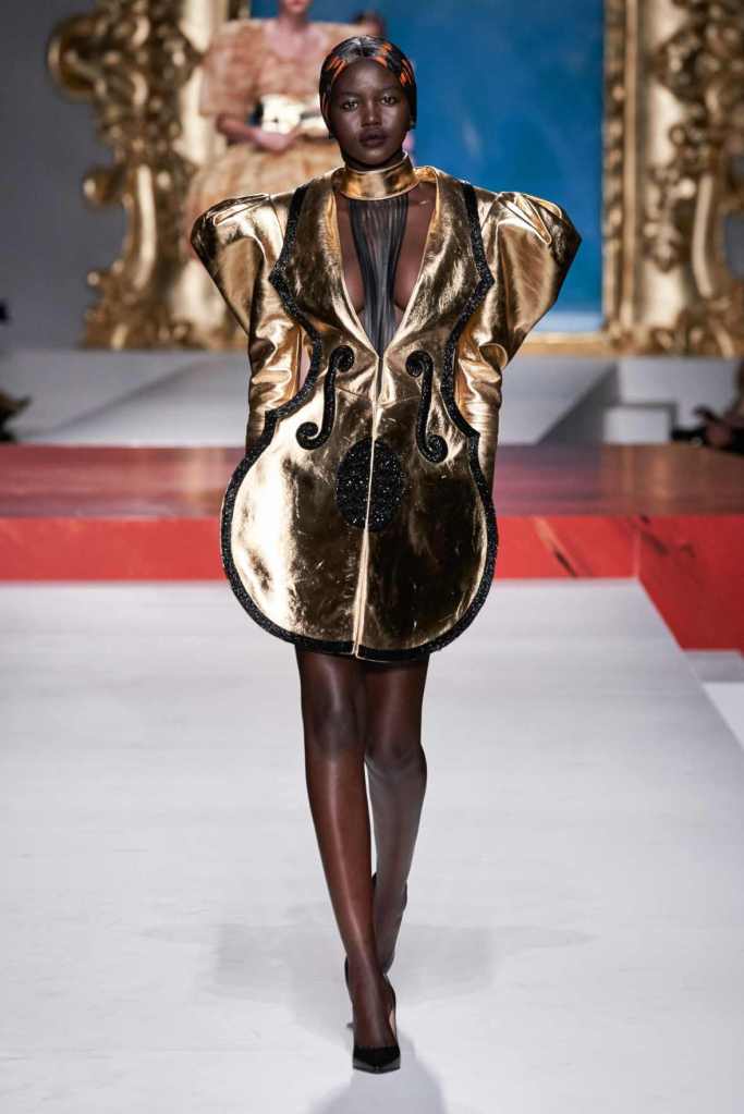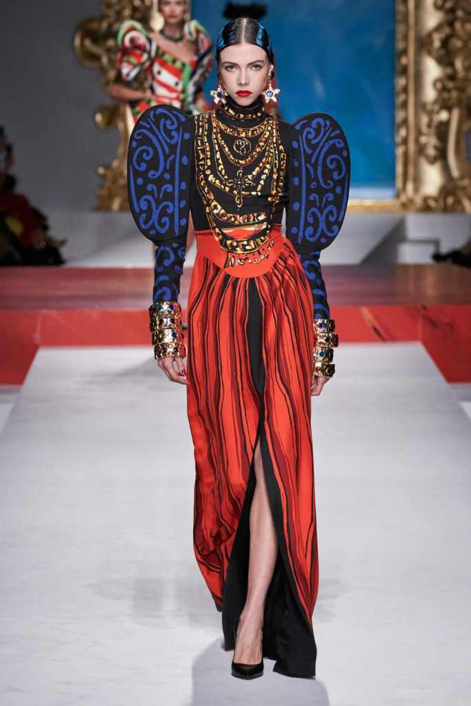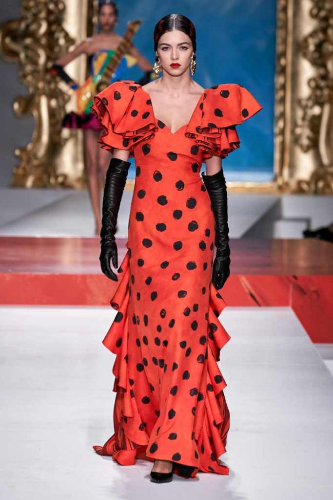We need to do a study on Jeremy Scott’s brain works. This collection, Scott ventured into the realm of fine art, drawing inspiration from the vast body of work created by Pablo Picasso. This collection is probably one of his finest moments-there is drama, and there is history there is beauty, and there is that pure Moschino surpiese. Everything here has seamlessly come together: the clothing, the styling, and the models. This collection exudes a delightful blend of playfulness, ingenuity, sensuality, boldness, and elegance.
