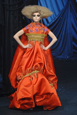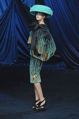John Galliano, in his haute couture mode, created voluminous satin gowns adorned with flamboyant elements added some spectacle. There were gravity-defying hats, resulting in a surprisingly chic 60s elegance. The opulence of the collection, accentuated by the vivid and striking colors such as rich reds, deep magentas, vibrant yellows, regal purples, and zesty limes, created an atmosphere where the sheer abundance of visual elements pushed the boundaries