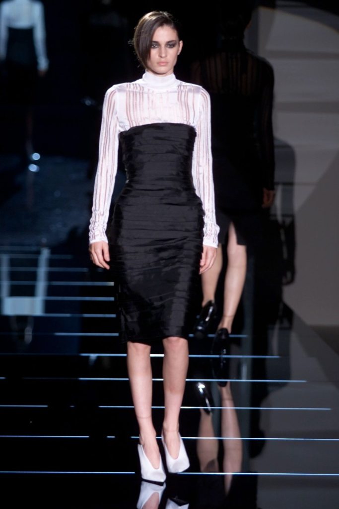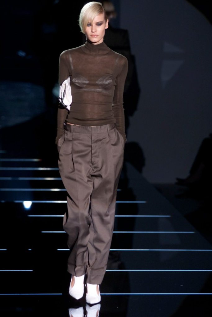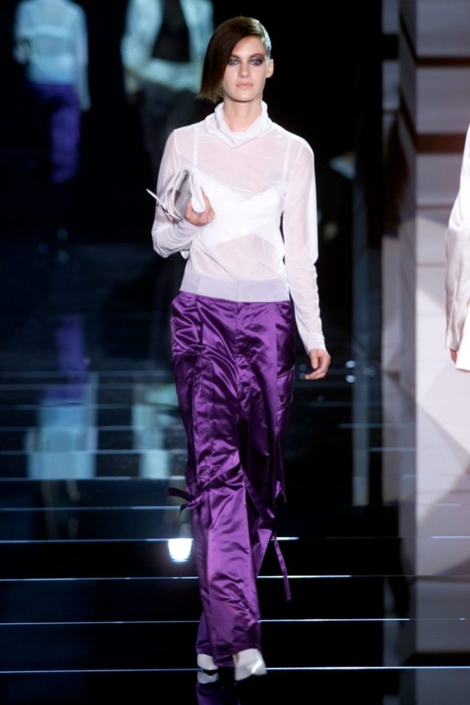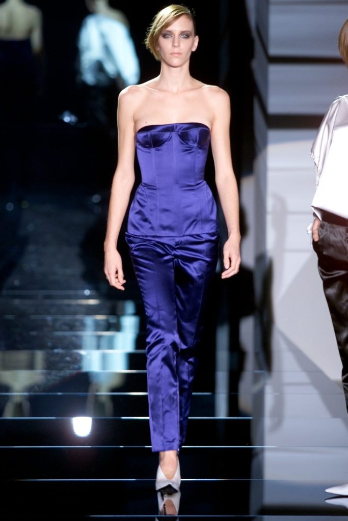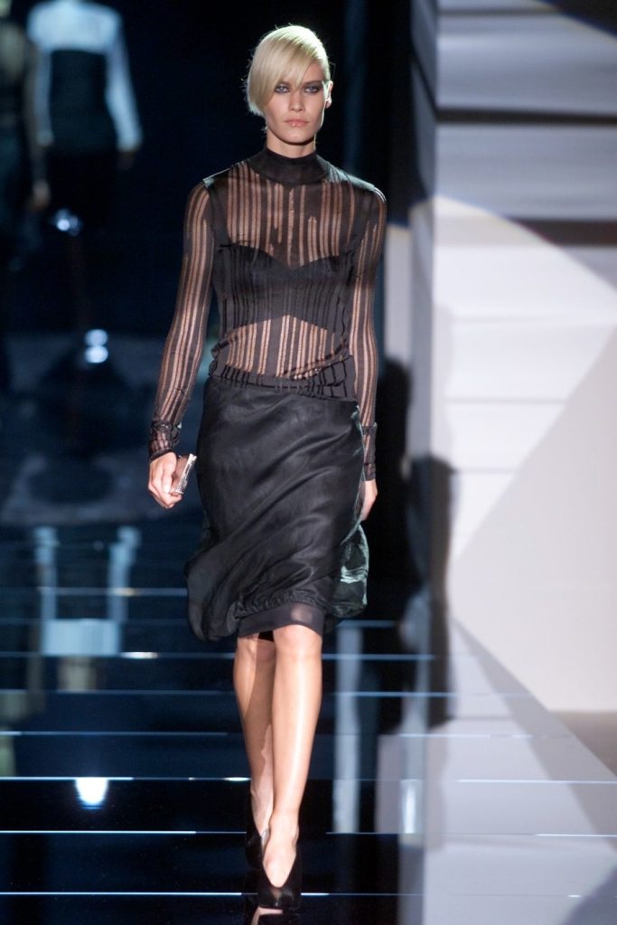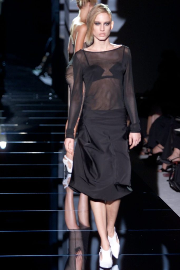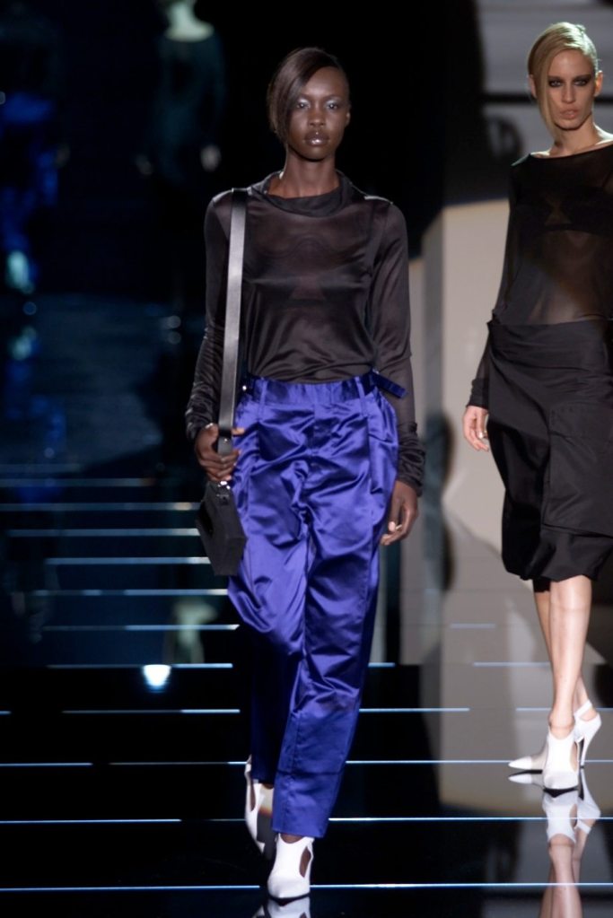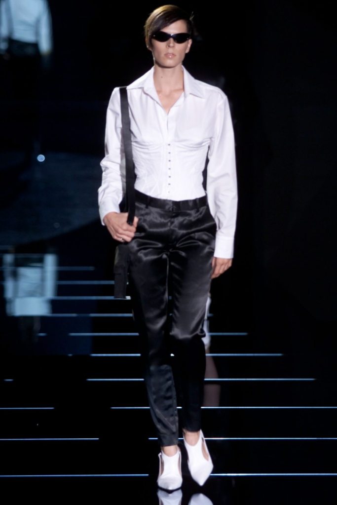Tom Ford showcased a daring collection for Gucci, featuring dominatrix-inspired looks and sleek outfits. The prominent use of satin throughout the collection adds a touch of gloss and drama. The assortment features barely-there swimsuits, seductive bustier tops, sheer layers, versatile cargo pants, safari jackets, and luxurious satin jumpsuits and lowers. The collection’s styling appeared somewhat chaotic which detracted from the otherwise racy pieces. Despite this minor drawback, Gucci delivers a collection that balances sensuality with practicality, making it a noteworthy addition to the Tom Ford era.