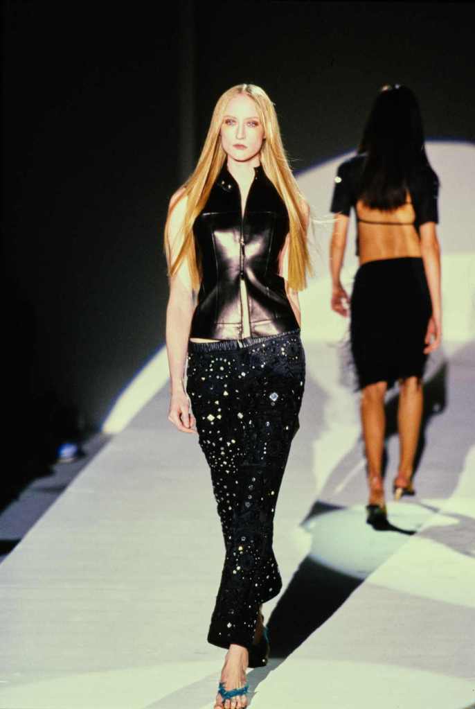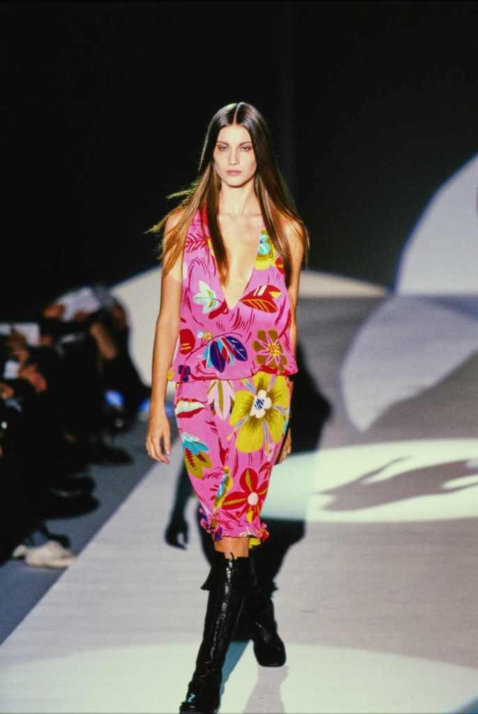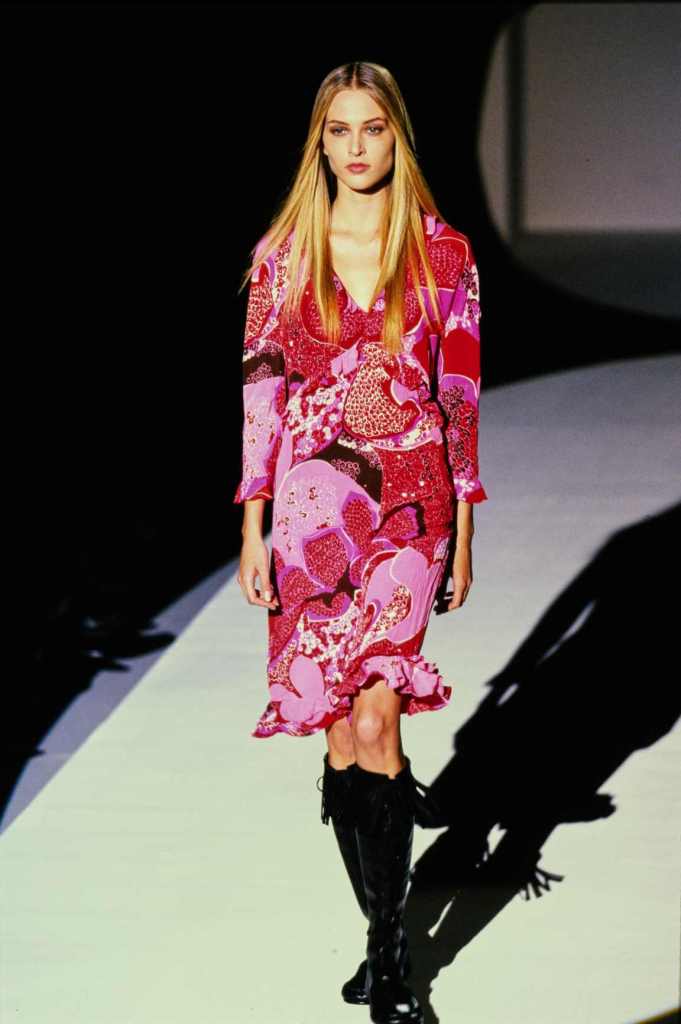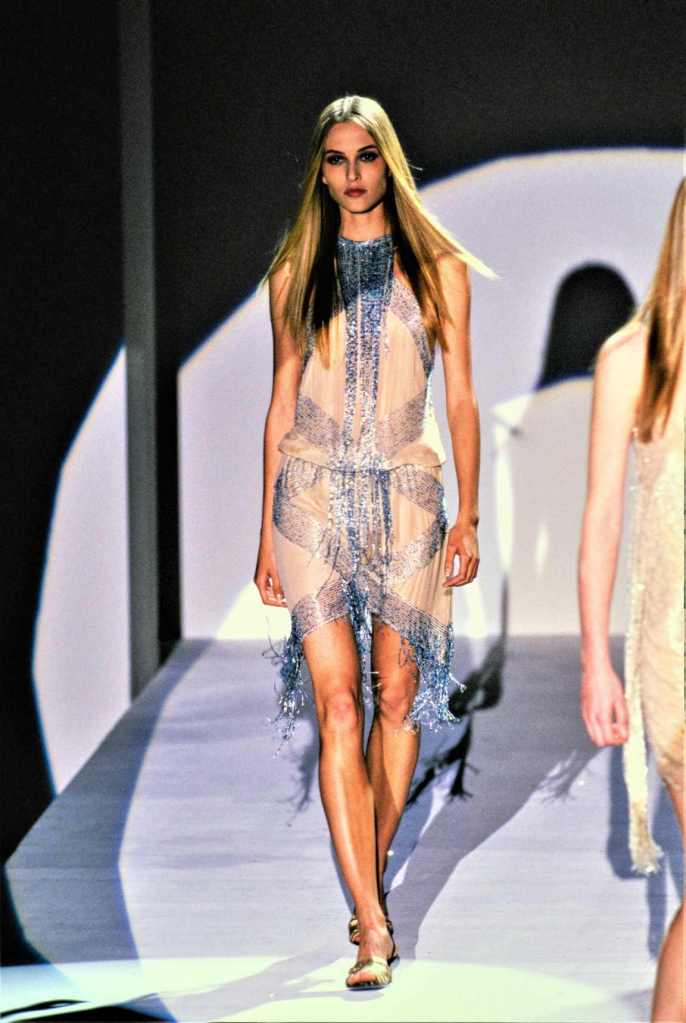 The runway showcased a dazzling array of vibrant hippie floral prints, fur-trimmed skirts, and tiny bikinis, creating a visual feast for the senses. Embellished trousers and leather jackets added an edgy touch to the lineup, while fringed metallic pieces brought a sense of drama to the grand finale.Tom Ford’s departure from his minimalistic roots to embrace this haute and hippie mood was a bold move. Iconique!