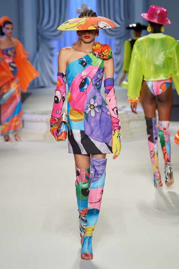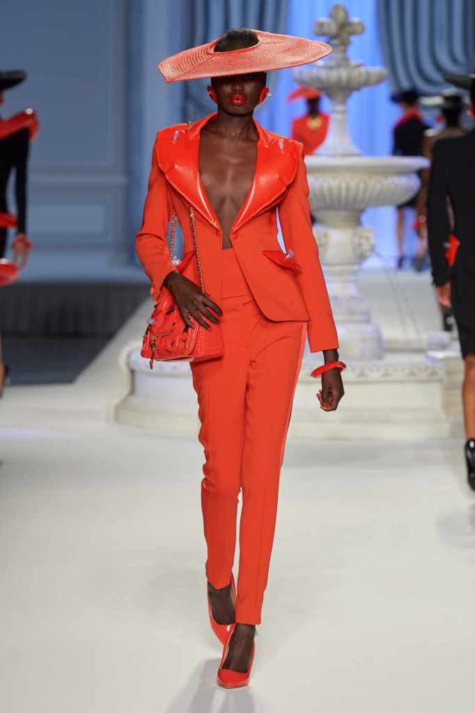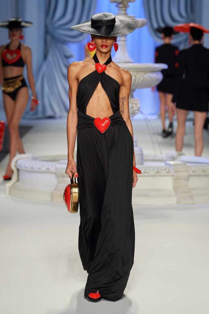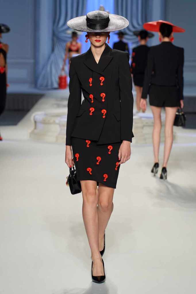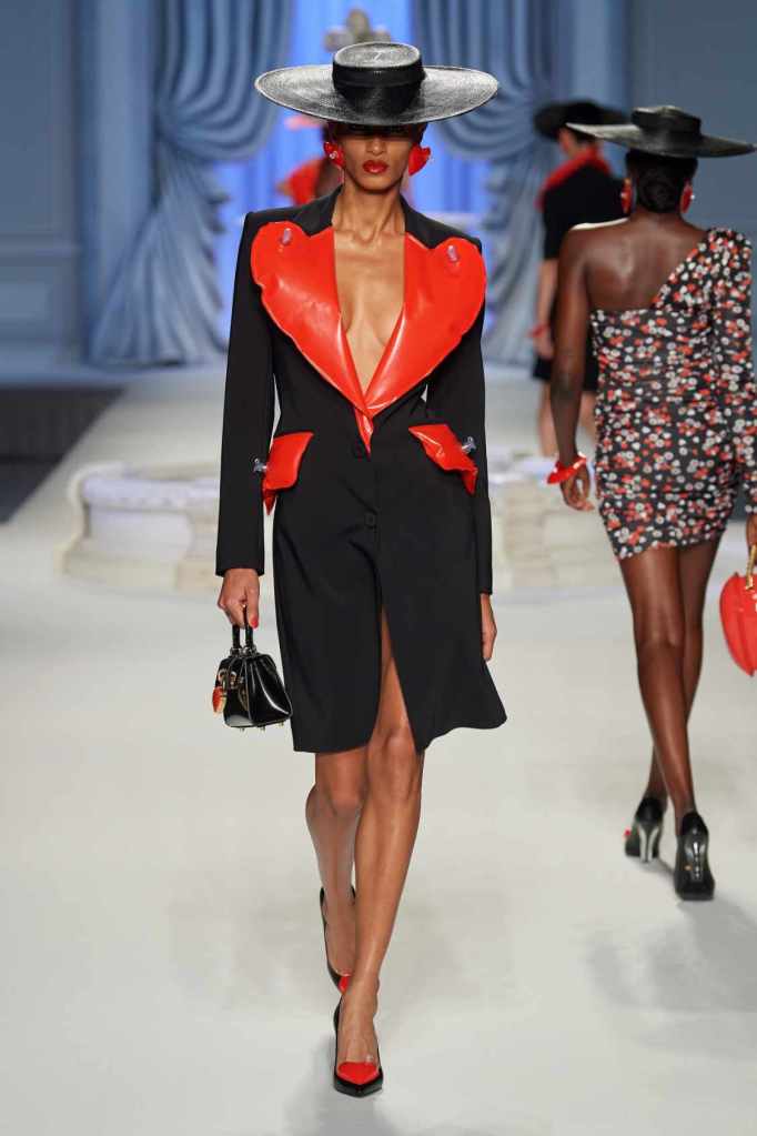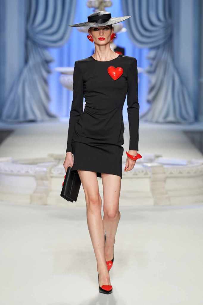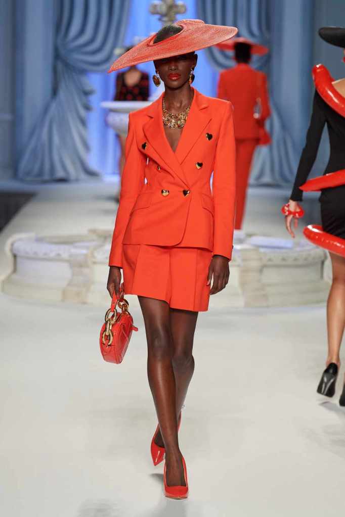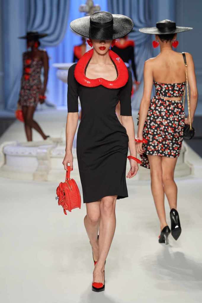 From cocktail dresses with flotation devices to inflatable lapels on noir suits, the collection marries fashion with humor. In a frenzy of colors and extravaganza, the looks that surprisingly stood out were some simple black tailored pieces decorated with bright red hearts. A lot of 80s silhouettes, nautical references and dramatic inflatable eveningwear. Each piece is layered with thoughtful humor – something Scott excels at. The charm of Moschino lies in its excess and this collection was excessively fun!