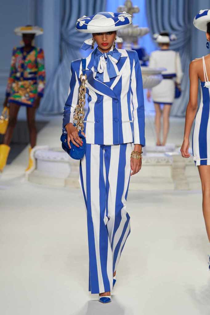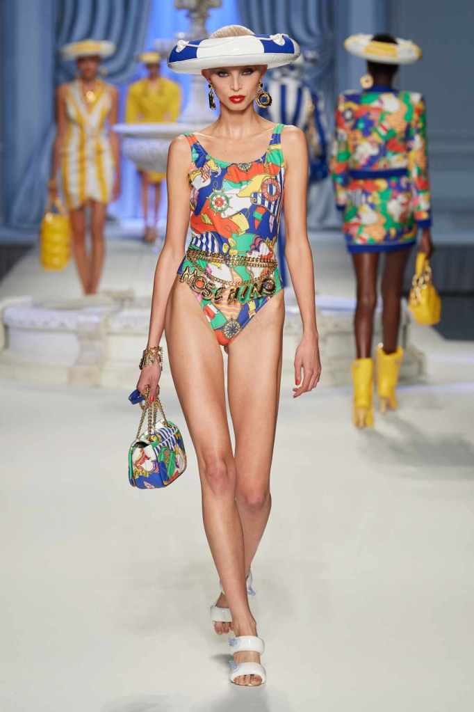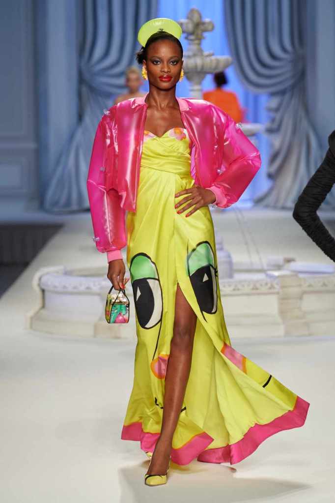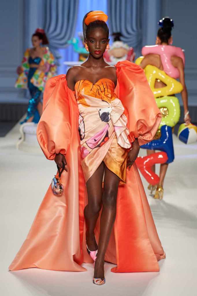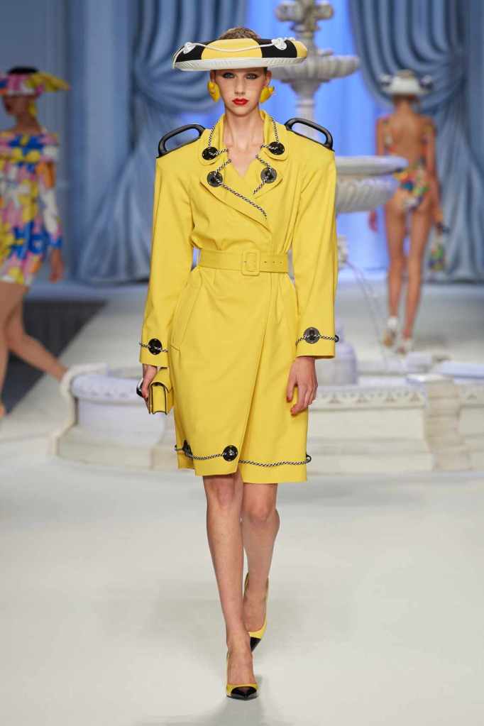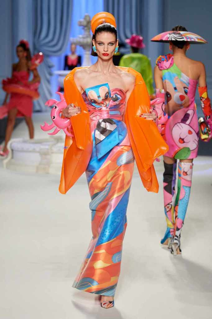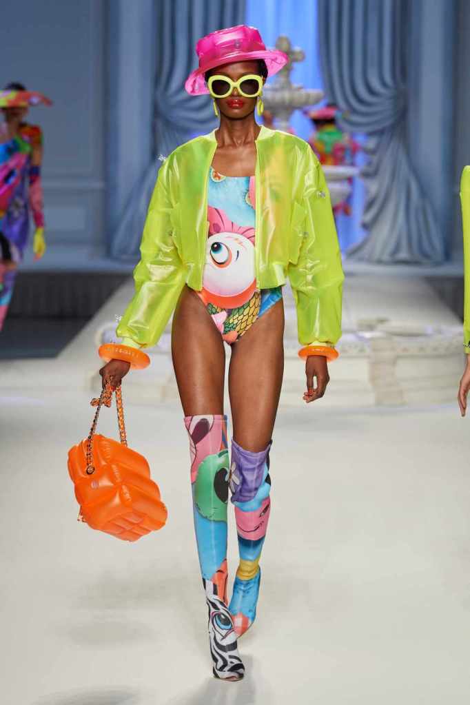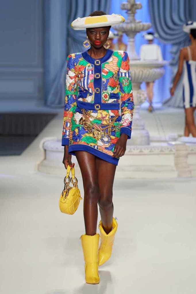 This collection was just Moschino being Moschino! There was some colorful inflatable high fashion and I’m very much here for it- Nearly every outfit featured inflatable details. The idea for inflatable fashion came to Jeremy Scott because of the rising costs and inflation rates around the world. I mean that’s just brilliant! The collection showcases symbolic uplift through garments like sporty dresses, boxy jackets, and skirts adorned with faux blow-up hearts, pool toys and life preservers. This playful approach harks back to the brand’s founder, Franco Moschino, who once created a life jacket-inspired piece.