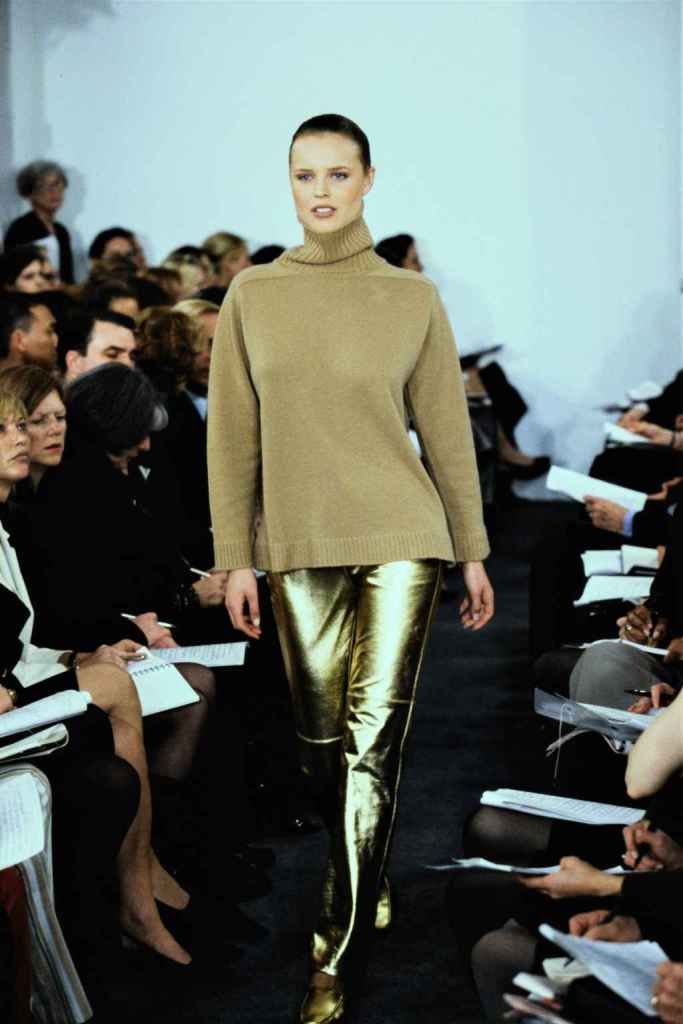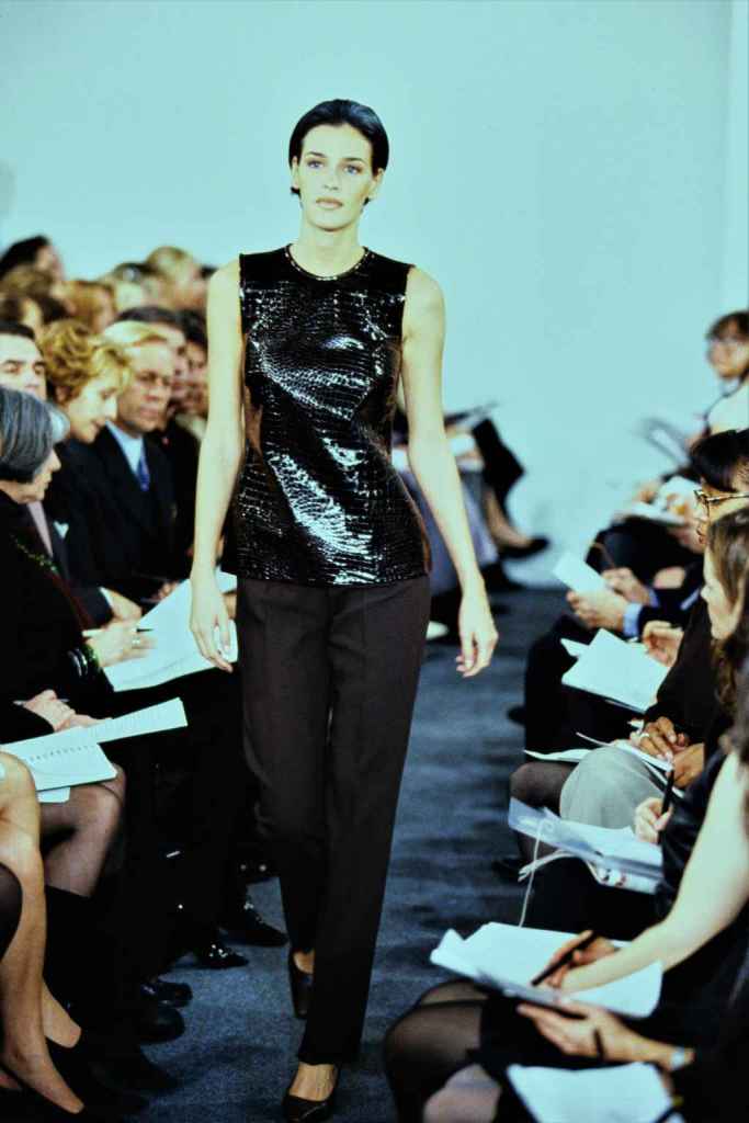 The collection effortlessly channeled classic Kors pieces, blending his signature aesthetic with a perfect embodiment of 90s style. Sleek tailoring dominated the runway, exemplifying precision and sophistication. The standout elements were the statement leather pieces, exuding an edgy yet luxurious energy and metallic accents that added a touch of glamour. The finale featured seductive black gowns, epitomizing unspoken chic. Whether it’s a sleek, tailored blazer or a minimal evening gown, the pieces are a masterclass in restraint, proving that less is indeed more.