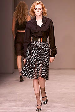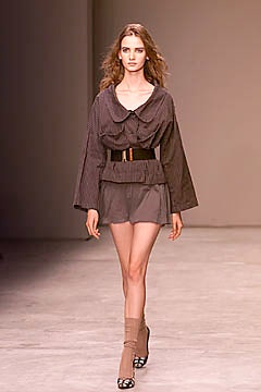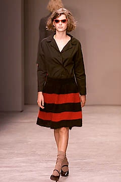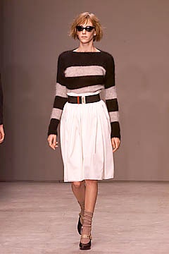 This Miu Miu collection effortlessly combines relaxed silhouettes with a restrained palette of neutral colors, resulting in a charming blend of minimalism and sophistication. The girly and playful spirit of the collection shines through in its essentials, including pleated skirts, mohair sweaters, wide belts, baby-doll dresses and casual mid-dresses. These pieces are elevated with a young, utilitarian spin, offering a fresh take on Y2K’s outrageous staples. Miu Miu’s ability to seamlessly match comfort, style, and youthful spirit in this collection is a testament to the brand’s enduring relevance.