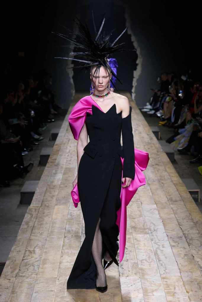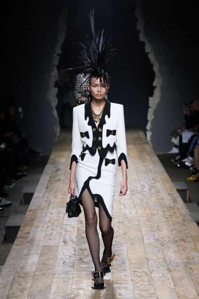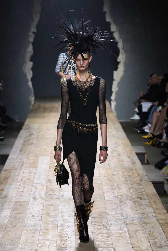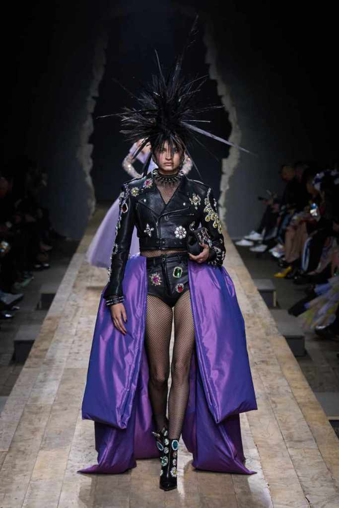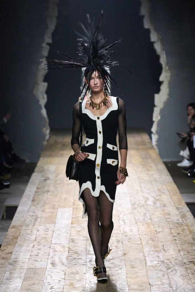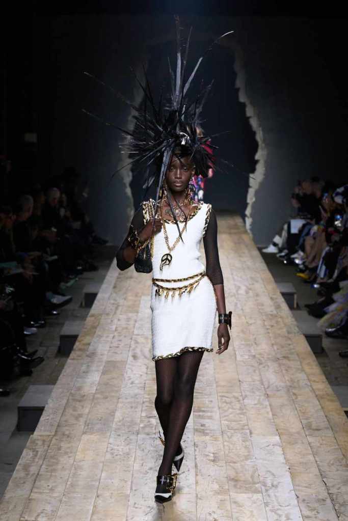 Who knew this was Jeremy Scott’s last collection for Moschino, unfortunately, it was one of his not-so-good ones. I won’t be over Scott leaving Moschino for a long time and for the sake of this past brilliant work, I’ll try not to shit too much on this collection. Salvador Dali’s ‘The Persistence of Memory’ served as the initial reference point for this collection. There were obviously heavy Punk references and the Moschino version of a punk princess. This representation of today’s distorted times was present in droopy skirtsuits and jewelry. Heavy costume jewelry, biker jackets, elaborate mohawk headpieces, embellished tailored skirt suits, satin decorated extravagant gowns. The excess in this collection was on brand and adds much-needed drama. It showcases a rebellious direction with a touch of surrealism and nonconforming aristocracy. The points he tried to make didn’t exactly land but it featured some enjoyable clothes. While it’s far from the iconic pieces Scott has created but is a decent closure to his Moschino chapter.