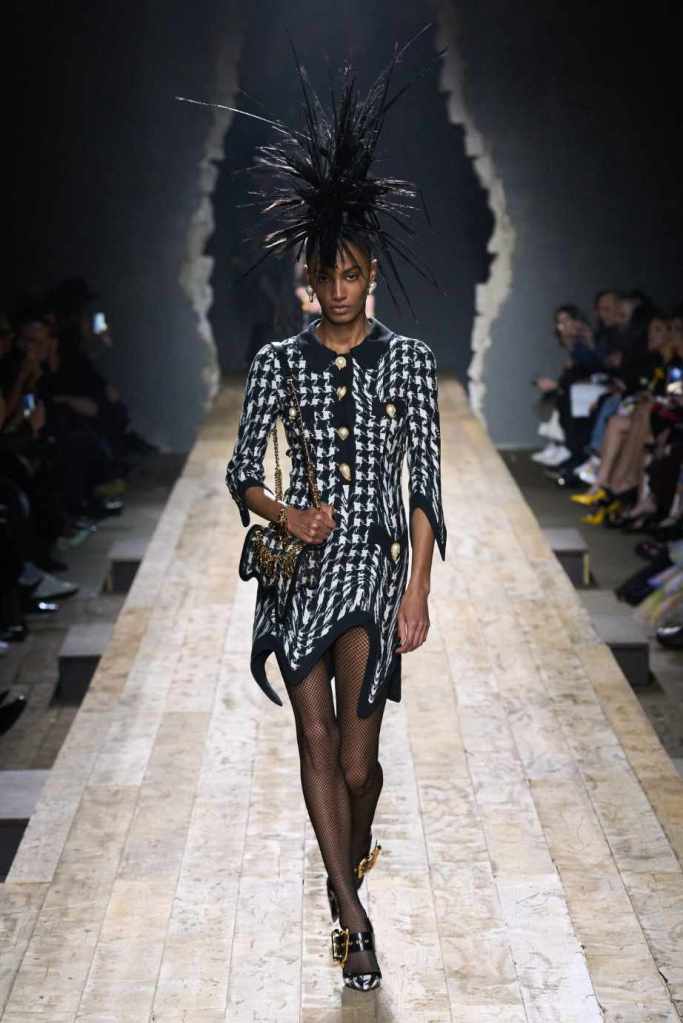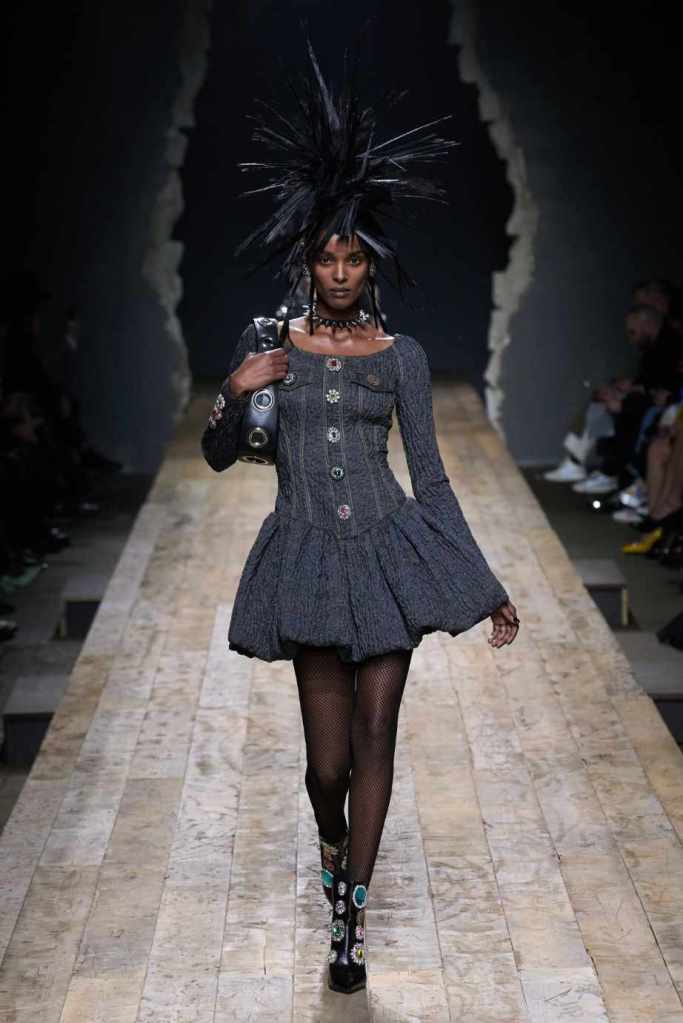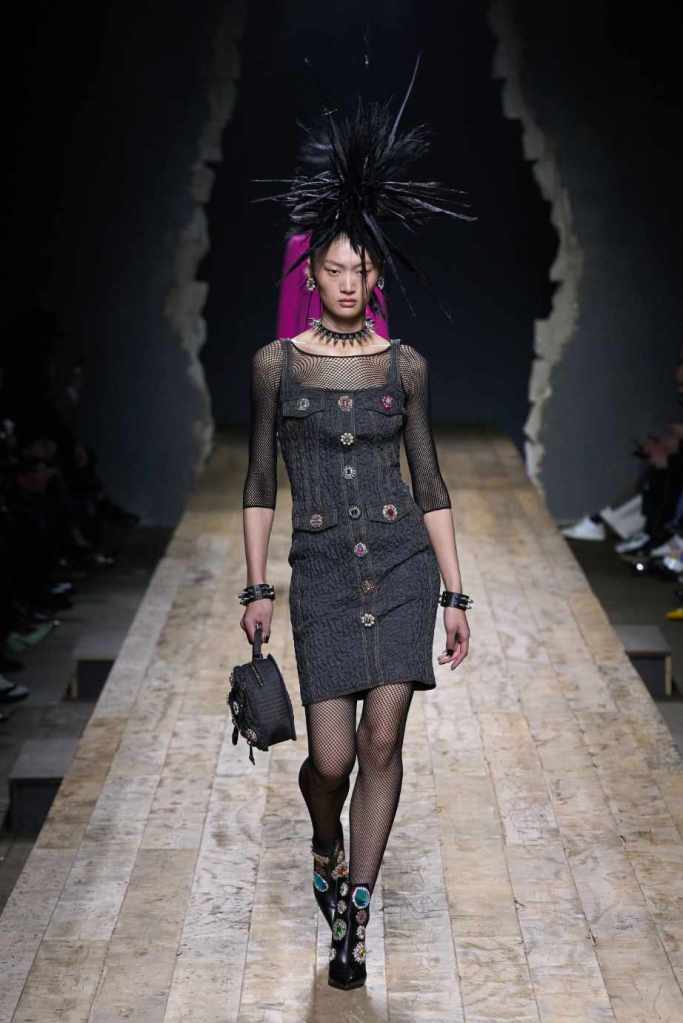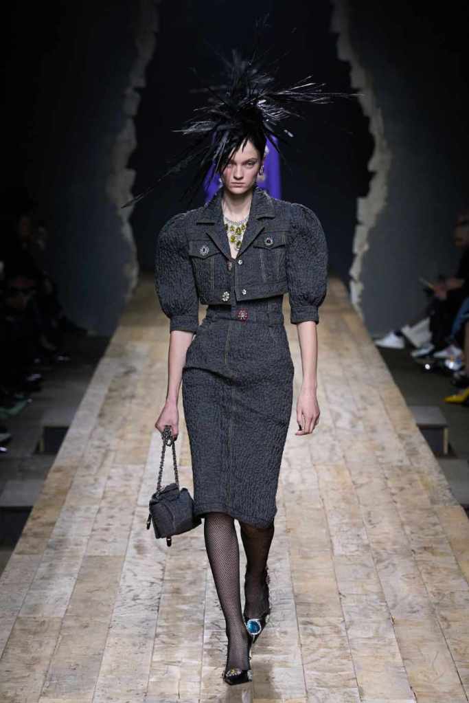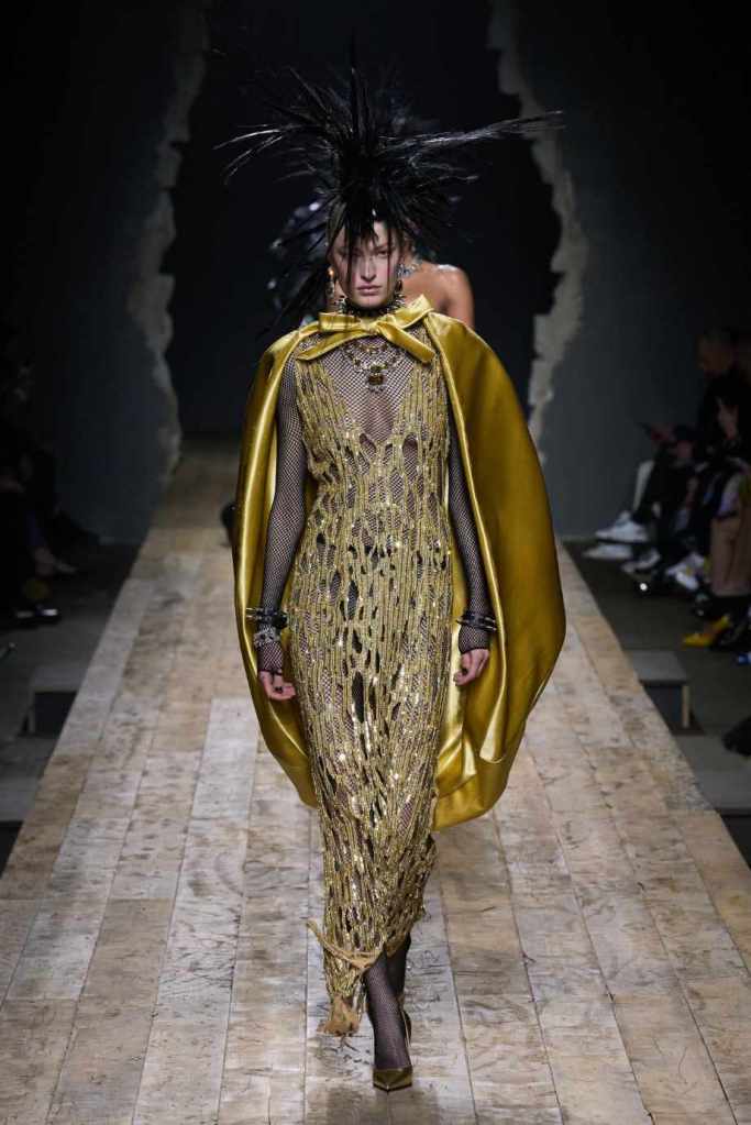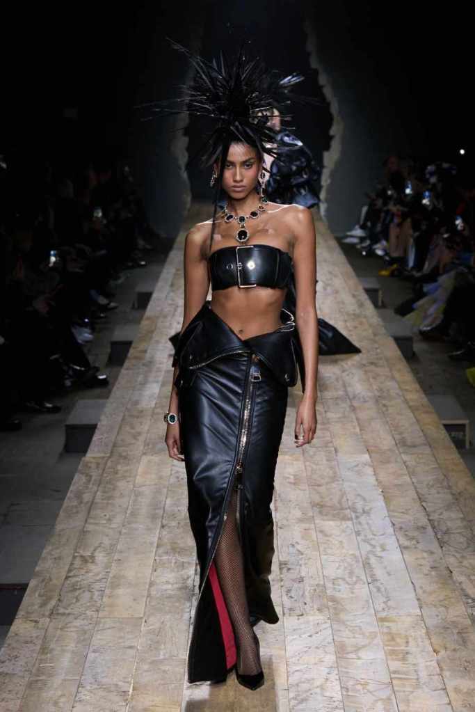 Who knew this was Jeremy Scott’s last collection for Moschino, unfortunately, it was one of his not-so-good ones. I won’t be over Scott leaving Moschino for a long time and for the sake of this past brilliant work, I’ll try not to shit too much on this collection. Salvador Dali’s ‘The Persistence of Memory’ served as the initial reference point for this collection. There were obviously heavy Punk references and the Moschino version of a punk princess. This representation of today’s distorted times was present in droopy skirtsuits and jewelry. Heavy costume jewelry, biker jackets, elaborate mohawk headpieces, embellished tailored skirt suits, satin decorated extravagant gowns. The excess in this collection was on brand and adds much-needed drama. It showcases a rebellious direction with a touch of surrealism and nonconforming aristocracy. The points he tried to make didn’t exactly land but it featured some enjoyable clothes. While it’s far from the iconic pieces Scott has created but is a decent closure to his Moschino chapter.