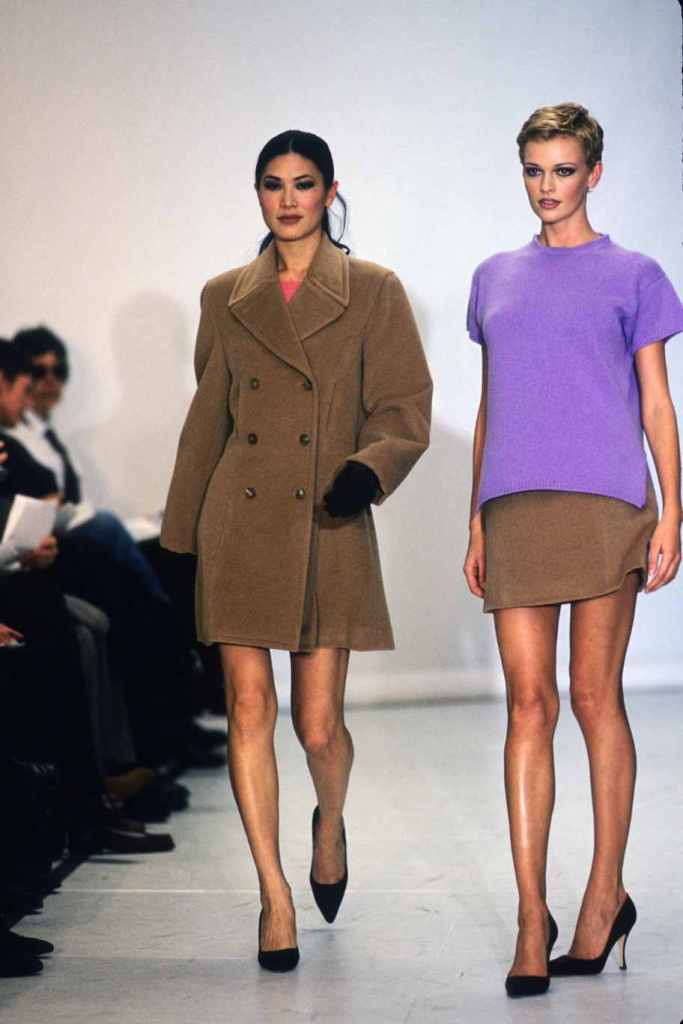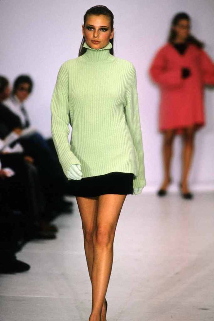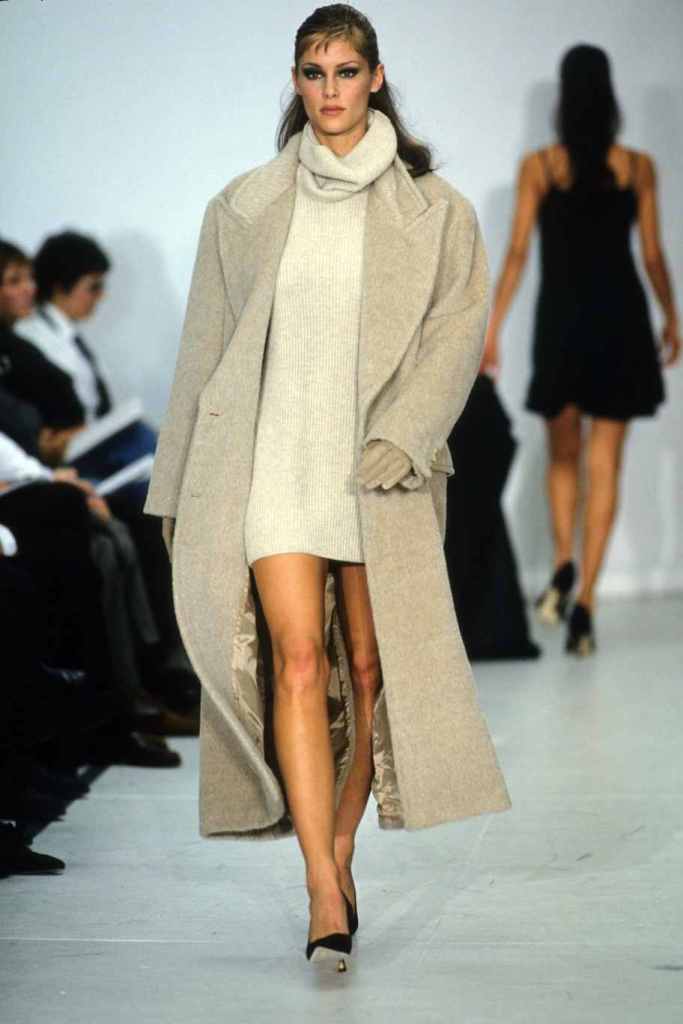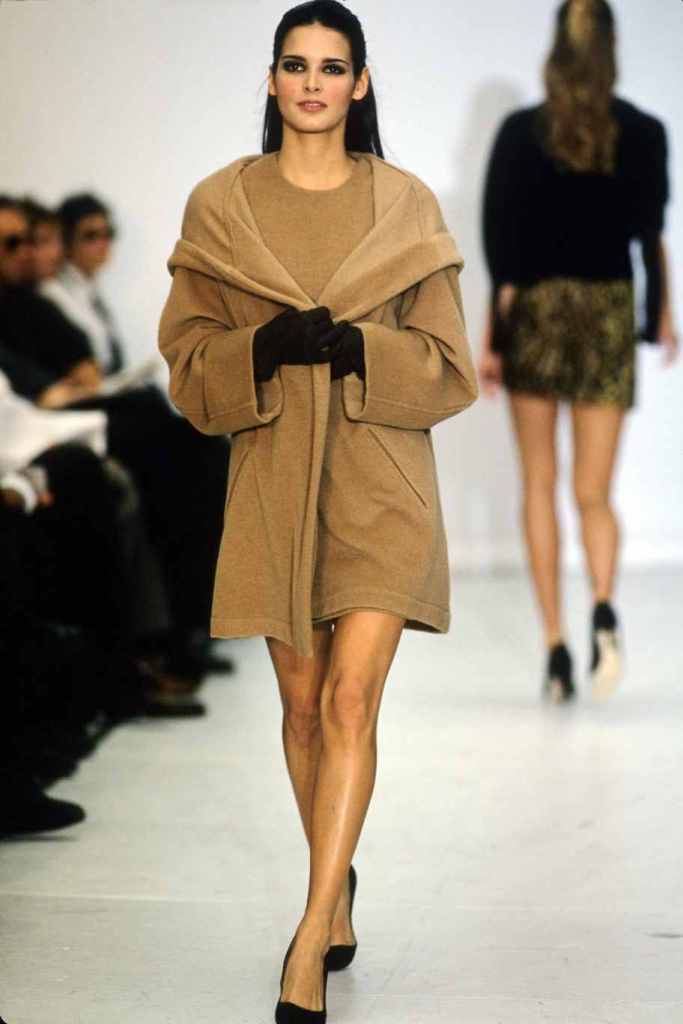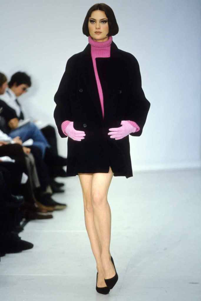 Mini hemlines dominated the runway, emphasizing the allure of sexy legs and confidence. The collection seamlessly blended relaxed suiting with cozy knit staples and stunning mini dresses, while coat dresses added a touch of refined femininity. Kors’ magic lay in his ability to create clean and sleek silhouettes, which exuded a subtle but undeniable sexy energy. The color palette was a revelation, with a base of timeless black beautifully contrasted by pops of bright lavender, pink, and lime; Classic camel tones added depth and versatility.
