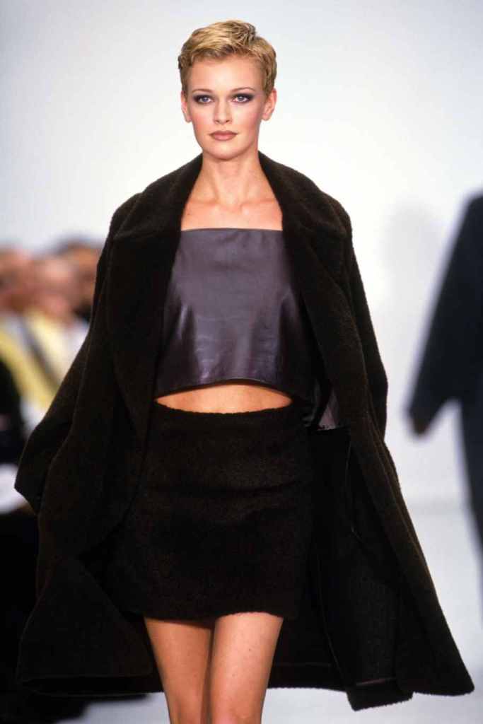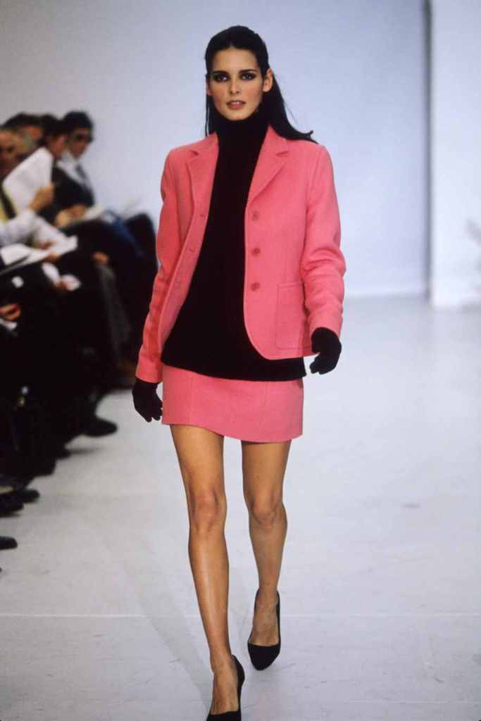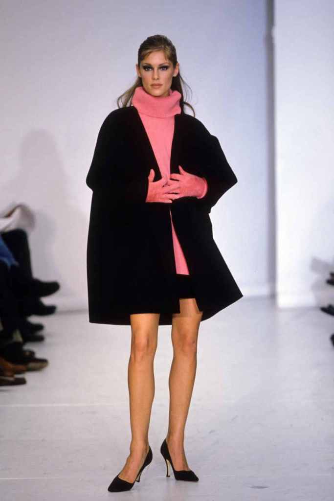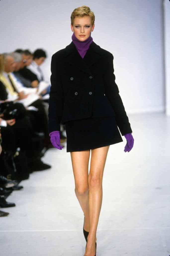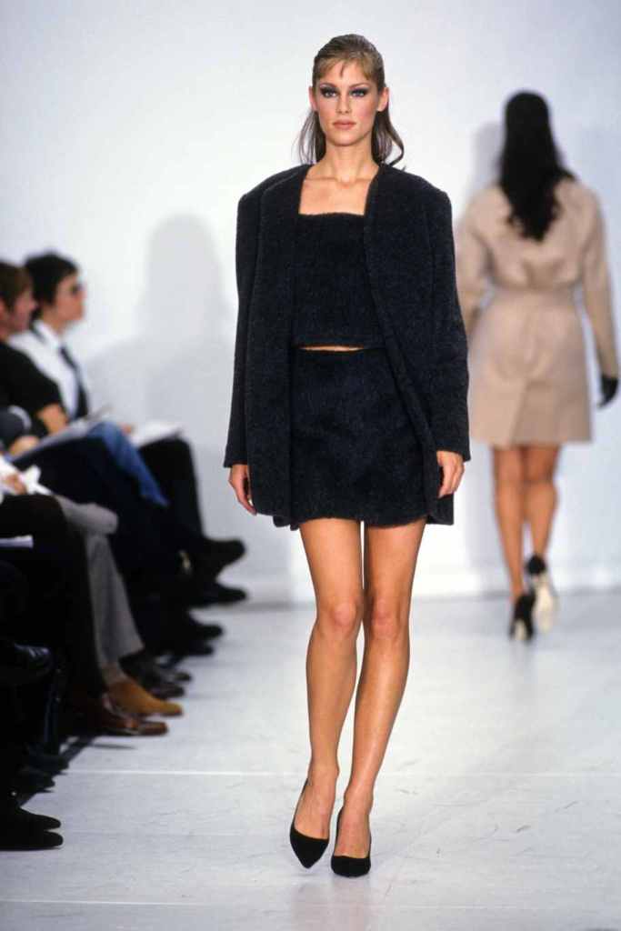 Mini hemlines dominated the runway, emphasizing the allure of sexy legs and confidence. The collection seamlessly blended relaxed suiting with cozy knit staples and stunning mini dresses, while coat dresses added a touch of refined femininity. Kors’ magic lay in his ability to create clean and sleek silhouettes, which exuded a subtle but undeniable sexy energy. The color palette was a revelation, with a base of timeless black beautifully contrasted by pops of bright lavender, pink, and lime; Classic camel tones added depth and versatility.