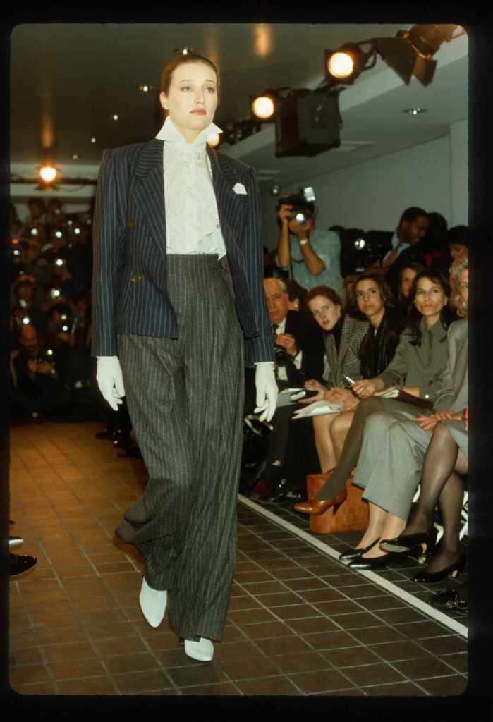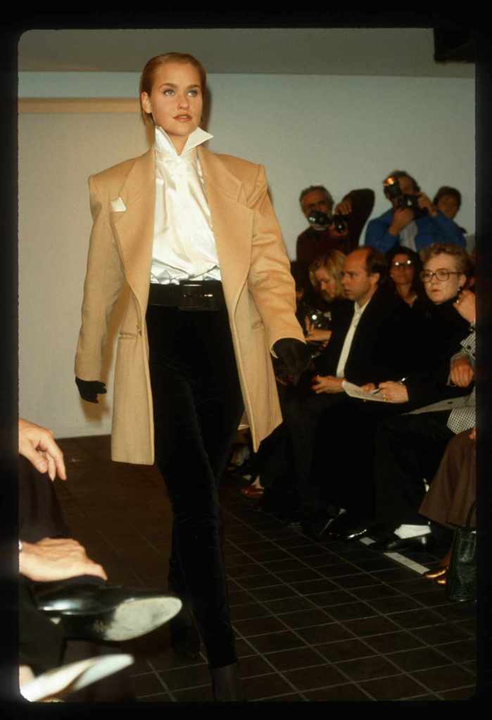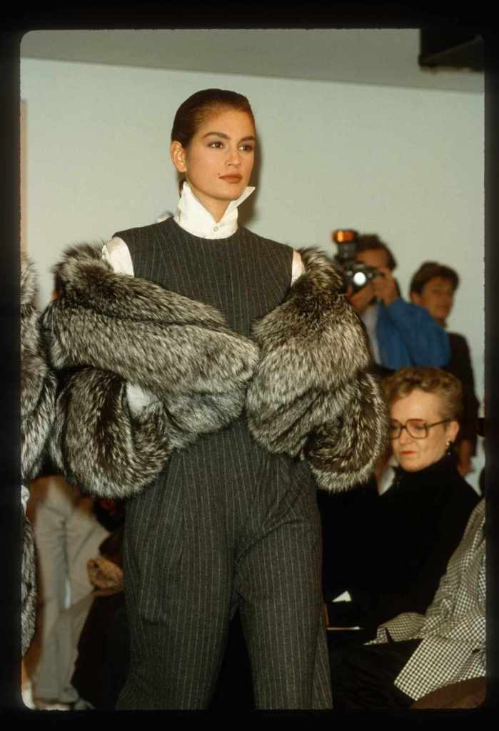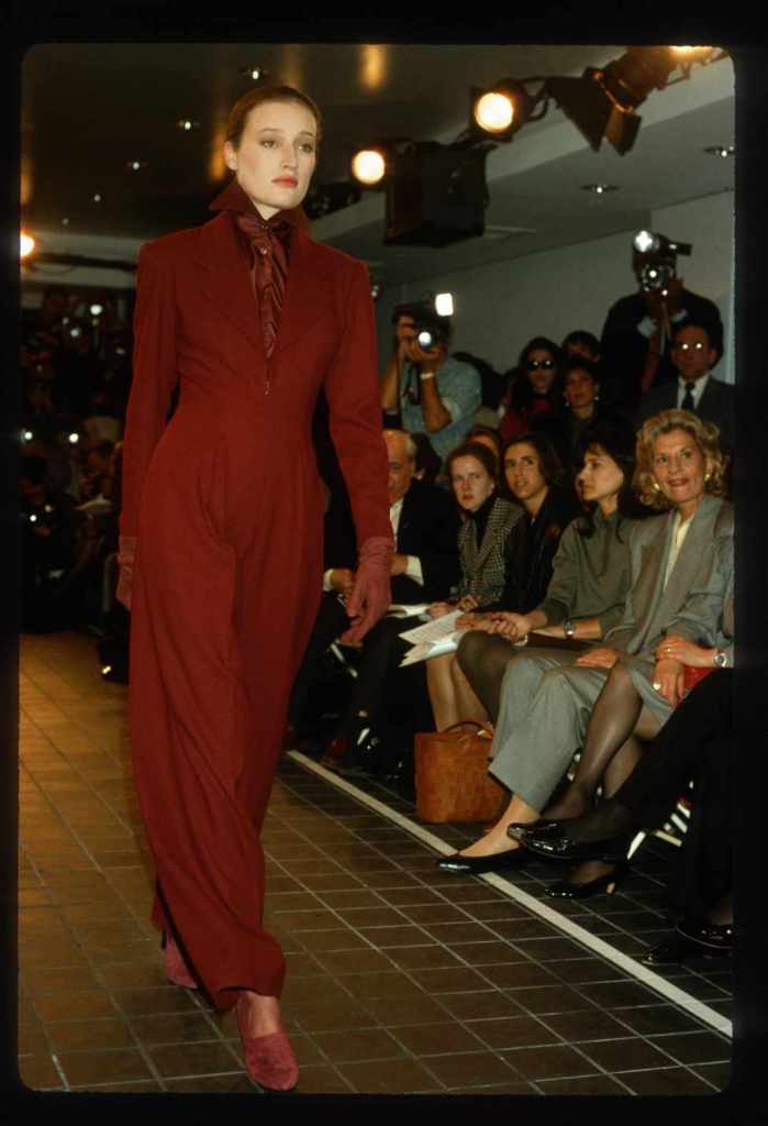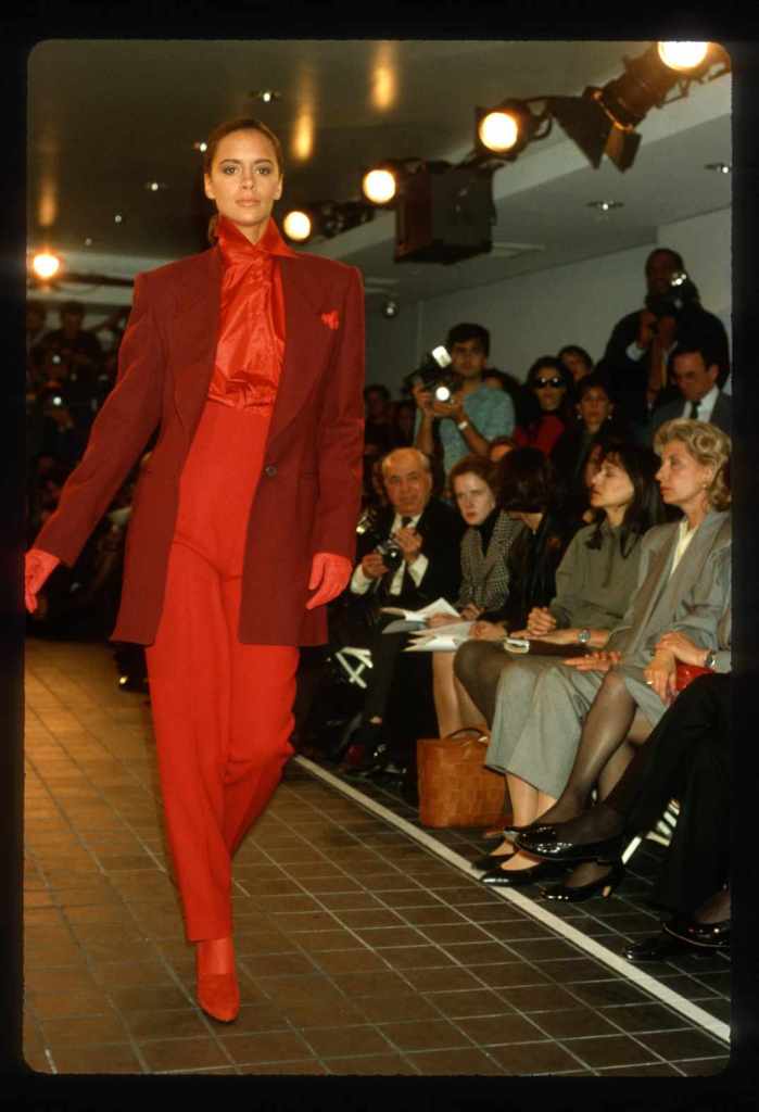 This collection beautifully paid homage to the 80s without succumbing to clichés. With classic pinstripes, sleek black gowns, and beige wool coats, it managed to redefine power dressing in a subtle yet impactful manner while the luxurious fur detailing added a touch of opulence. What truly stood out was Kors’ ability to infuse sensuality into sleek tailoring, creating a confident and empowered aesthetic. The incorporation of rich crimson red throughout the show was symbolic, representing feminine power.