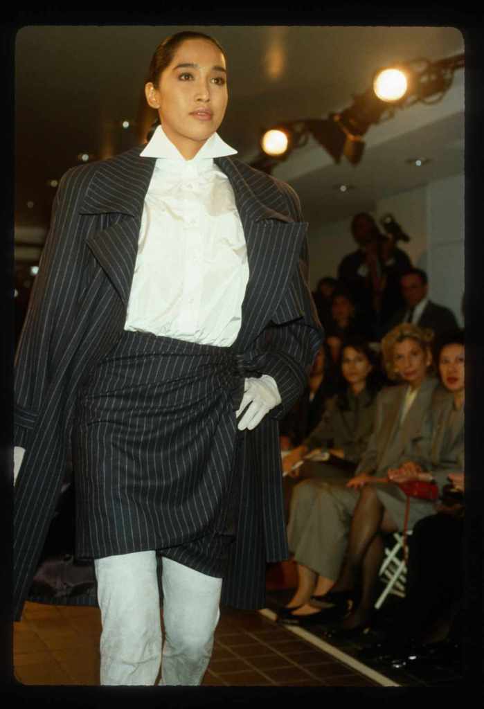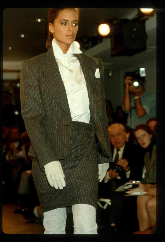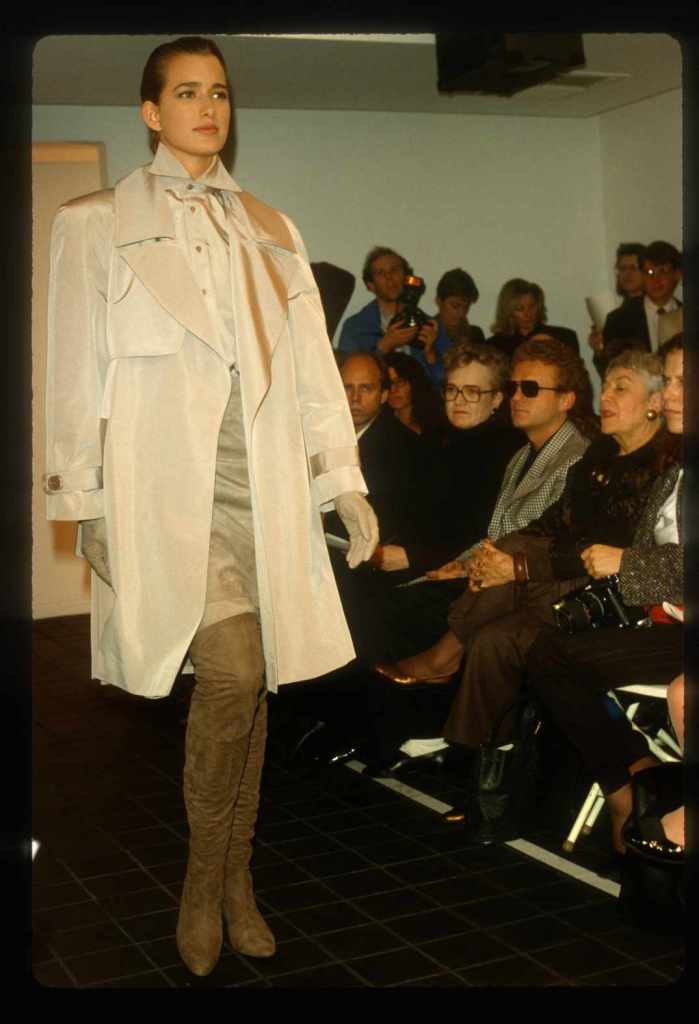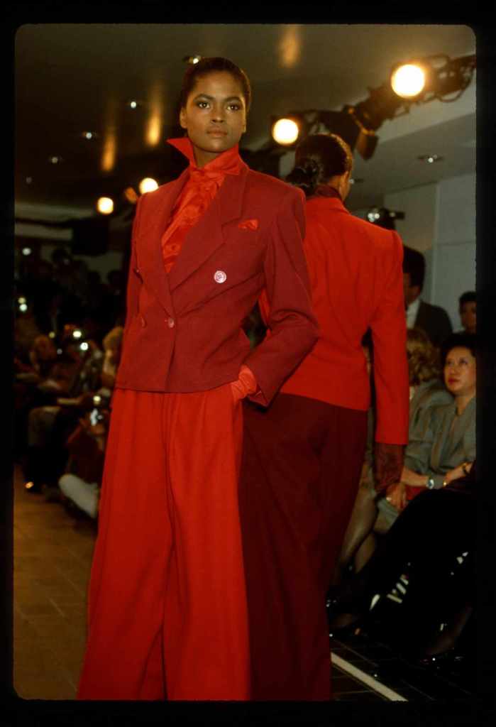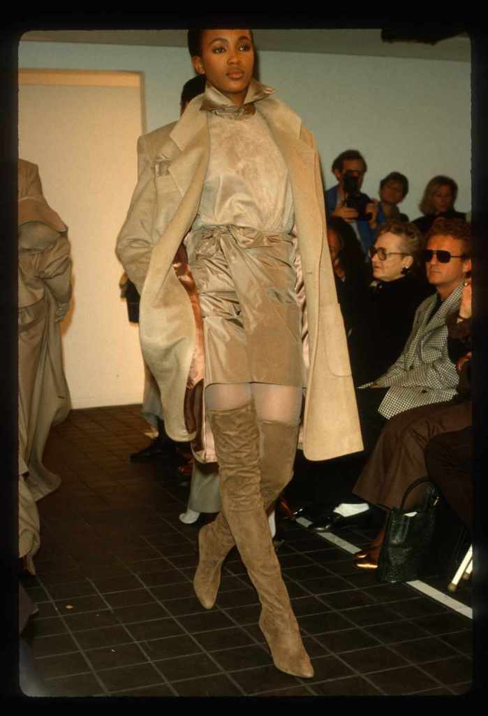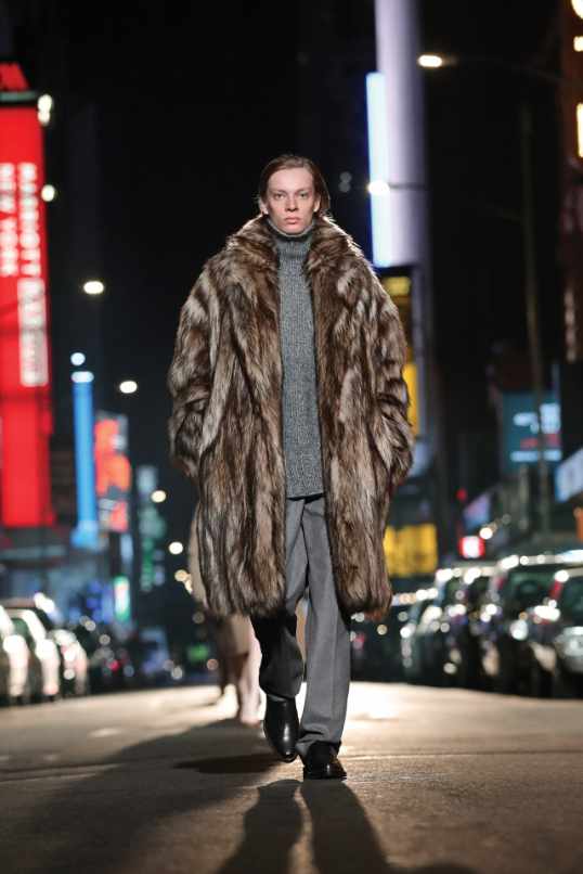 This collection beautifully paid homage to the 80s without succumbing to clichés. With classic pinstripes, sleek black gowns, and beige wool coats, it managed to redefine power dressing in a subtle yet impactful manner while the luxurious fur detailing added a touch of opulence. What truly stood out was Kors’ ability to infuse sensuality into sleek tailoring, creating a confident and empowered aesthetic. The incorporation of rich crimson red throughout the show was symbolic, representing feminine power.