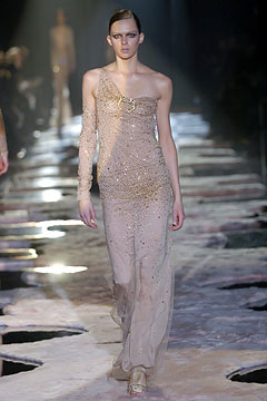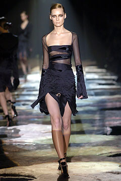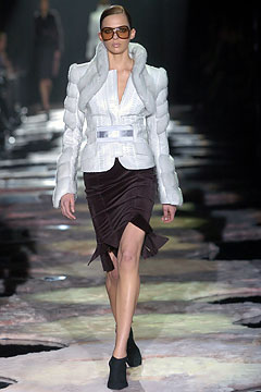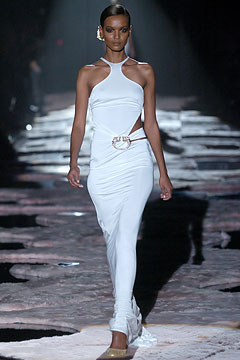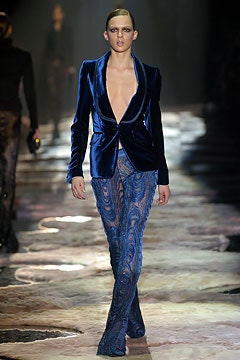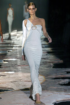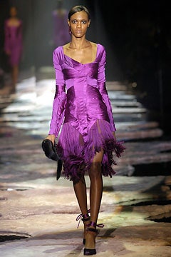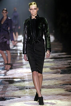 The Gucci female exuded a strong sense of sensuality, wearing carefully designed outfits. Ford’s meticulousness was apparent, seen in well-crafted skirt suits and luxurious jackets with intricate fabrics and shapes. The presentation honored Ford’s previous triumphs, bringing iconic pieces back to life with exceptional finesse. The eveningwear was simply awe-inspiring, with colorful shimmering dresses and divine white jersey gowns commanding attention. This collection served as a perfect homage to Ford’s exceptional time at Gucci.