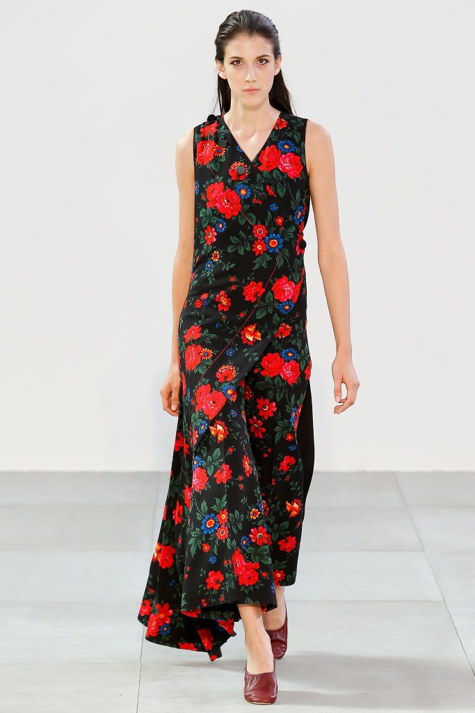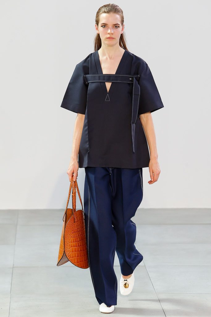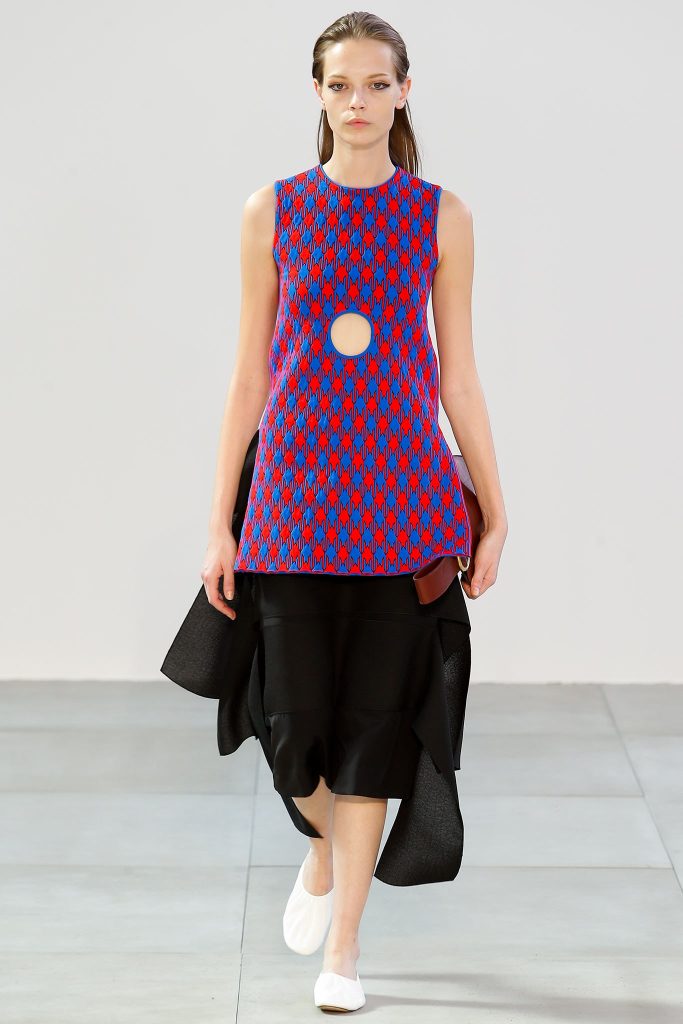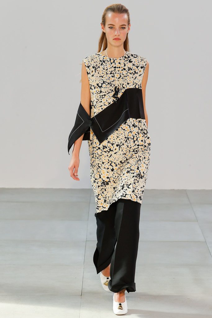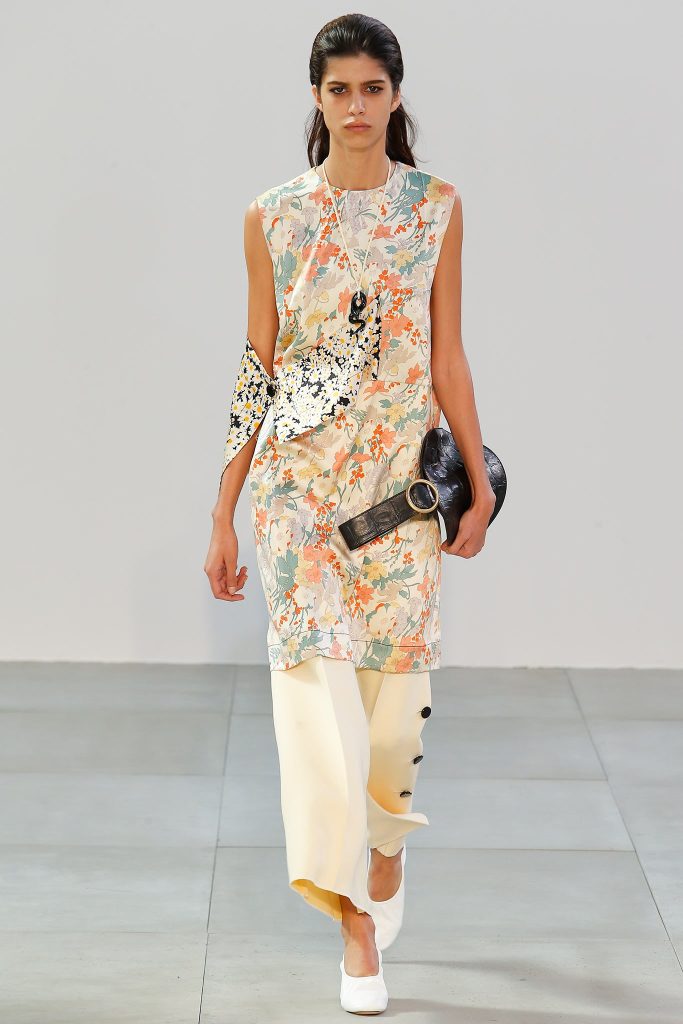 This collection masterfully marries practicality with unexpected embellishments, resulting in a sophisticated yet playful array of garments. Inspired by the work of artist Louise Bourgeois, the predominantly neutral colour palette is punctuated by vibrant reds and blues. As the show unfolds, Philo introduces increasingly intricate details, infusing a whimsical charm. Contemporized florals and folk prints evoke a touch of seventies nostalgia, artfully poised with a blend of masculine and feminine elements. The collection boasts simple, tailored silhouettes while intricate and playful details adorn each piece. The accessories are a standout, making this collection a harmonious blend of artistry and wearability.