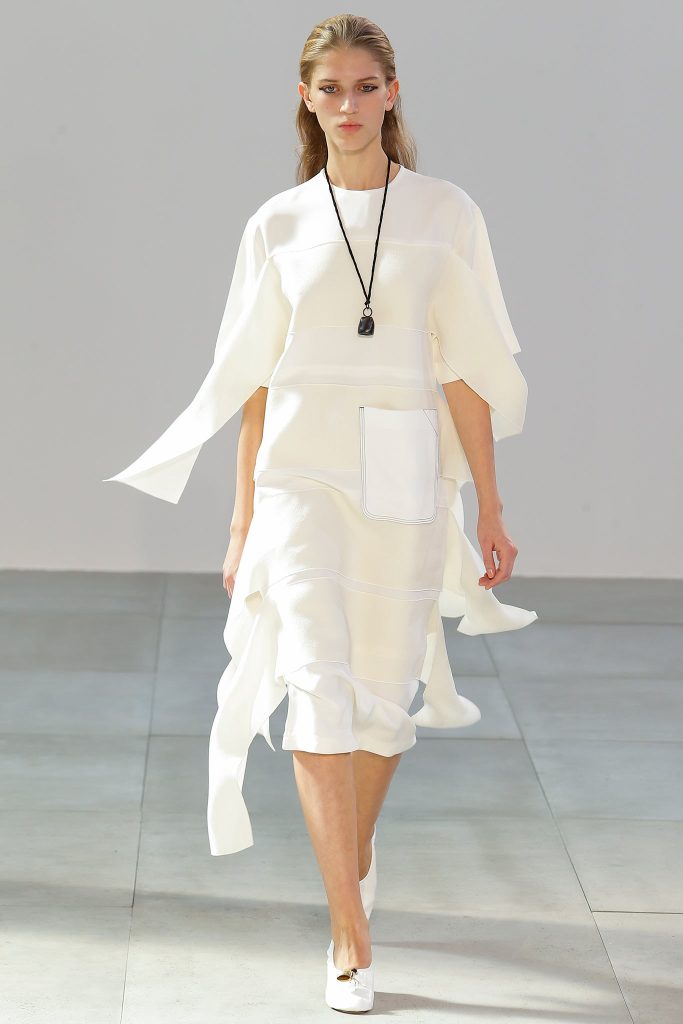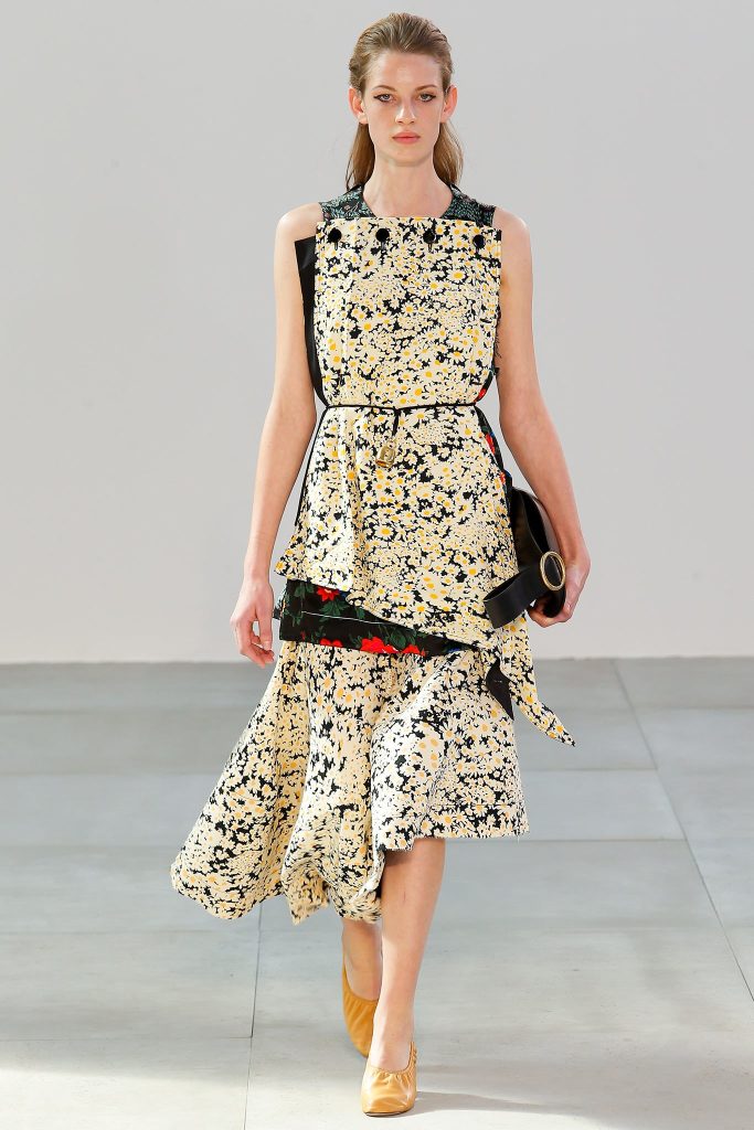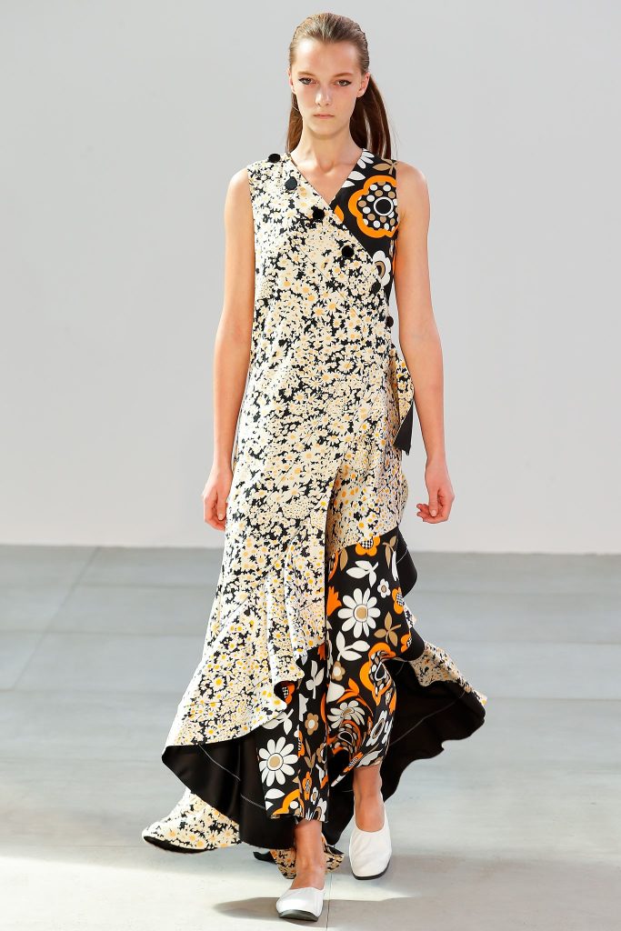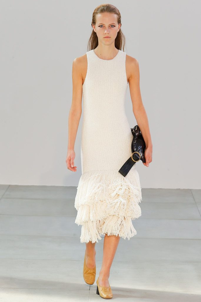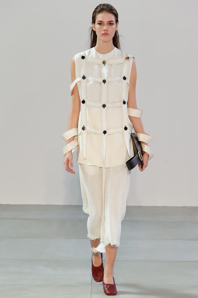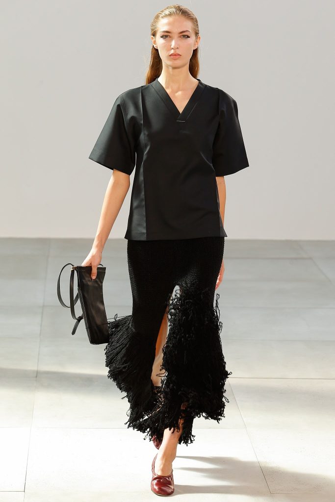 This collection masterfully marries practicality with unexpected embellishments, resulting in a sophisticated yet playful array of garments. Inspired by the work of artist Louise Bourgeois, the predominantly neutral colour palette is punctuated by vibrant reds and blues. As the show unfolds, Philo introduces increasingly intricate details, infusing a whimsical charm. Contemporized florals and folk prints evoke a touch of seventies nostalgia, artfully poised with a blend of masculine and feminine elements. The collection boasts simple, tailored silhouettes while intricate and playful details adorn each piece. The accessories are a standout, making this collection a harmonious blend of artistry and wearability.