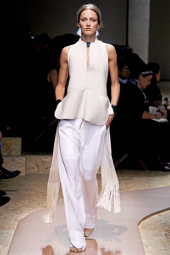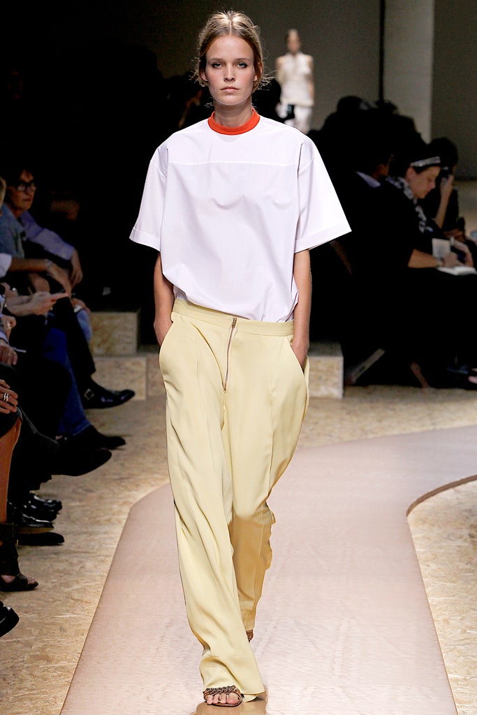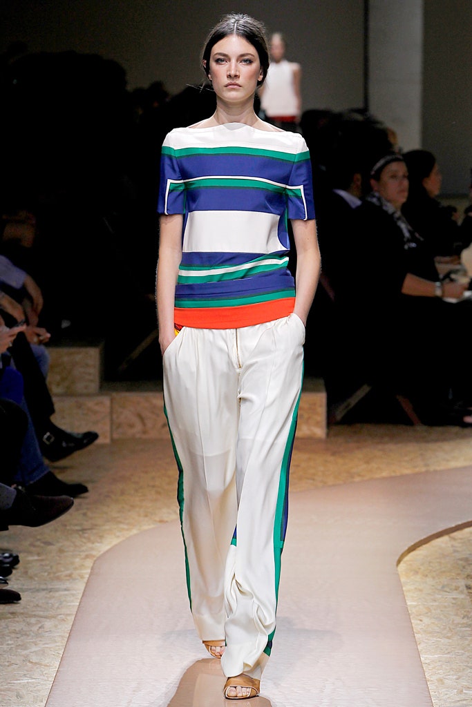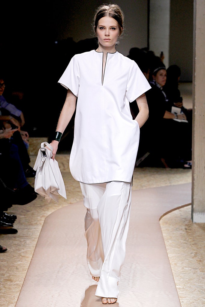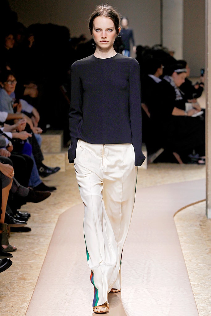 This collection offers a more subdued and relaxed approach to fashion, with softer silhouettes and a muted colour palette of gentle whites, earthy browns, and deep navy. The focus is on loose-fitting, oversized pieces crafted from natural fabrics, which exude Celine’s signature sleekness. There’s something undeniably charismatic about the designs, featuring a softening of the brand’s strictly structured shapes. It manages to strike a balance between being refined and highly practical for women. With a variety of textures, silhouettes, and colours, complemented by geometric patterns and colour blocking, the collection is both wearable and accessible. It’s perfect for women who seek a stylish, effortlessly put-together look.