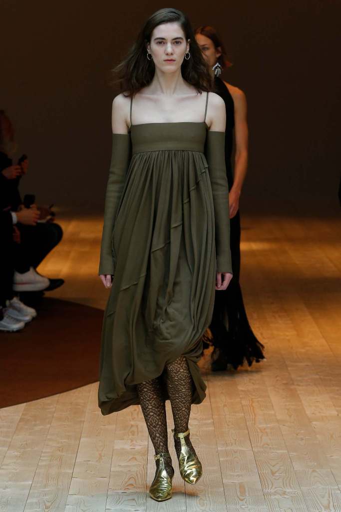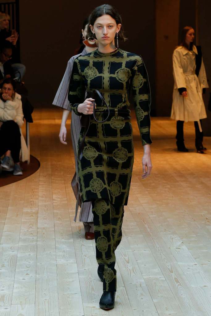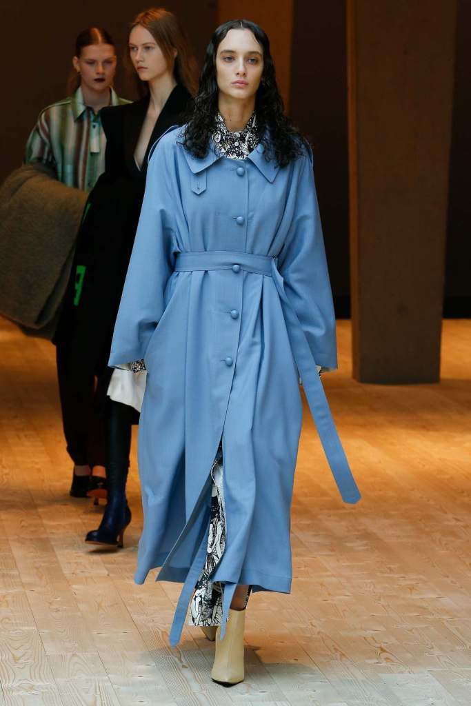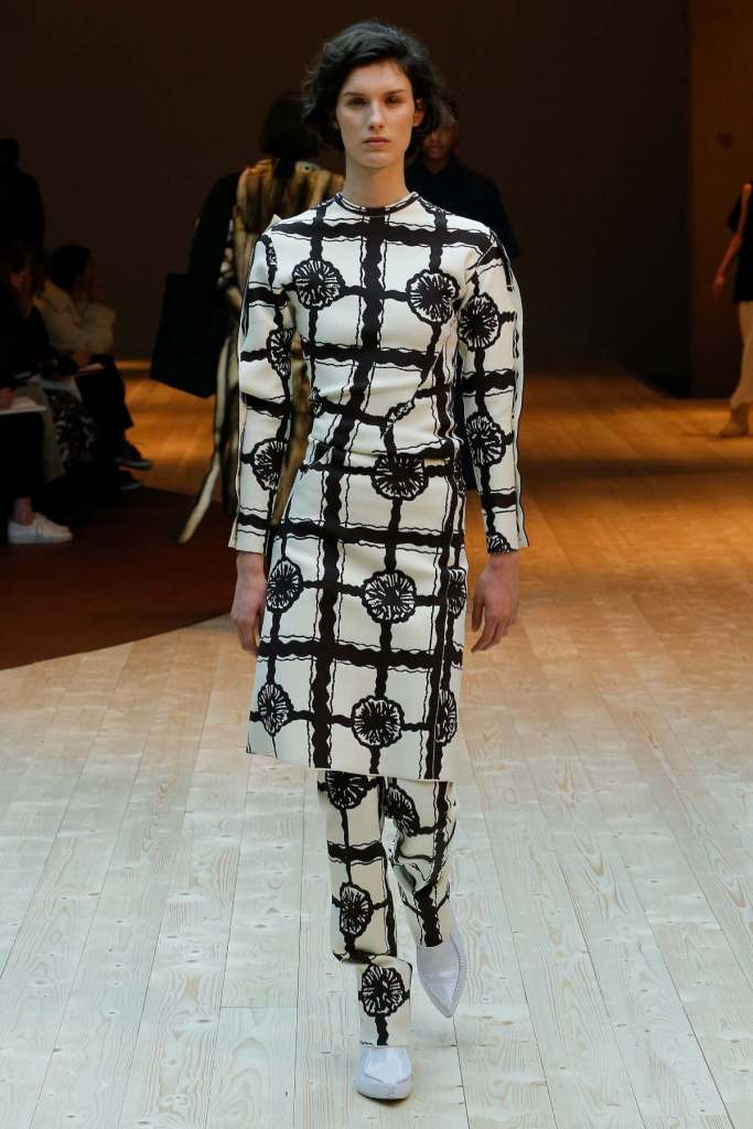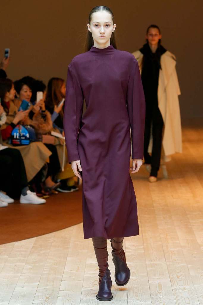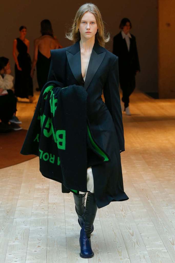 This collection exudes a sense of cosmopolitan practicality and versatility, reflecting her commitment to honing a chic wardrobe staples. The pieces presented here seamlessly merge style and wearability, anchored by wardrobe essentials like black pantsuits, tailored coats, and striped shirts. A muted colour palette of black, navy, grey, and white prevails, emphasizing the collection’s understated polish. Philo’s unwavering attention to detail is palpable in every item, from precise tailoring to impeccable finishes. Though the colours are subdued and silhouettes unembellished, it’s the captivating intricacies that shine. This collection is a well-edited testament to Phoebe Philo’s work.