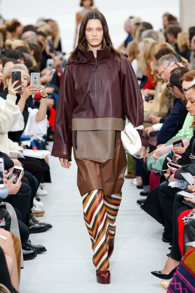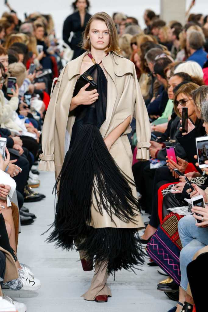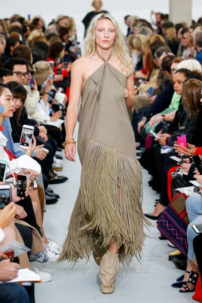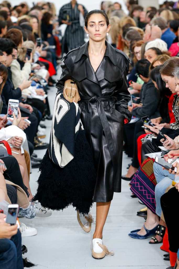 The tailored pieces exuded a sense of modernity, often featuring oversized and deconstructed elements that challenged traditional silhouettes. The casual separates were constructed from soft, comfortable fabrics, prioritizing wearability without compromising on style. The predominantly neutral colour palette was punctuated by sporadic bursts of vibrancy through printed pieces, adding a touch of playfulness to the collection. What truly set this collection apart was its effortless elegance. From long fringe to embellished leather and feather adornments, the fusion of deconstructed tailoring with colourful leather offered a fresh and original take on minimalism. The accessories remained simple and understated, placing the spotlight firmly on the clothes.