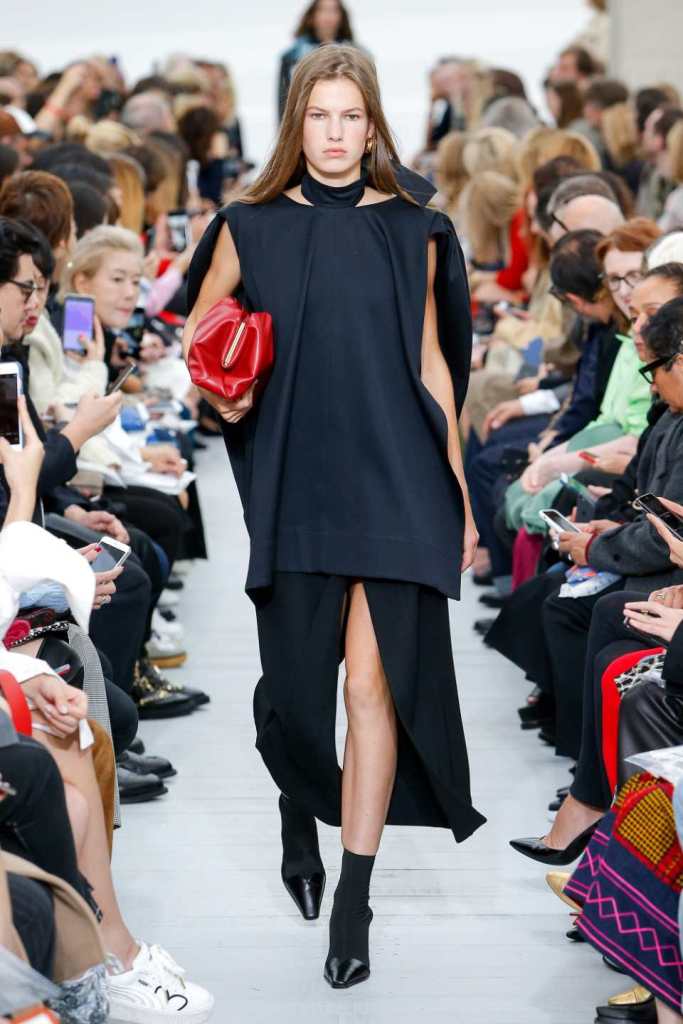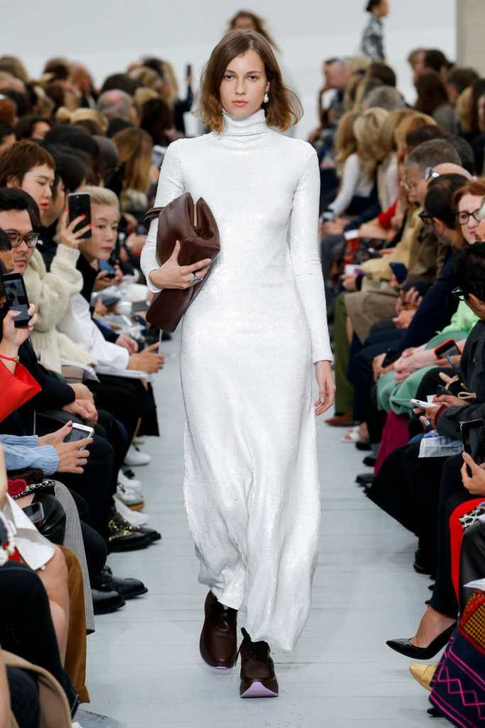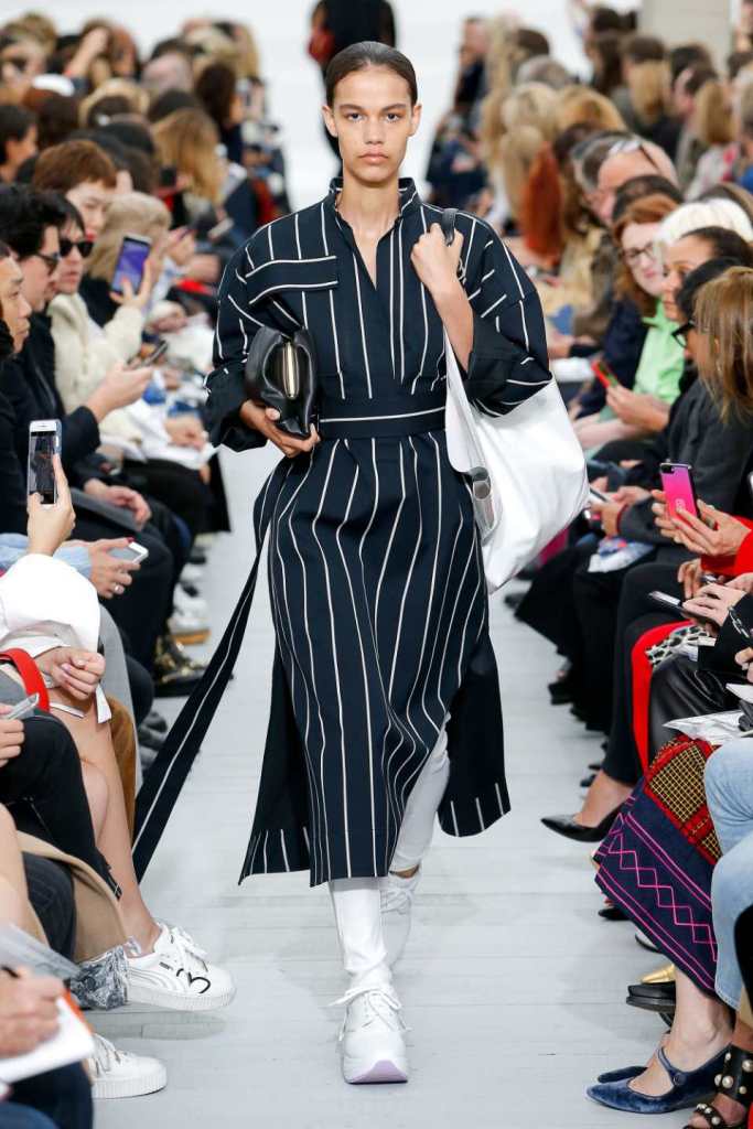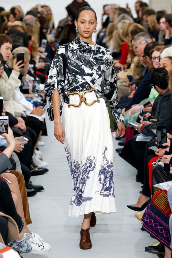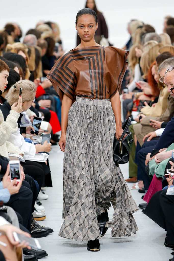 The tailored pieces exuded a sense of modernity, often featuring oversized and deconstructed elements that challenged traditional silhouettes. The casual separates were constructed from soft, comfortable fabrics, prioritizing wearability without compromising on style. The predominantly neutral colour palette was punctuated by sporadic bursts of vibrancy through printed pieces, adding a touch of playfulness to the collection. What truly set this collection apart was its effortless elegance. From long fringe to embellished leather and feather adornments, the fusion of deconstructed tailoring with colourful leather offered a fresh and original take on minimalism. The accessories remained simple and understated, placing the spotlight firmly on the clothes.