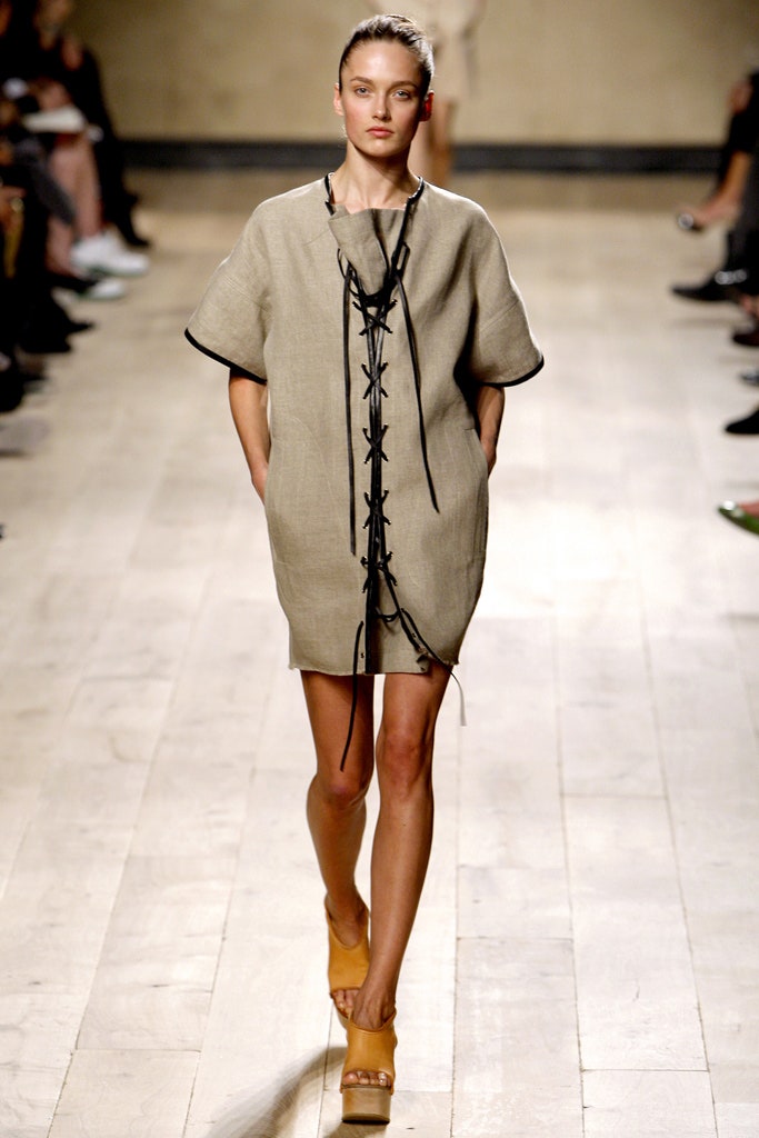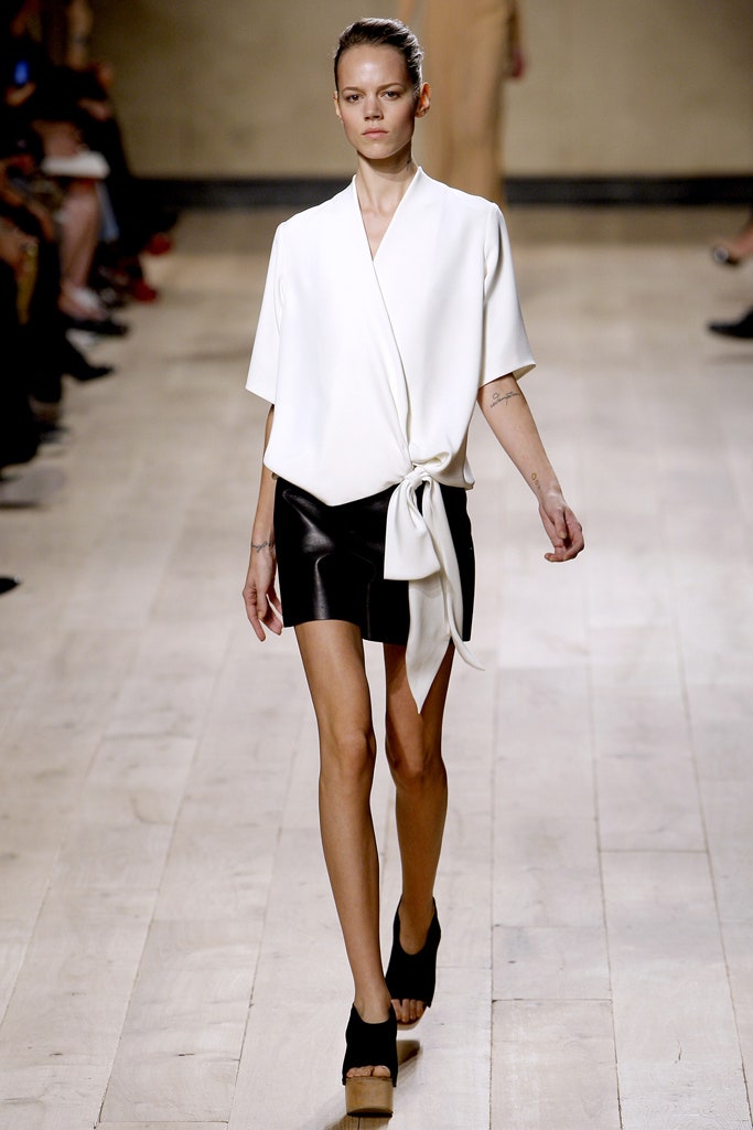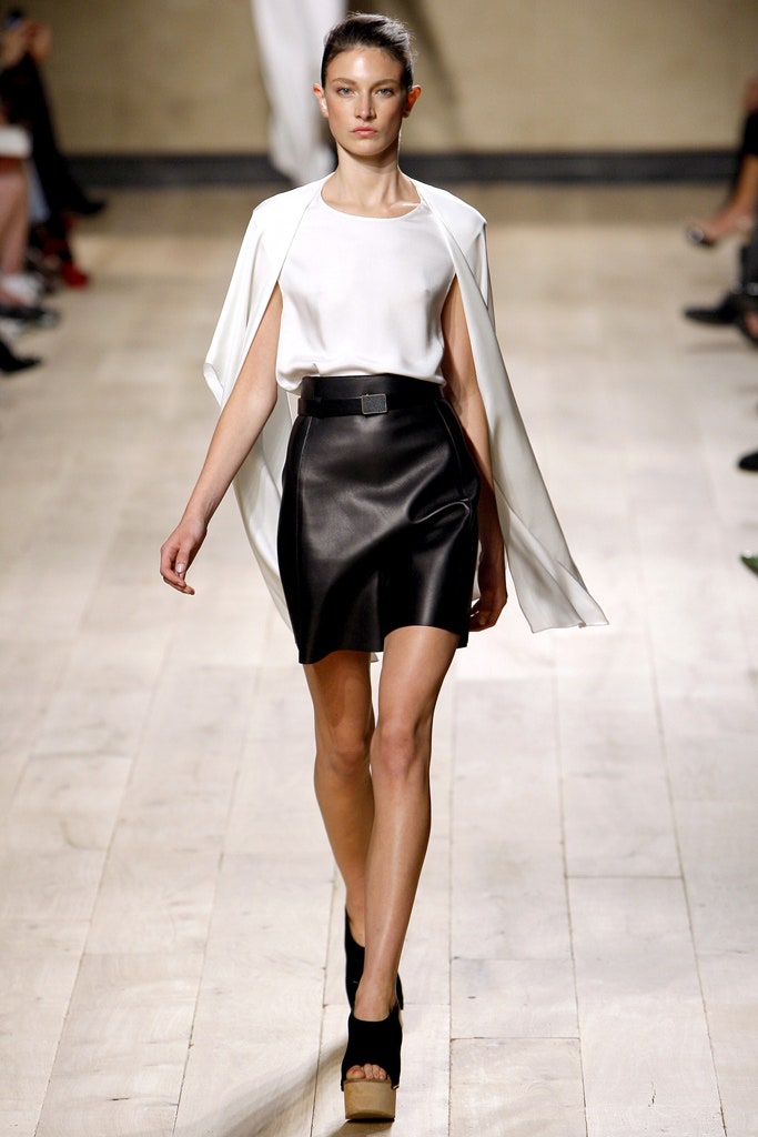 Phoebe Philo’s debut collection at Céline showcased a refreshing blend of styles, seamlessly transitioning from strong, masculine leathers to sheer nudes and delicate flourishes. The designer’s approach exuded pragmatism and a deep appreciation of the brand’s heritage, cleverly infusing American sportswear with a distinctive Parisian twist. The collection’s clean, straight lines beckon with their simplicity, underscored by a restrained palette of black, white, and camel. In proving that a grown-up sensibility need not be dull, Philo utilized high-quality, luxurious fabrics including leather, silk, and cotton, crafting simple yet chic silhouettes that prioritized impeccable tailoring and fit. The accessories, though understated, lent an effective touch. It was the beginning of an Era!