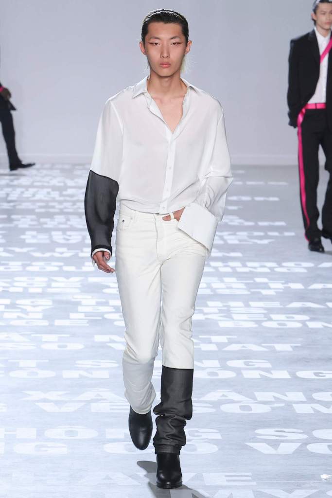 Titled ‘Born to Go’ this collection skillfully honours some archival Helmut Lang moments while adding poetic expressions of identity. Helmut Lang’s brand revival taps into ’90s nostalgia and reflects Do’s immigrant and queer perspective in today’s NYC fashion. The pieces showcase a cool urban uniform, offering practicality for everyday wear. The collection’s sharp minimalist aesthetic is striking and carries a deep commitment to preserving the legacy of Helmut Lang while infusing it with Peter’s own perspective and creativity. The juxtaposition of bold colors and patterns layered on black and white garments adds a dynamic dimension.