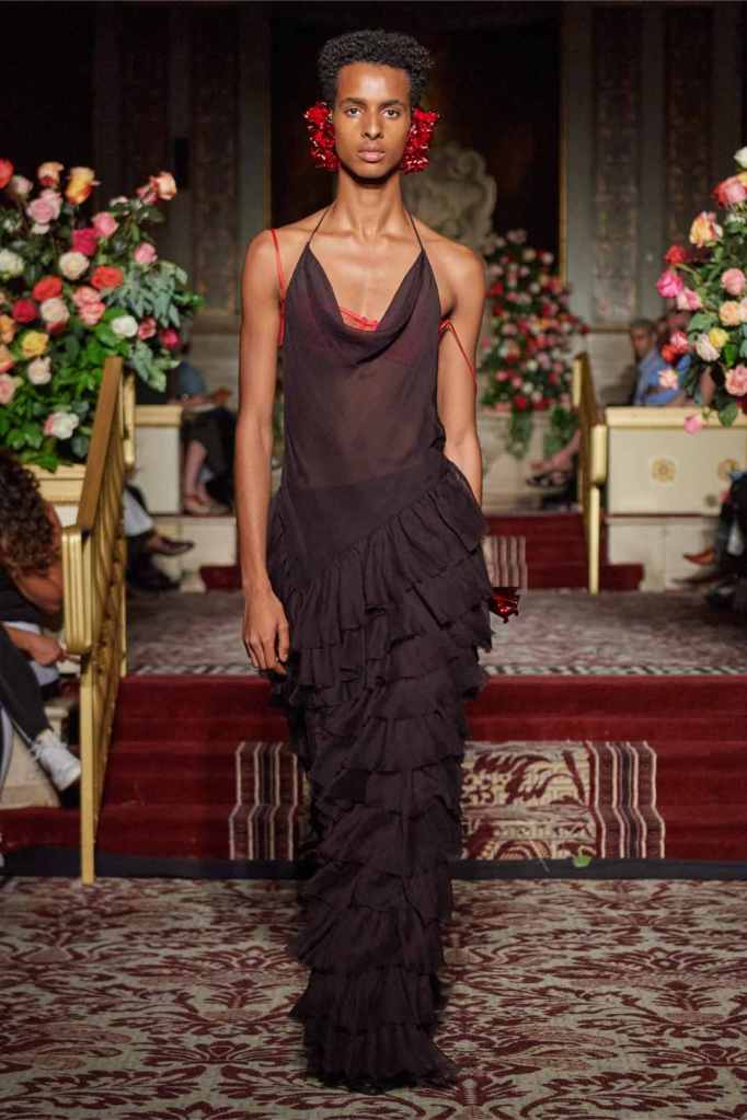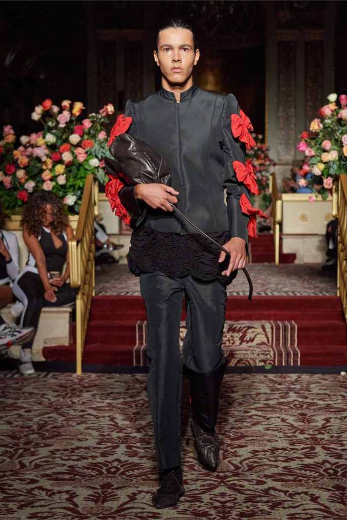 Titled “Cruising in the Rose Garden,” explores the dual nature of humanity, blending animalistic desire with romantic sensuality. Masculine elements seamlessly merge with femininity in the most beautiful possible way. The juxtaposition of traditionally masculine and feminine elements creates a captivating and harmonious blend that challenges conventional fashion norms. Palomo Spain has once again proven their prowess in pushing boundaries and redefining the concept of gender-neutral fashion, making this collection a standout moment in recent times.