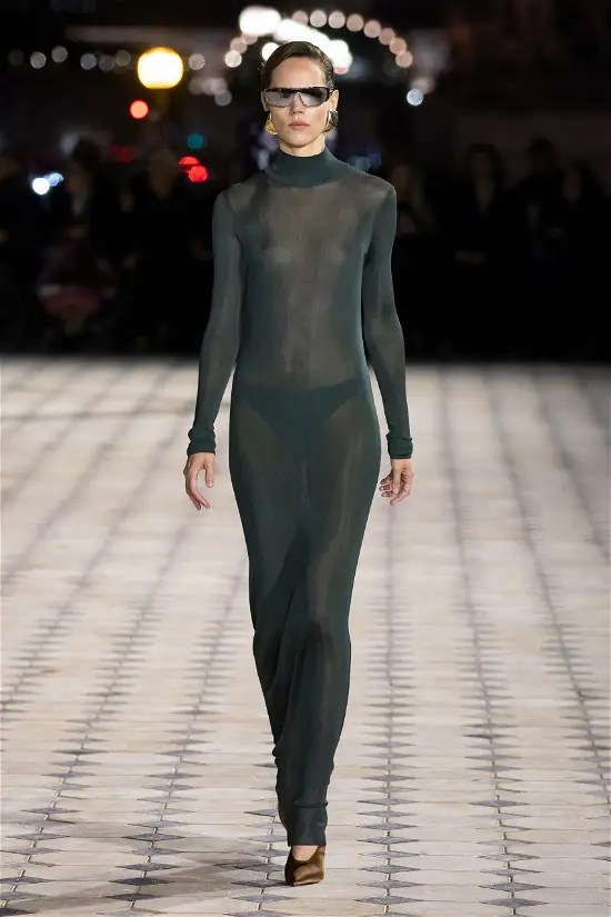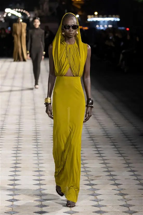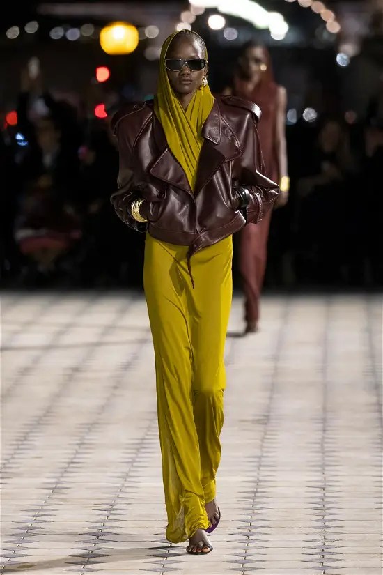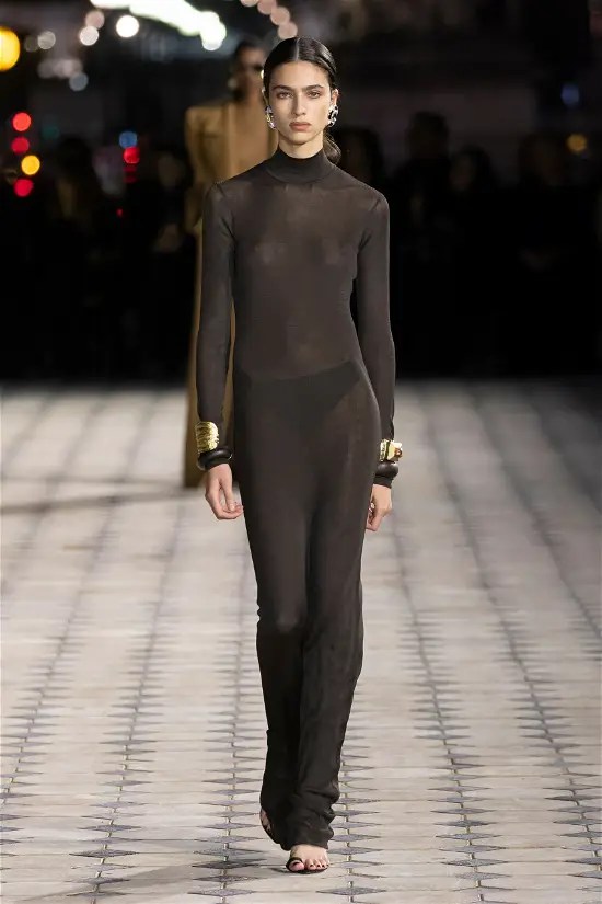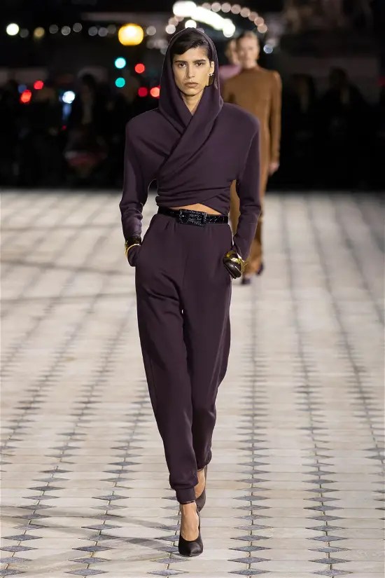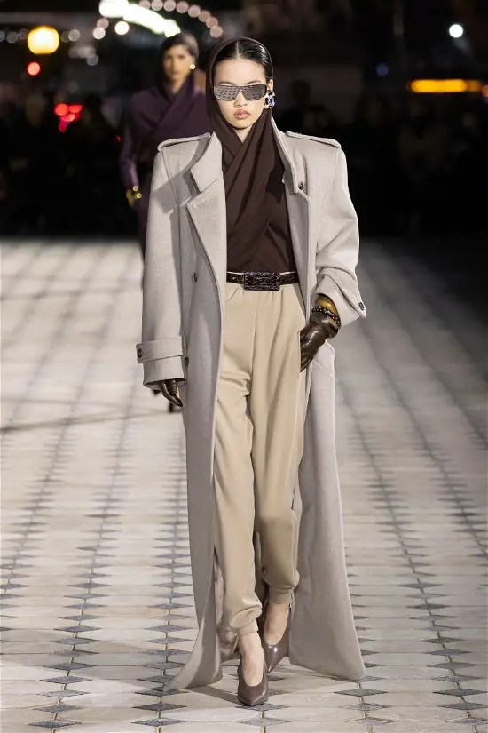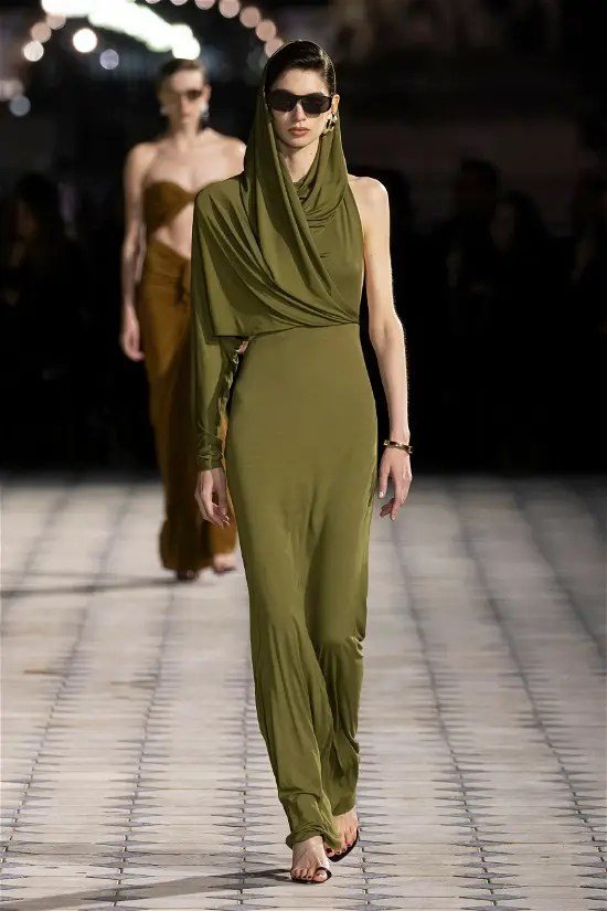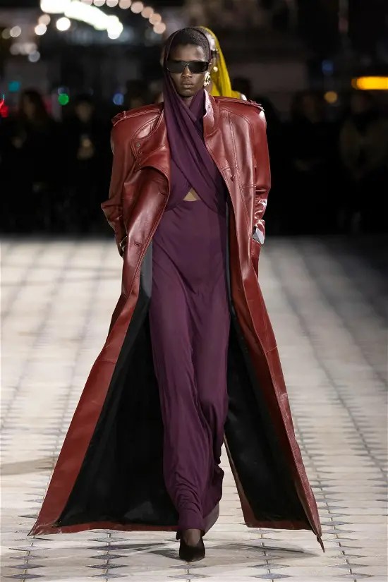Muted earthy tones – browns, purples, olives – painted slender, monochromatic looks that celebrated the beauty of form with quiet confidence. While lacking the usual vibrancy, the collection exuded a newfound ease and sensuality, leaving an alluringly understated mark.