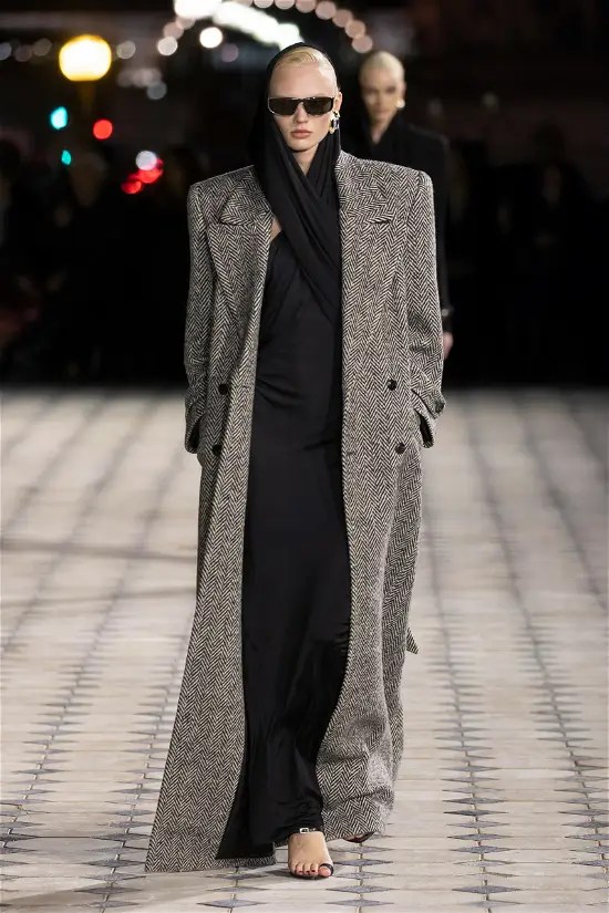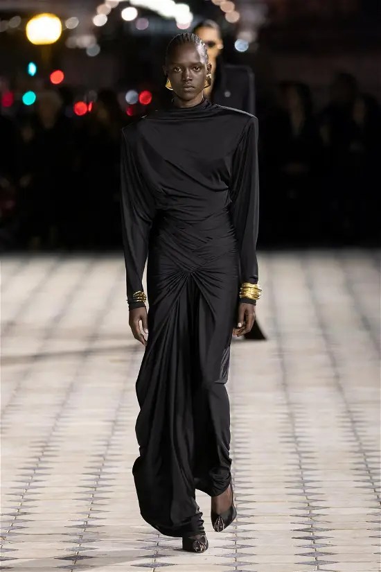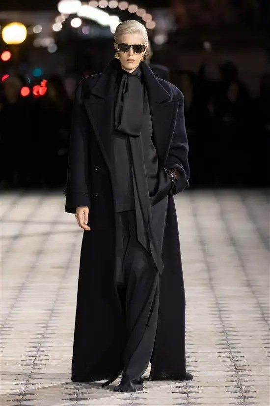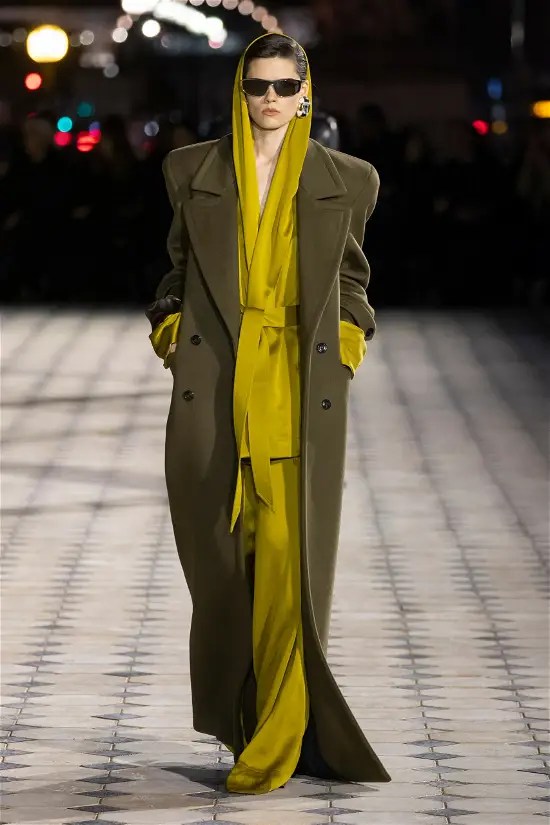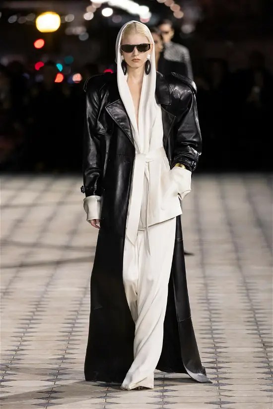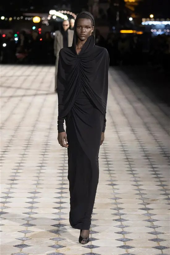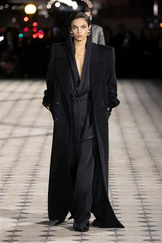 Saint Laurent served us with some timeless pieces. Anthony Vaccarello goes back to the YSL roots with the ‘capuche’ gowns along with some delicious minimalism. A wide range of trench coats, bomber jackets and sleek skin-tight gowns. This collection beautifully balanced the brand’s iconic boldness with a restrained elegance using Sophisticated silhouettes are created with a simple styling.Simple and quiet seduction pierces through the clothes; Parisian glamour at its best.