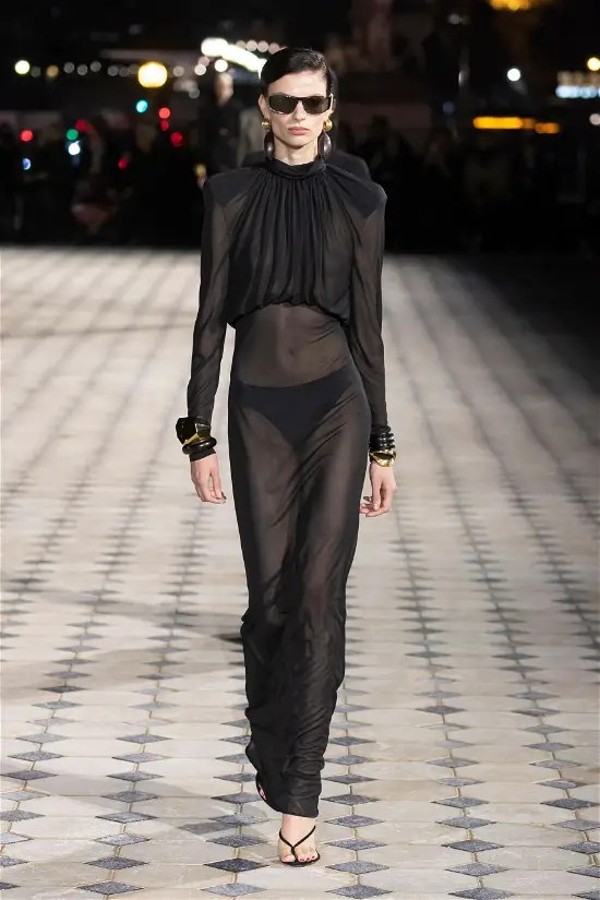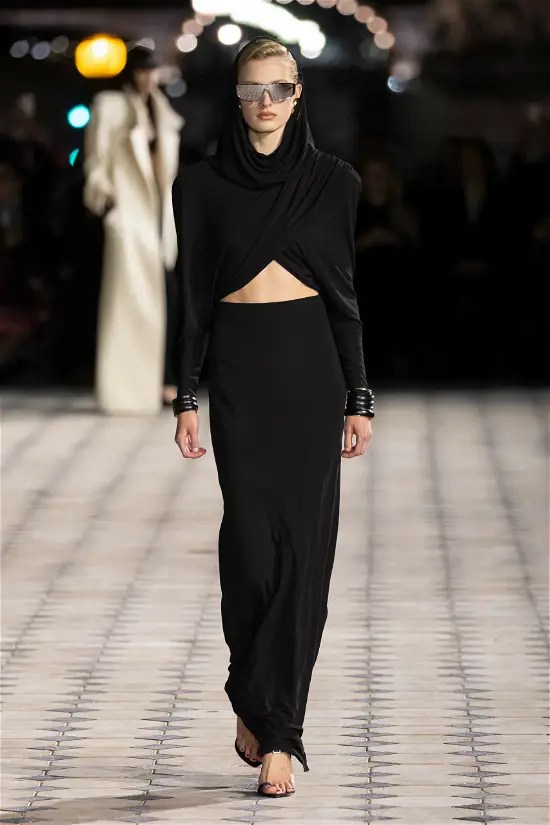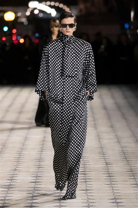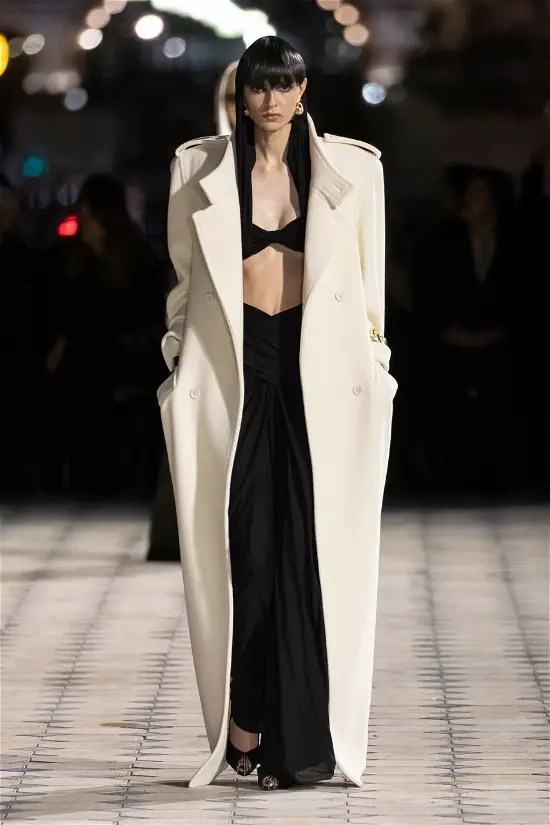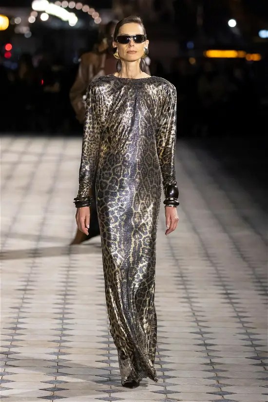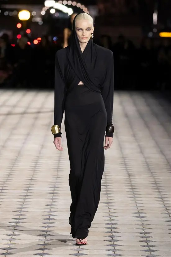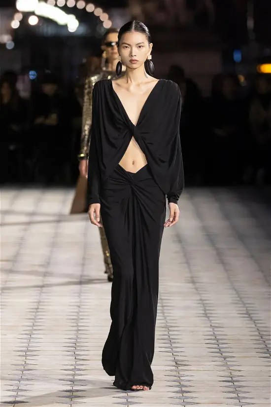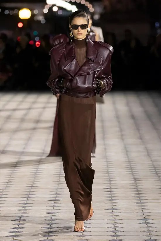Saint Laurent served us with some timeless pieces. Anthony Vaccarello goes back to the YSL roots with the ‘capuche’ gowns along with some delicious minimalism. A wide range of trench coats, bomber jackets and sleek skin-tight gowns. This collection beautifully balanced the brand’s iconic boldness with a restrained elegance using Sophisticated silhouettes are created with a simple styling.Simple and quiet seduction pierces through the clothes; Parisian glamour at its best.