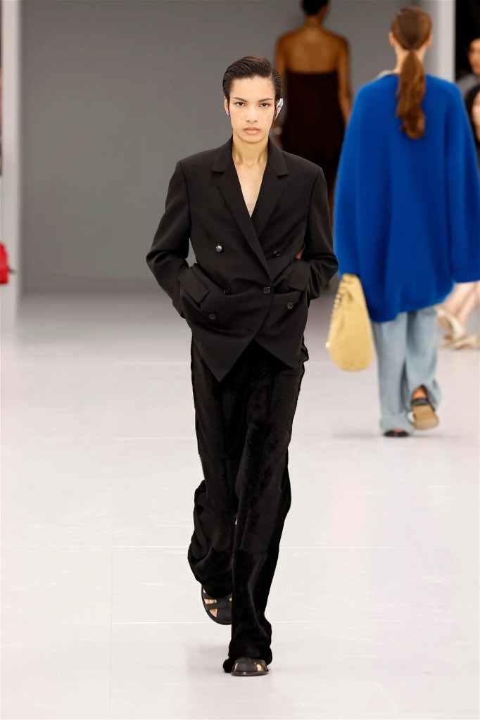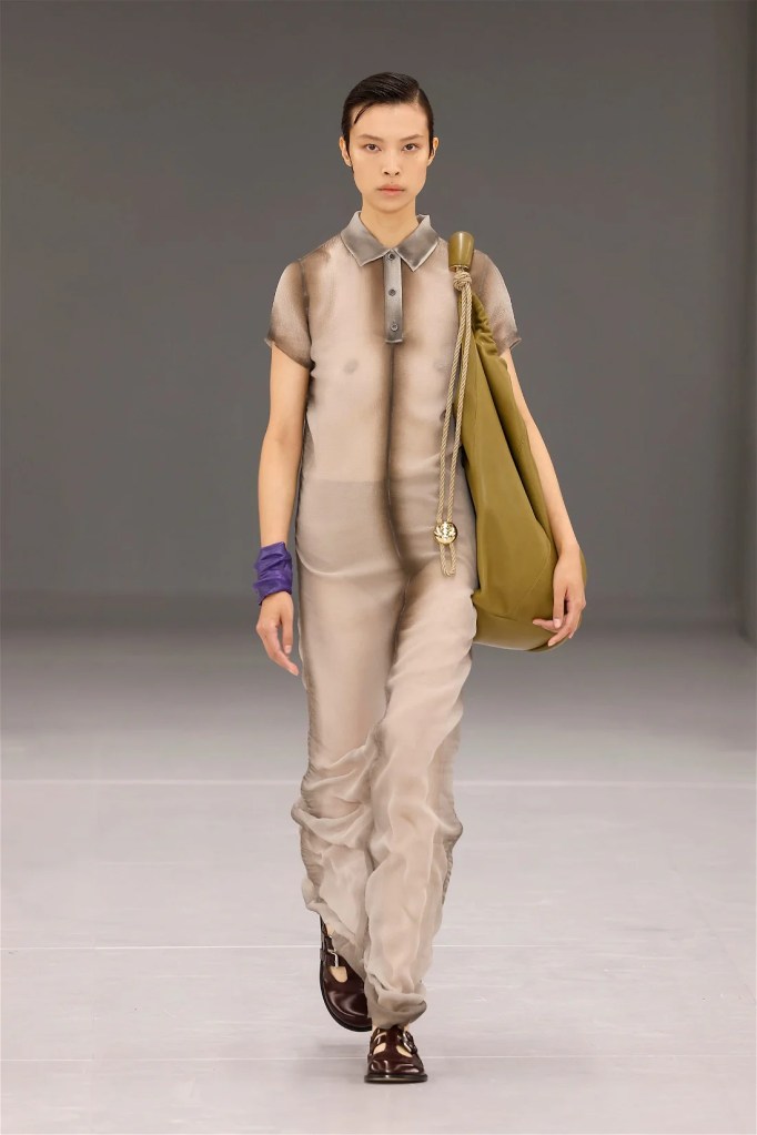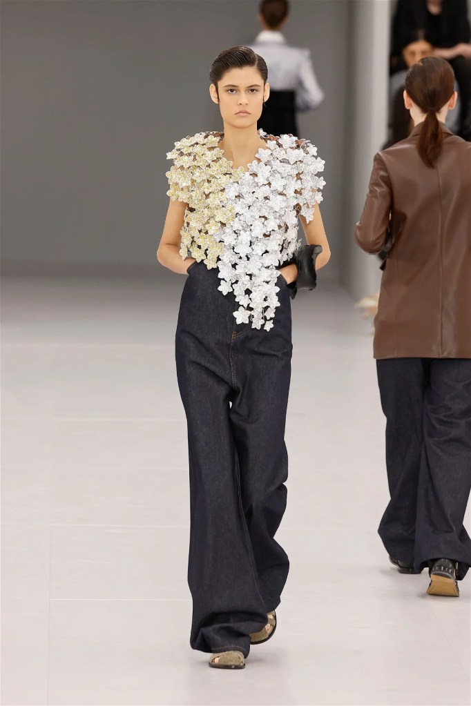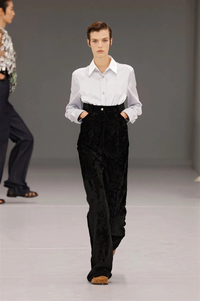 The collection artfully played with proportions, offering clean-cut silhouettes that exuded sophistication. What stood out most was its originality and cohesiveness, which seamlessly tied together the various pieces. This collection’s creative focus, subtly infused with surrealism, made it a standout in this season.