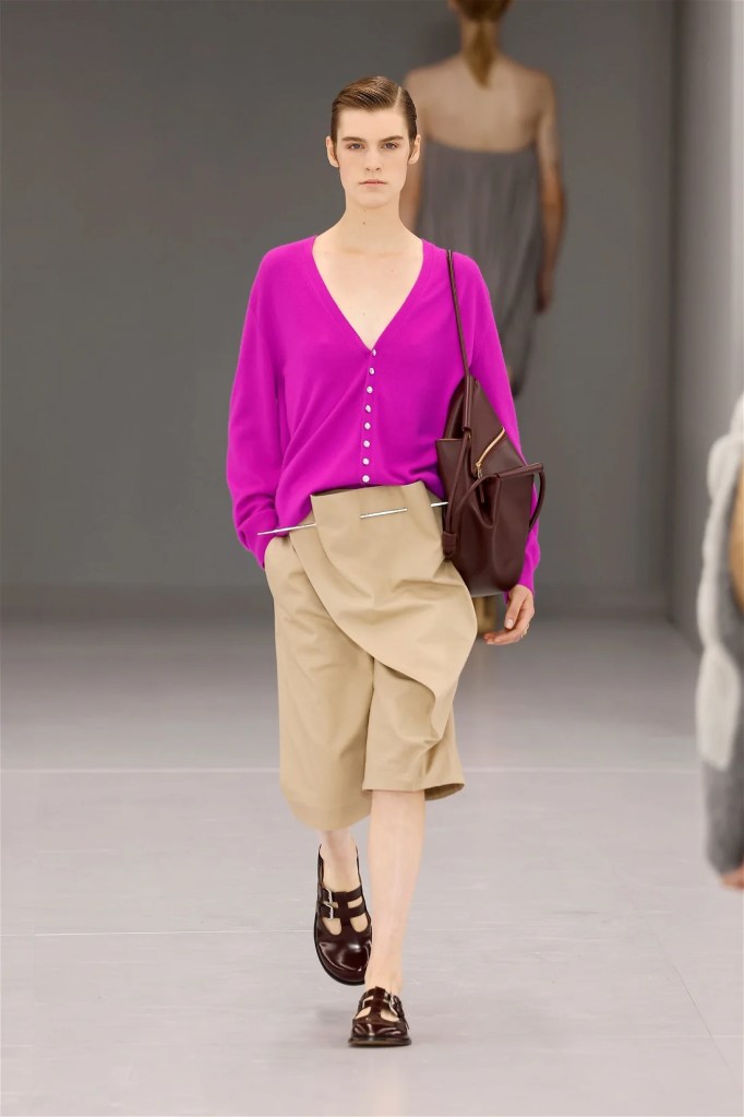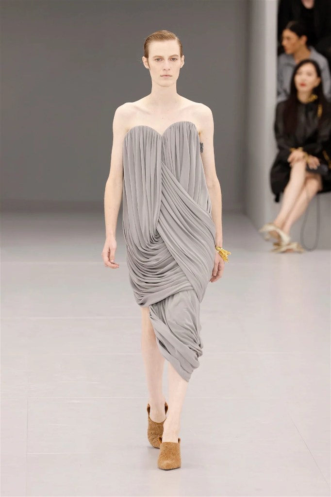 This collection astutely concentrated on eclectic daywear, presenting a refreshing take on everyday fashion. It was a delightful blend of structure, draping, and playful elements, showcasing versatility in its designs. The muted and neutral colour palette, punctuated by occasional pops of colour, was a harmonious choice that appealed to a broad spectrum of tastes.