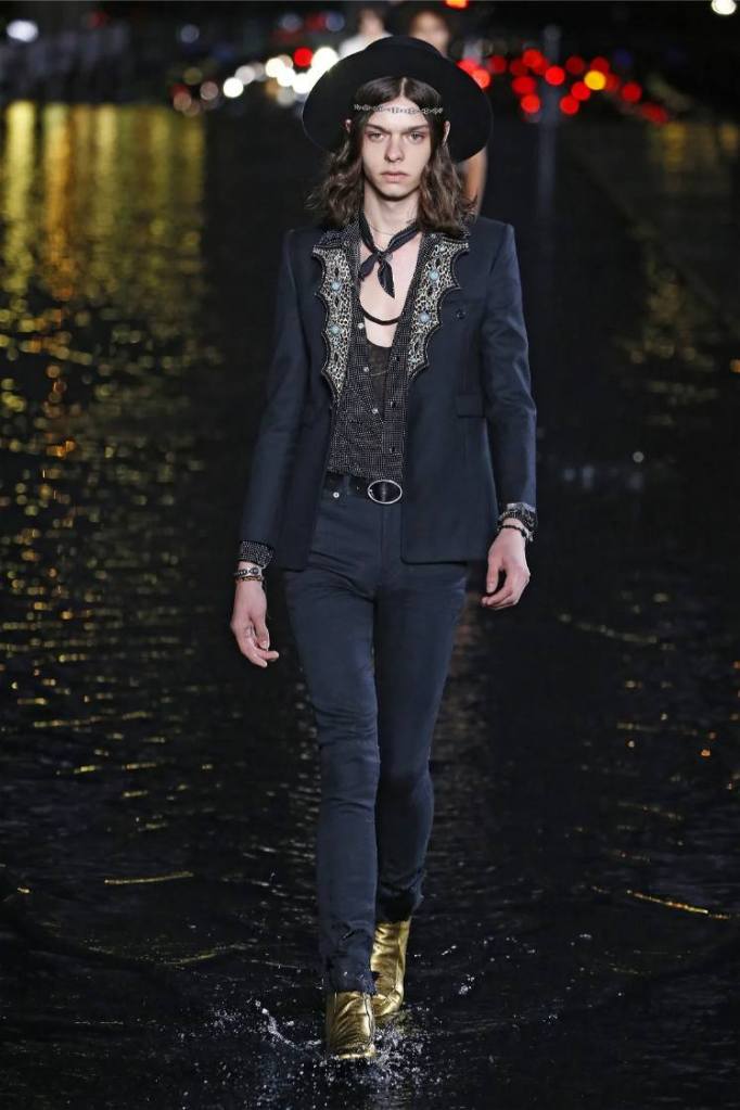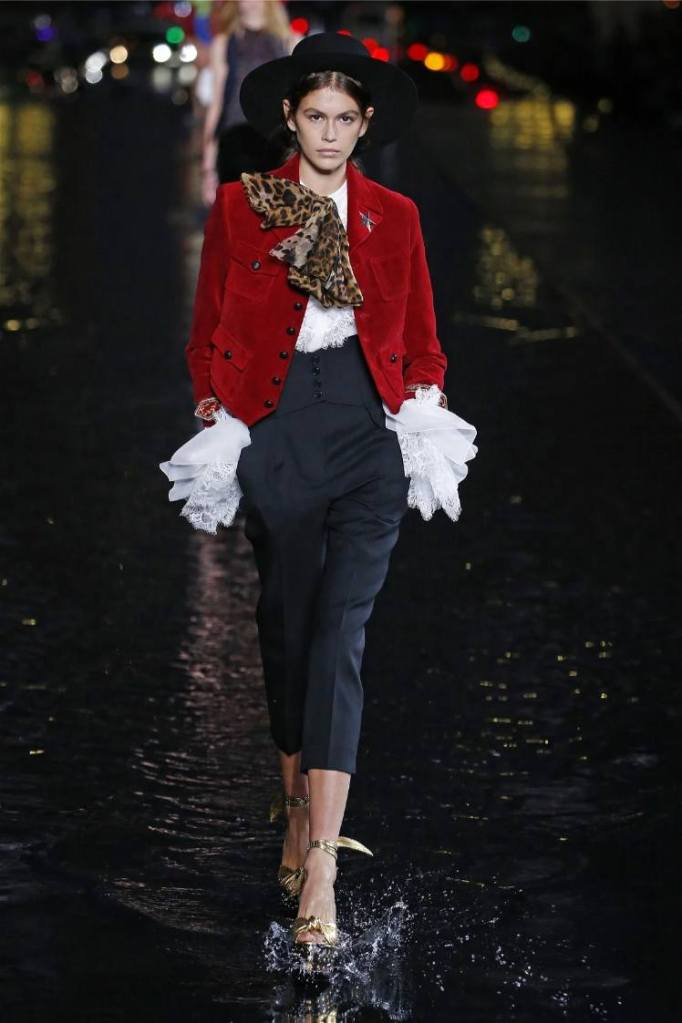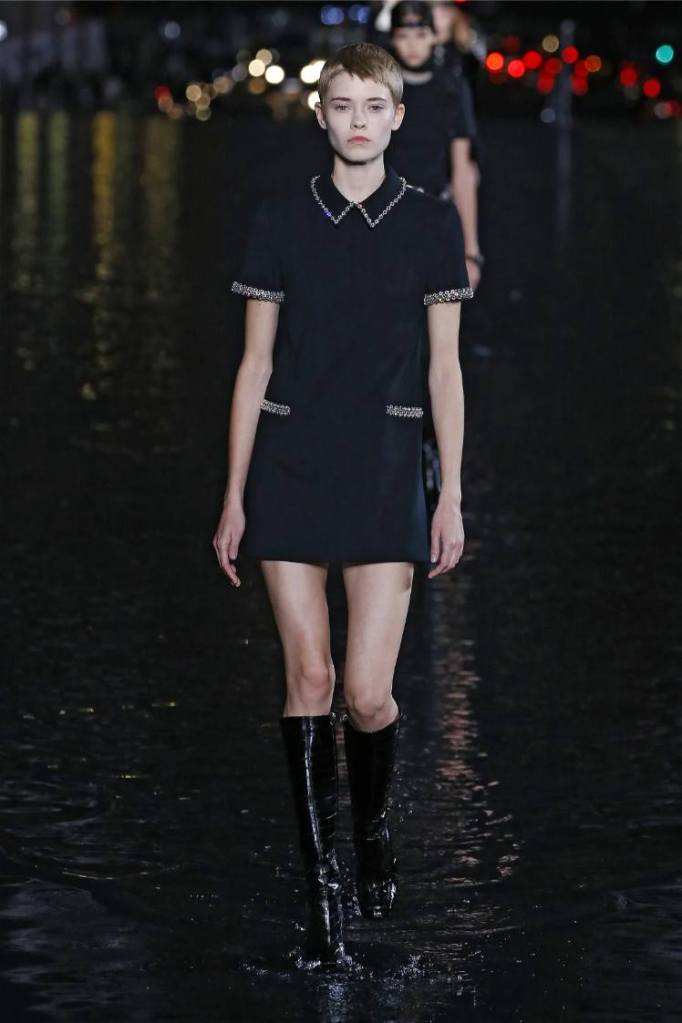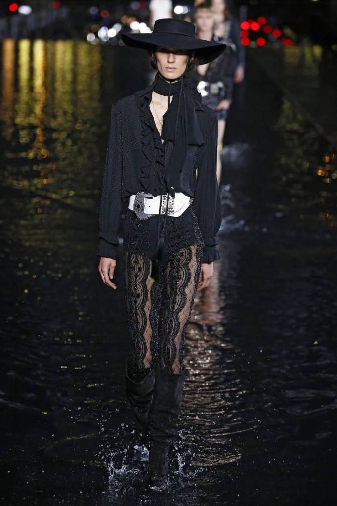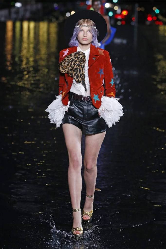 The Saint Laurent collection draws inspiration from the 1978 Opium fragrance launch party, seamlessly blending the brand’s signature rocker-chic aesthetic with subtle medieval references. Sharp tailoring and bold silhouettes dominate the runway, showcasing a diverse range of garments. The collection features a strong lineup of swimsuits, velvet blazers, sheer blouses, Le Smoking tuxedos, corset-waisted pants, and tiny dresses. While the pieces exude an undeniable allure, the sheer volume of 95 looks feels overwhelming, diluting the impact of individual pieces. Despite this, Saint Laurent maintains its reputation for pushing boundaries and delivering a fusion of timeless and sensual garments.