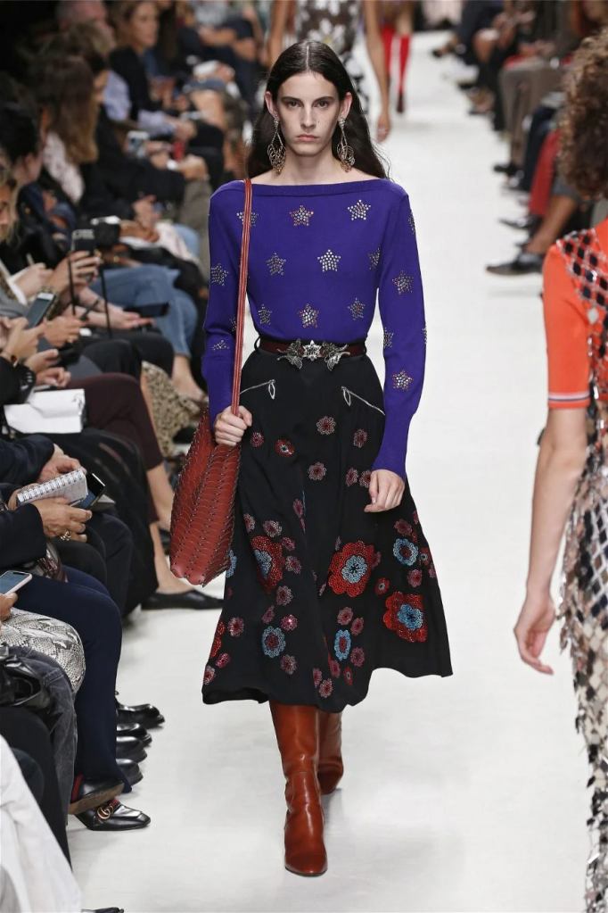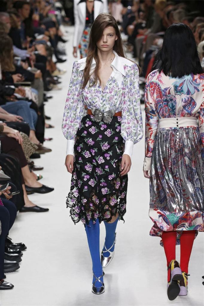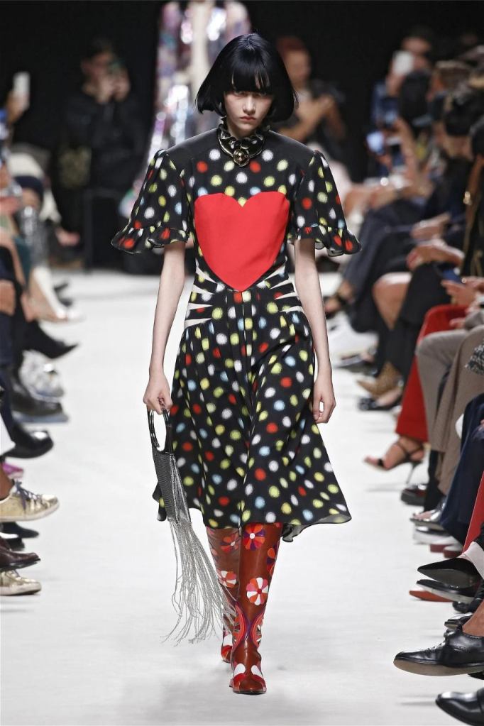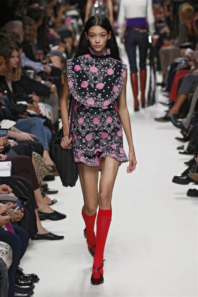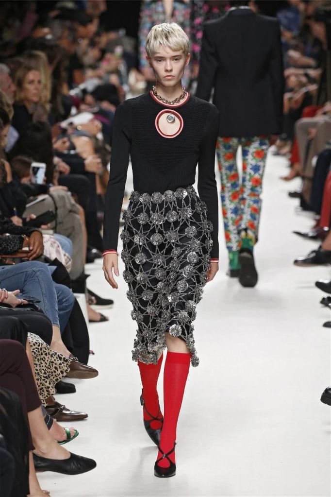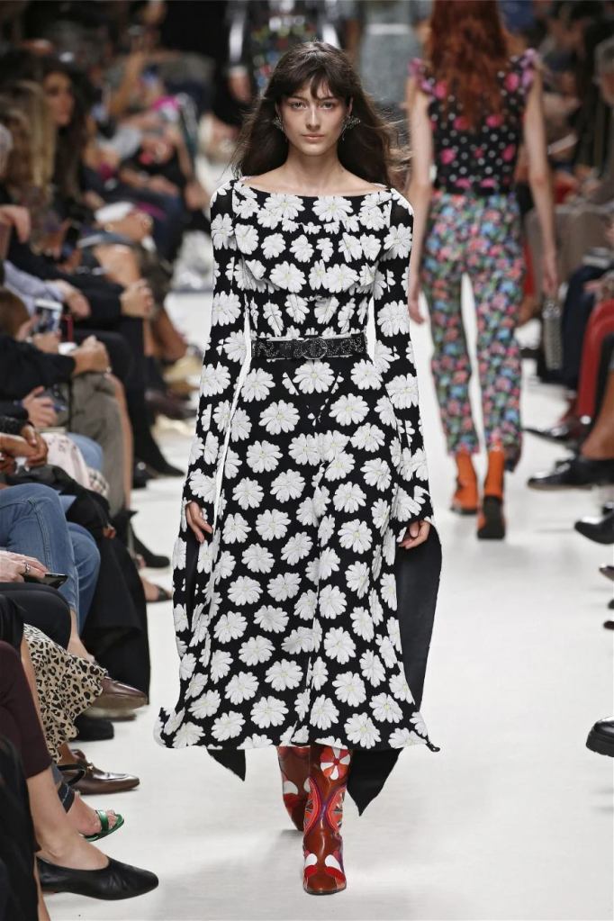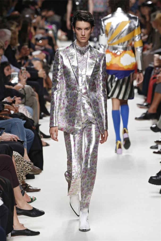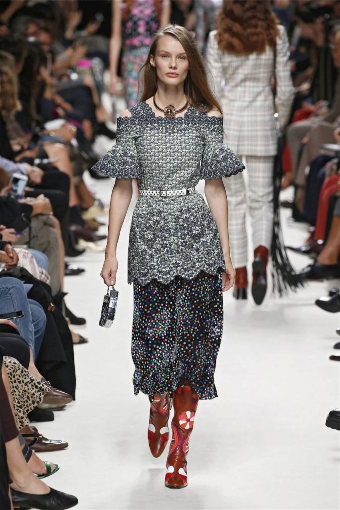 This collection takes a vibrant leap back in time, drawing inspiration from the 1960s and 1970s. The runway was awash in a kaleidoscope of color and texture, infused with a carefree spirit. Prints explode in a psychedelic symphony, dominating garments in swirling florals, geometric patterns, and funky graphic motifs. Chainmail, a signature Rabanne element, adds a touch of edgy opulence.