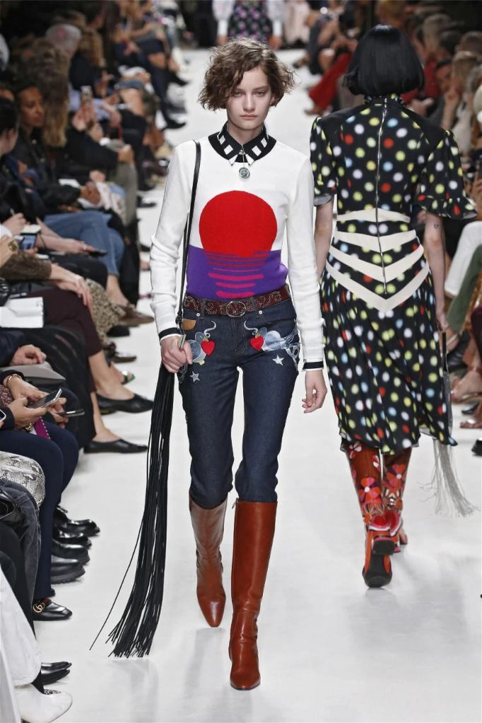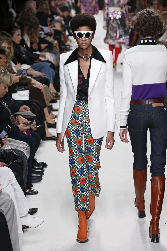 The tailoring, however, keeps things grounded. Sharp blazers with wide lapels offer a structured counterpoint to the playful prints, while flowing maxi dresses and slouchy jumpsuits exude an effortless sense of bohemian cool. Accessories are equally bold, with chunky platforms and oversized sunglasses completing the head-turning ensembles. The meticulous attention to detail in the tailoring ensures a sleek and polished silhouette, balancing the exuberance of the prints.