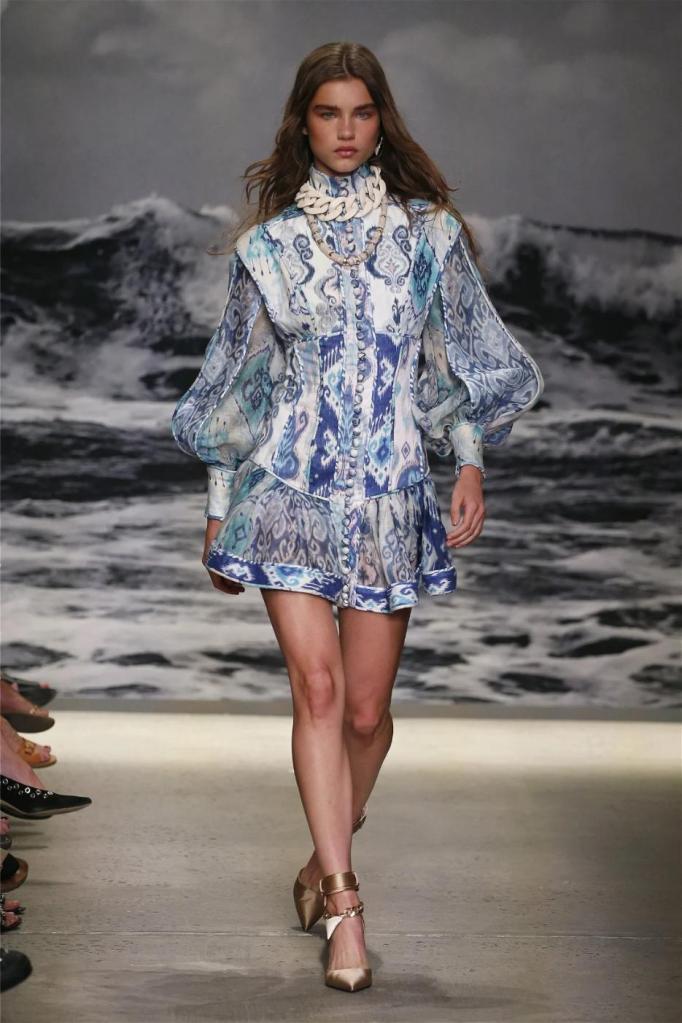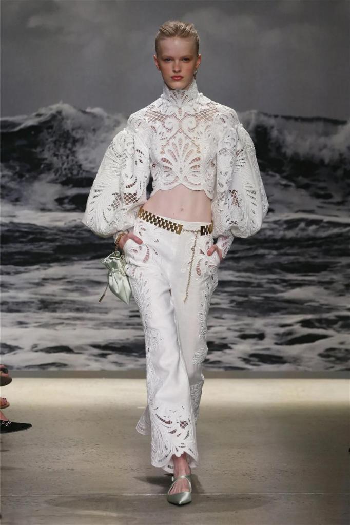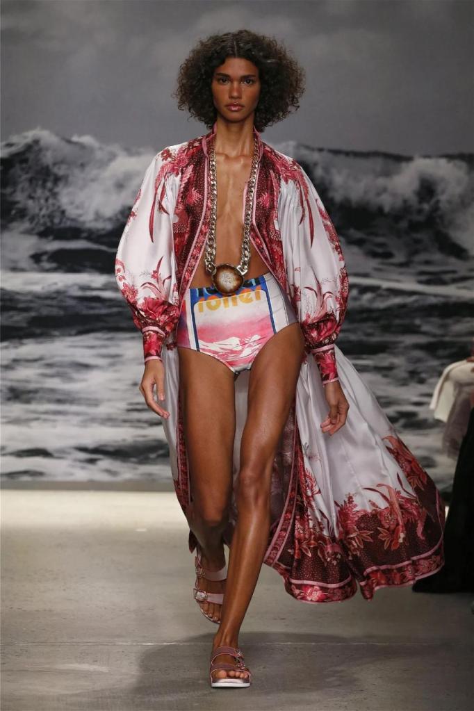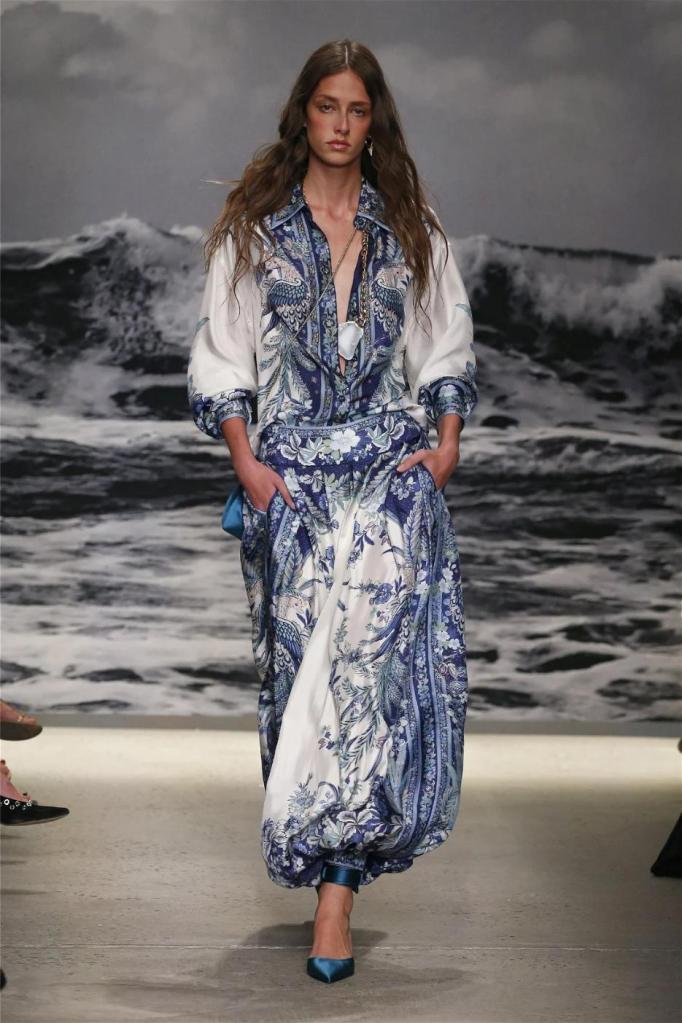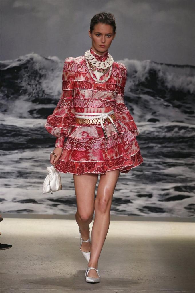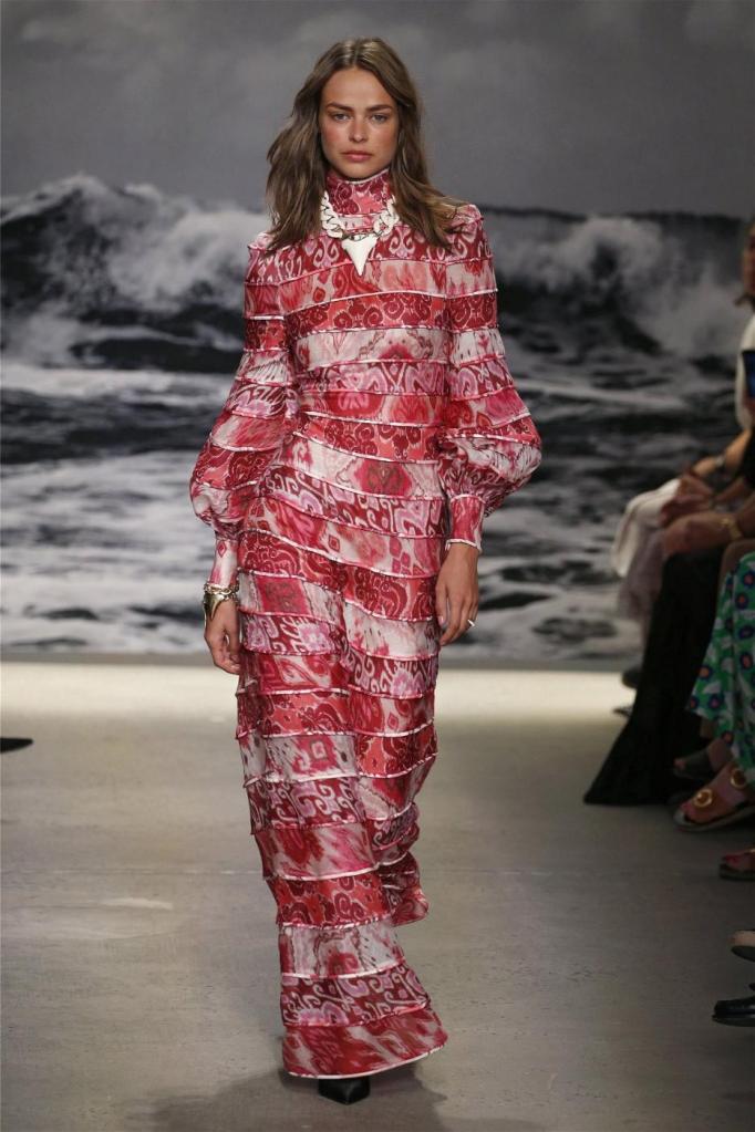 Nicky Zimmermann takes us on a delightful nostalgic journey into the sun-soaked Australian summers of her childhood. The vibrant and pastel hues infuse the line with a colorful energy, reminiscent of carefree days. Flowing maxi dresses ruffled mini skirts, and breezy crop tops take centre stage, radiating effortless femininity that captures the essence of relaxed summer days. Zimmermann’s mastery is evident in her adept mixing and matching of fabrics like linen, silk, and crochet, resulting in visually captivating and tactilely pleasing pieces. The inclusion of straw hats, woven bags, and shell jewellery completes the ensemble, enhancing the laid-back energy.