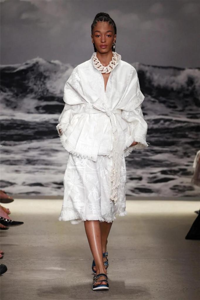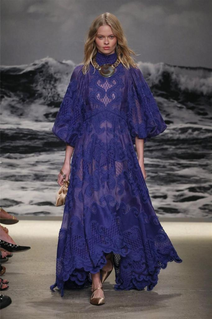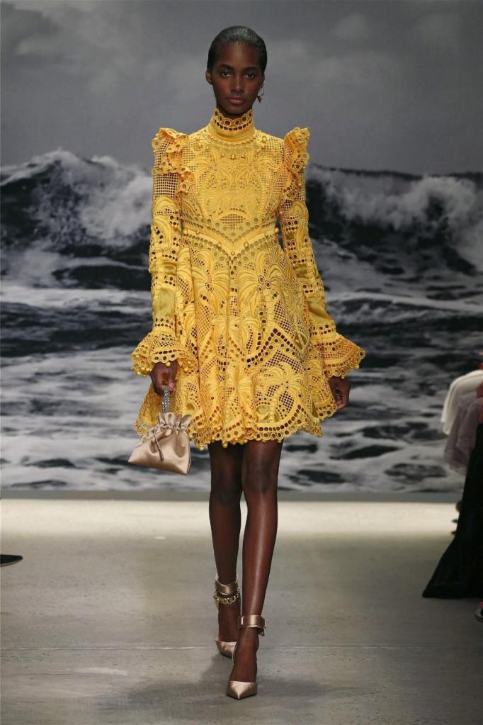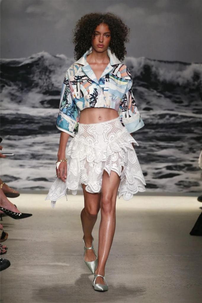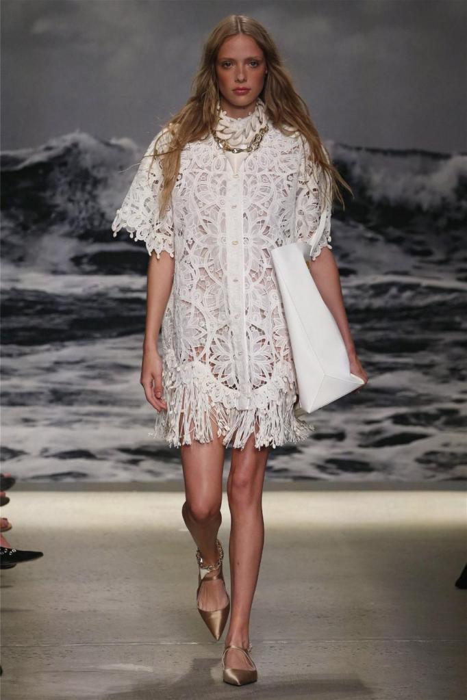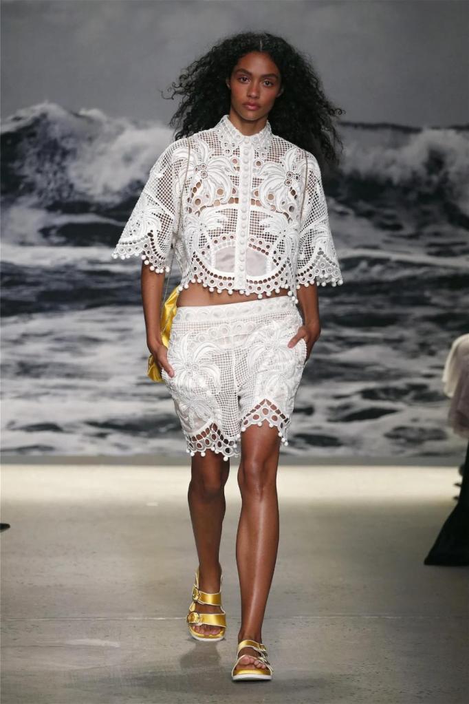 Nicky Zimmermann takes us on a delightful nostalgic journey into the sun-soaked Australian summers of her childhood. The vibrant and pastel hues infuse the line with a colorful energy, reminiscent of carefree days. Flowing maxi dresses ruffled mini skirts, and breezy crop tops take centre stage, radiating effortless femininity that captures the essence of relaxed summer days. Zimmermann’s mastery is evident in her adept mixing and matching of fabrics like linen, silk, and crochet, resulting in visually captivating and tactilely pleasing pieces. The inclusion of straw hats, woven bags, and shell jewellery completes the ensemble, enhancing the laid-back energy.