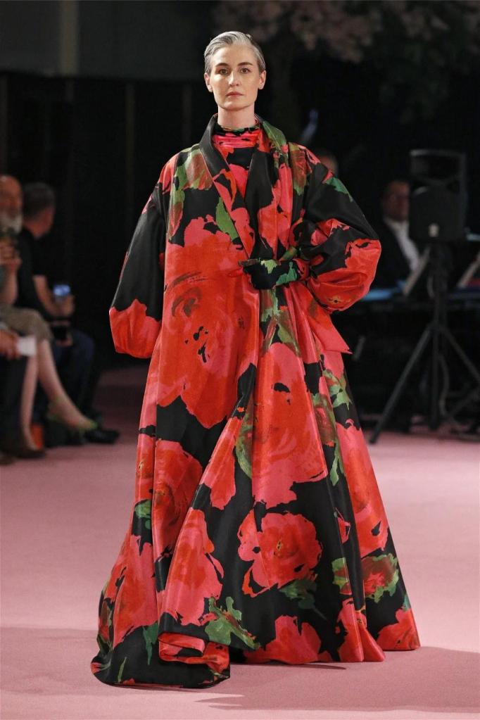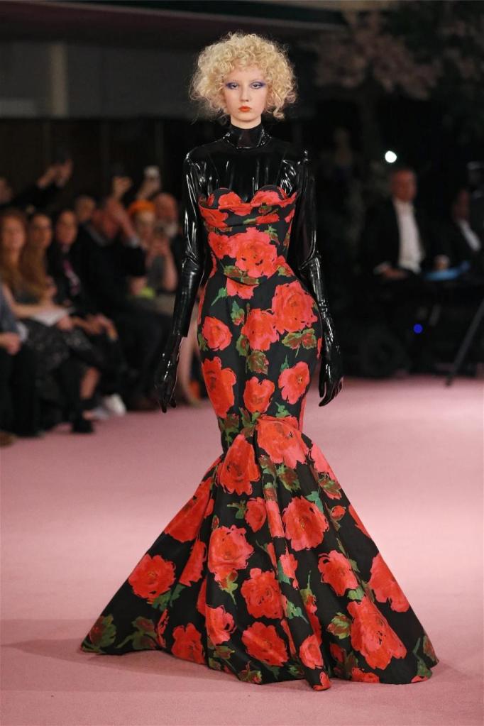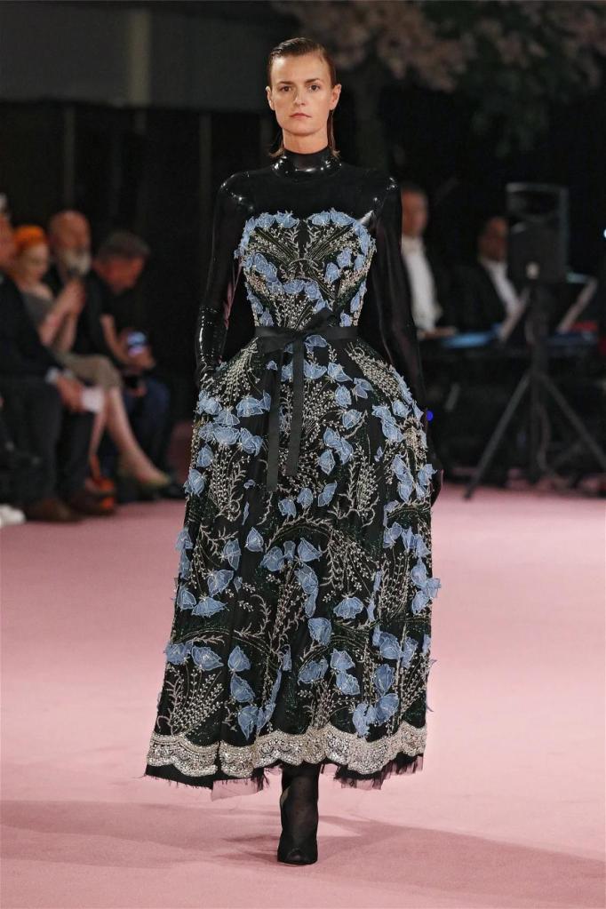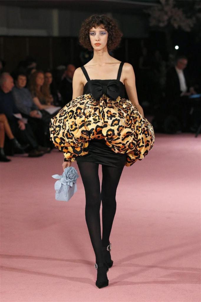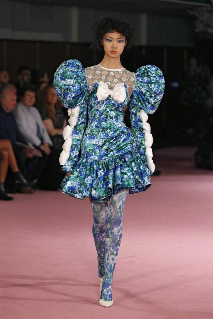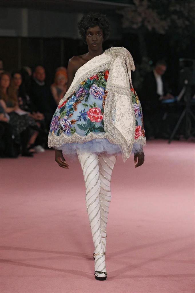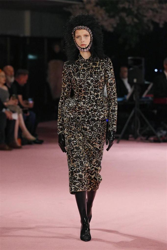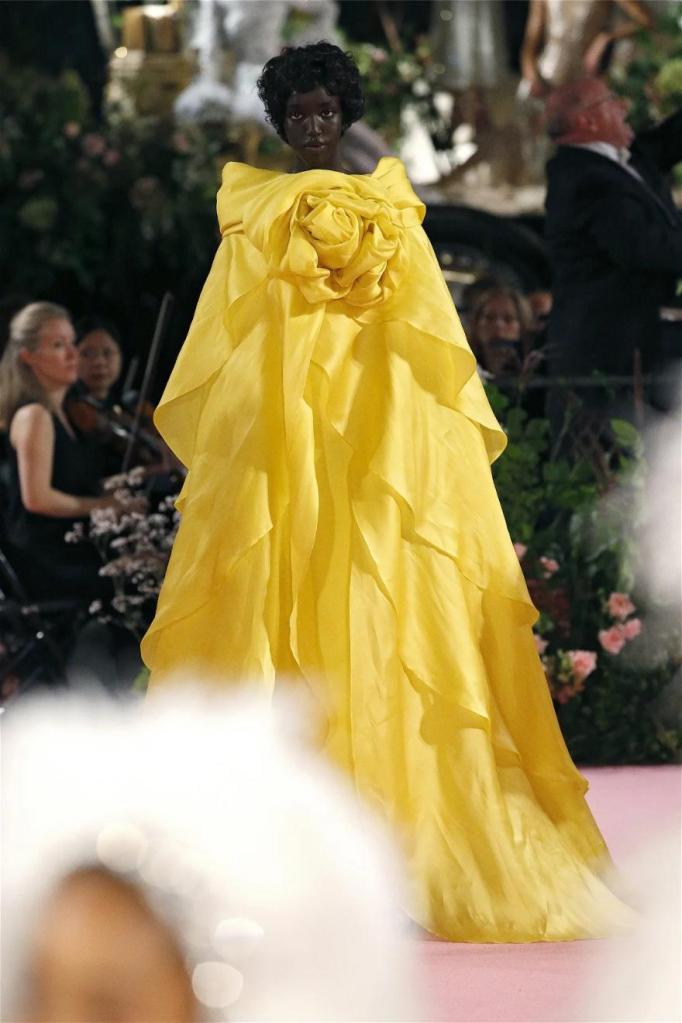 This was maximalism on high, a riot of colour and texture that dared you not to be dazzled. It was a technicolour escape. Inspired by Hockney’s sun-drenched landscapes and Fellini’s whimsical dreams, Quinn spun a world of oversized florals, jewel-toned silks, and feather-fringed grandeur. Gowns ballooned like clouds, dresses bloomed with vibrant life, and sequins glistened hard. Think sweeping capes, ballroom skirts, and bodices cinched to accentuate an air of aristocratic hauteur.