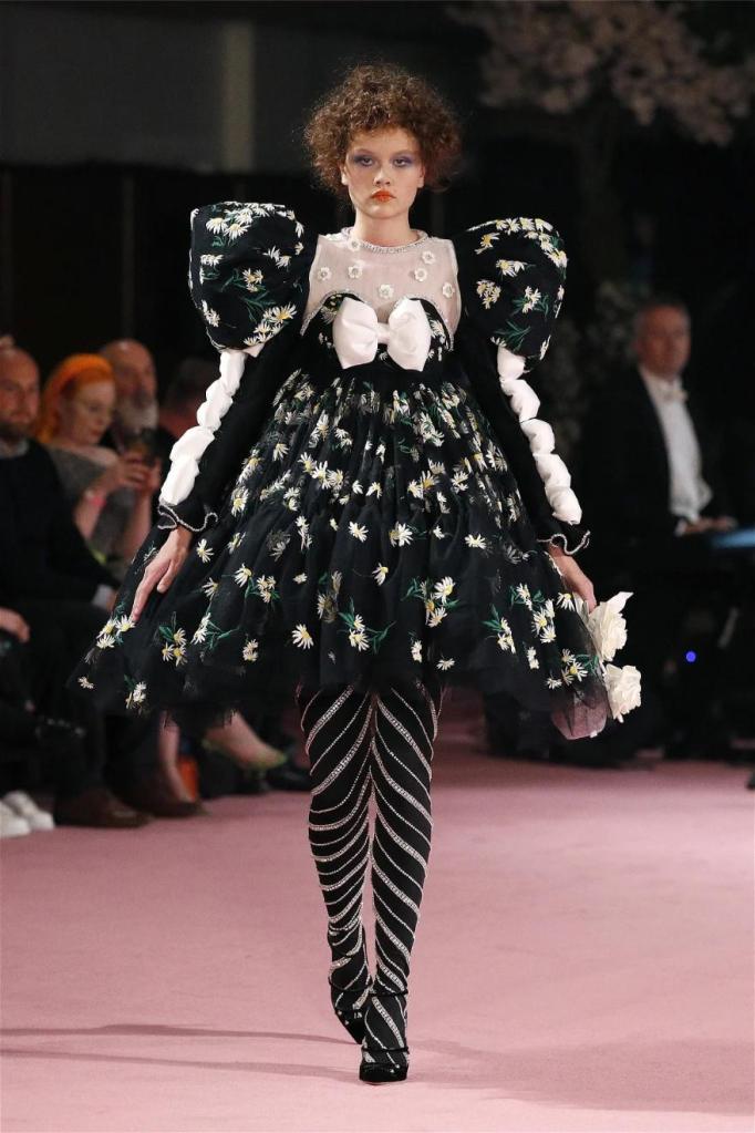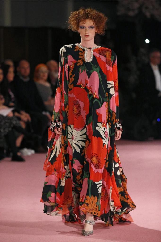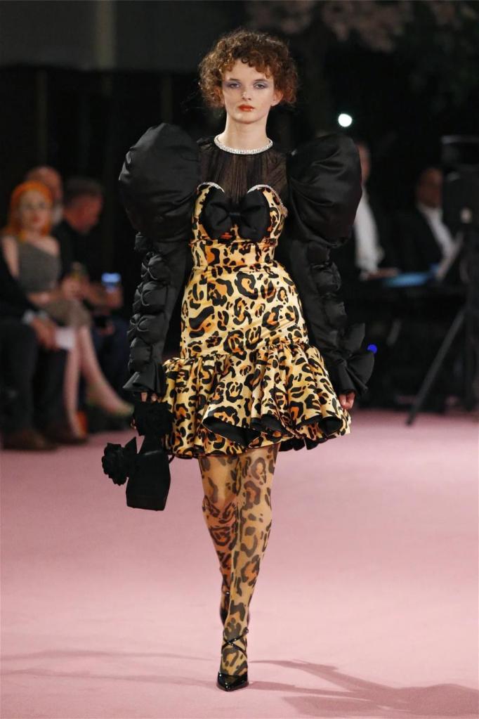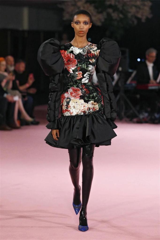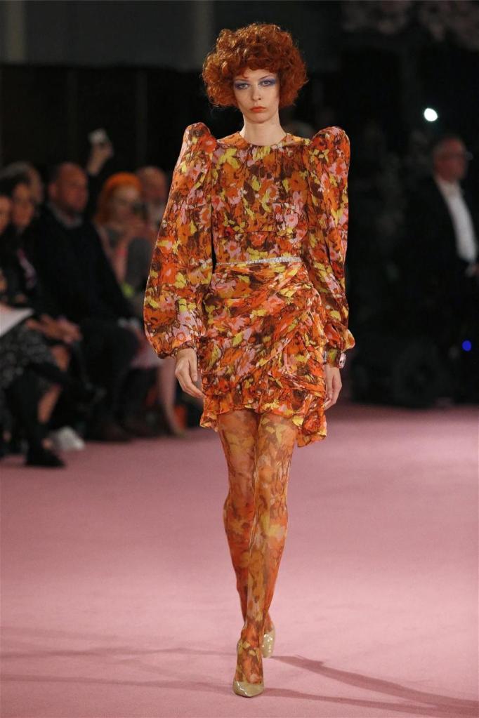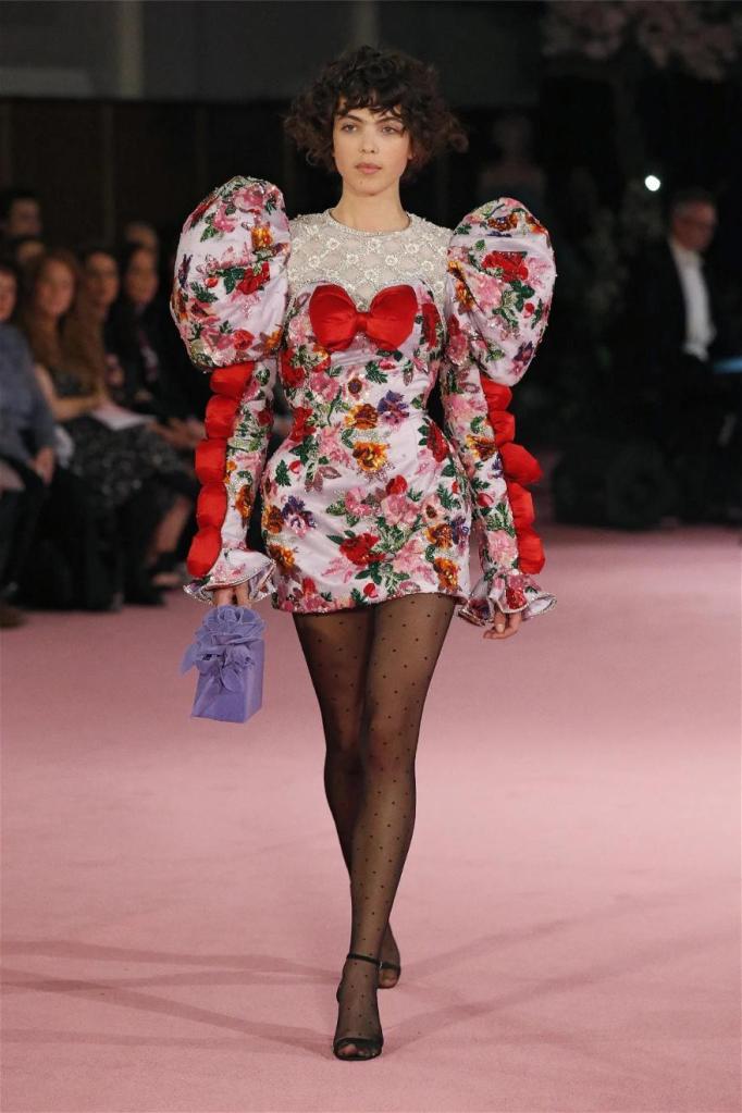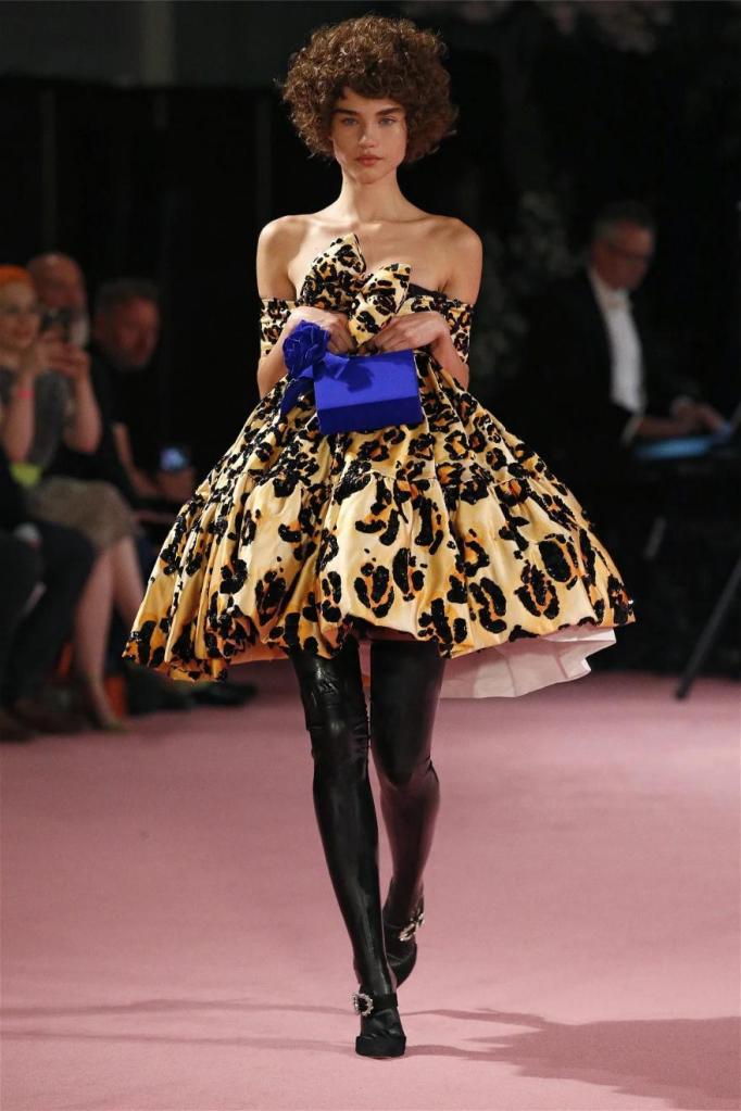 This was maximalism on high, a riot of colour and texture that dared you not to be dazzled. It was a technicolour escape. Inspired by Hockney’s sun-drenched landscapes and Fellini’s whimsical dreams, Quinn spun a world of oversized florals, jewel-toned silks, and feather-fringed grandeur. Gowns ballooned like clouds, dresses bloomed with vibrant life, and sequins glistened hard. Think sweeping capes, ballroom skirts, and bodices cinched to accentuate an air of aristocratic hauteur.