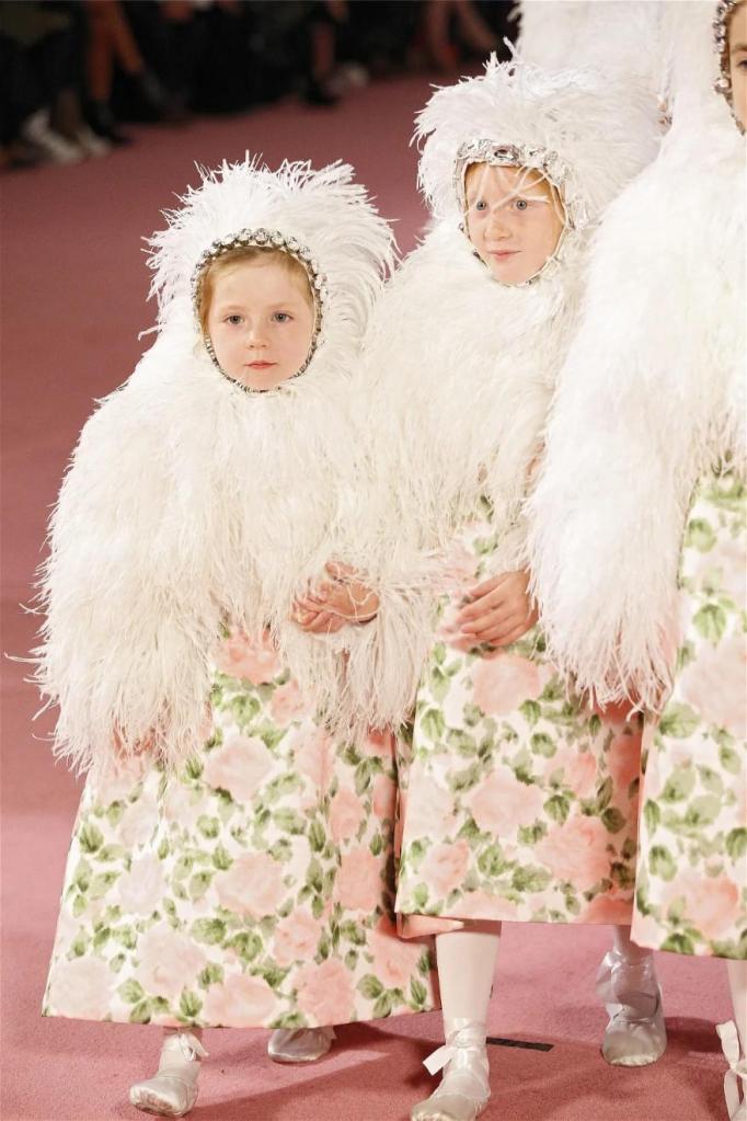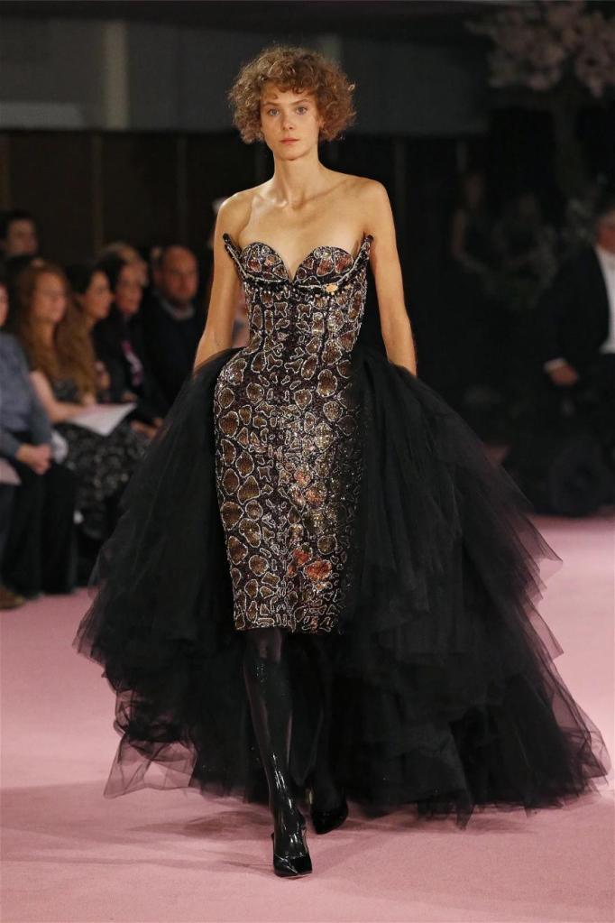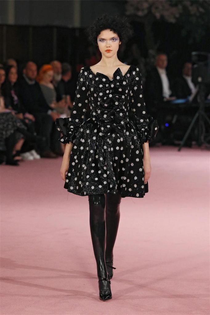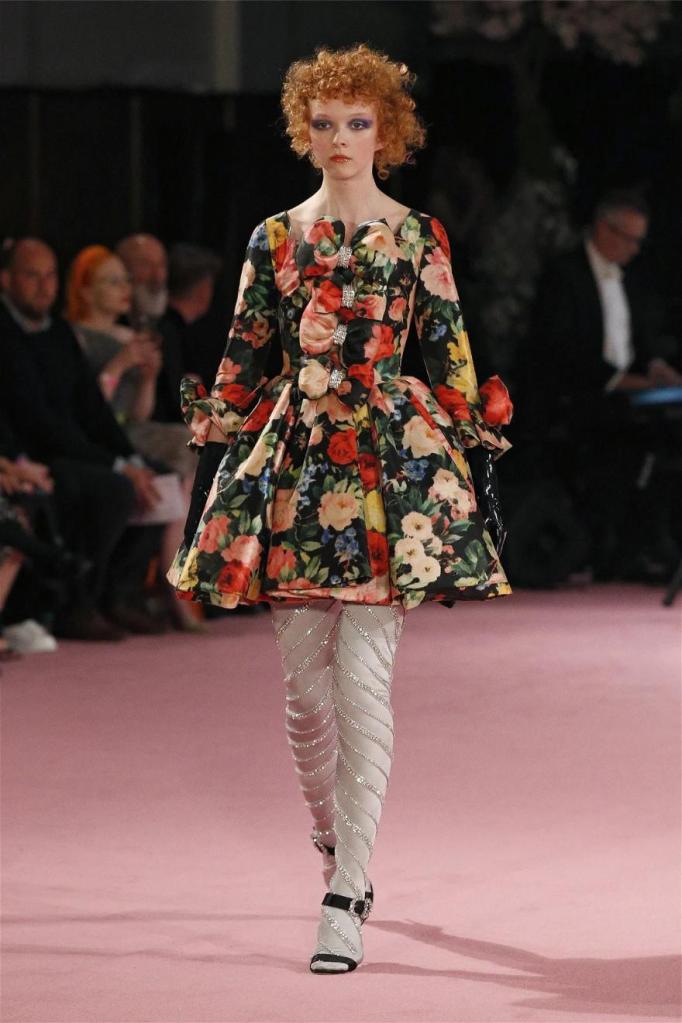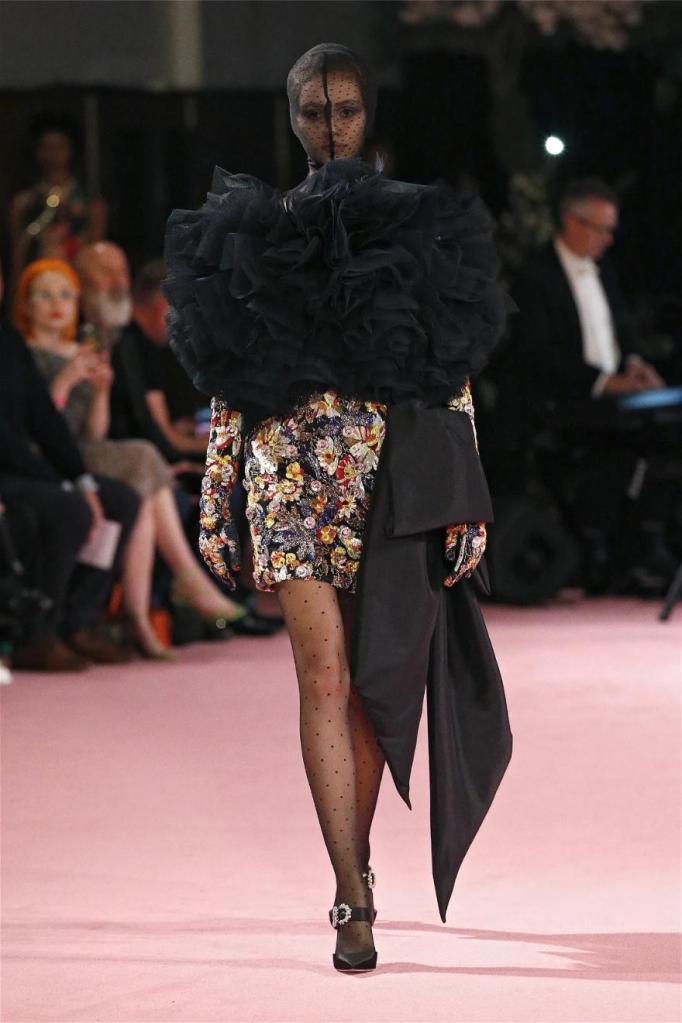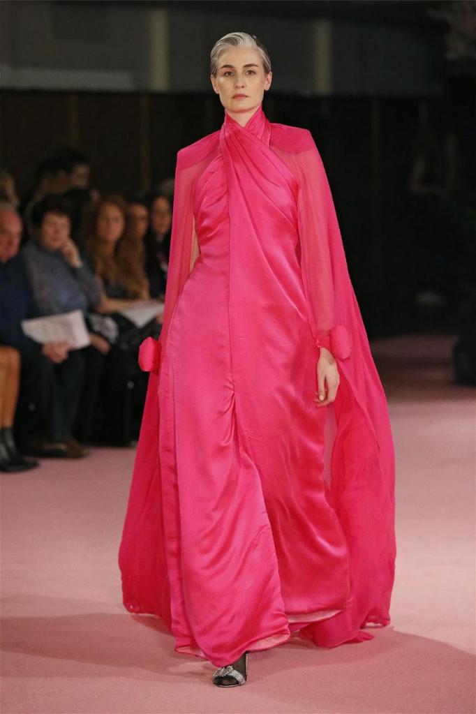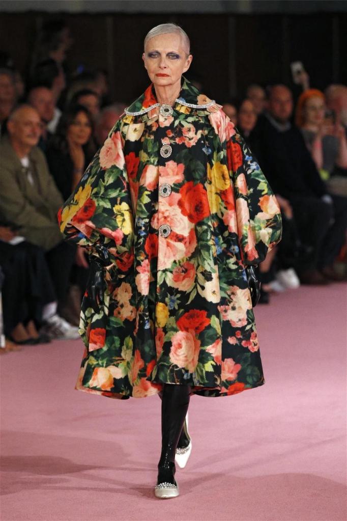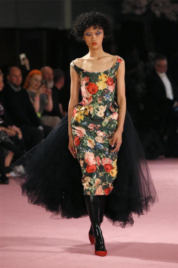 This was maximalism on high, a riot of colour and texture that dared you not to be dazzled. It was a technicolour escape. Inspired by Hockney’s sun-drenched landscapes and Fellini’s whimsical dreams, Quinn spun a world of oversized florals, jewel-toned silks, and feather-fringed grandeur. Gowns ballooned like clouds, dresses bloomed with vibrant life, and sequins glistened hard. Think sweeping capes, ballroom skirts, and bodices cinched to accentuate an air of aristocratic hauteur.