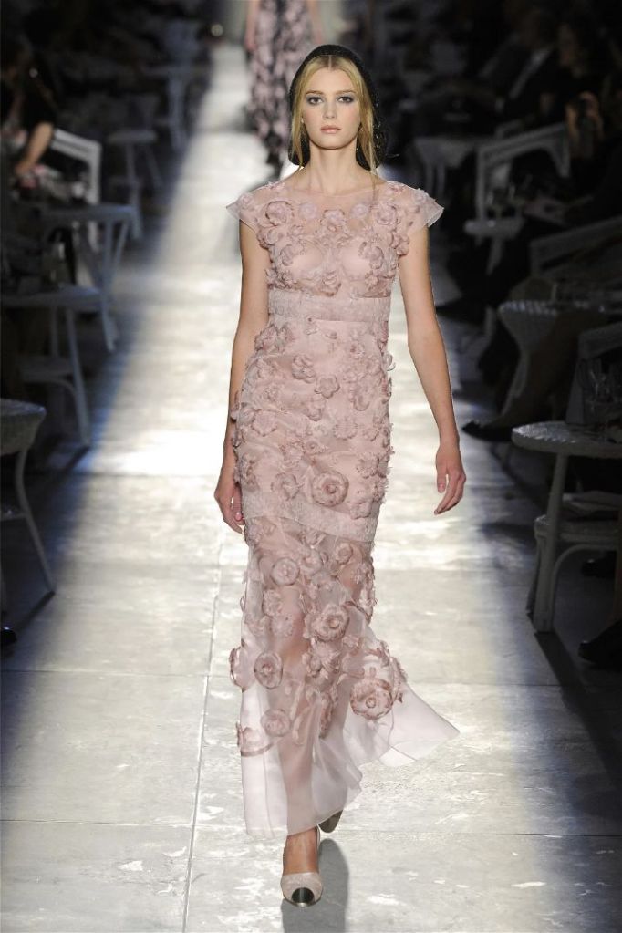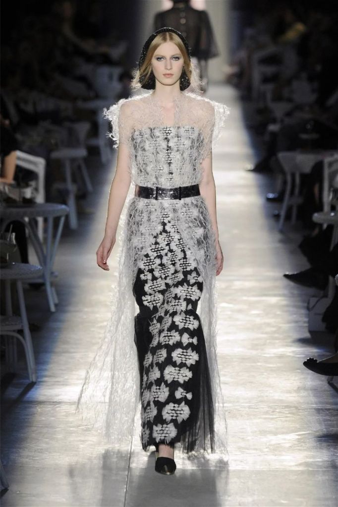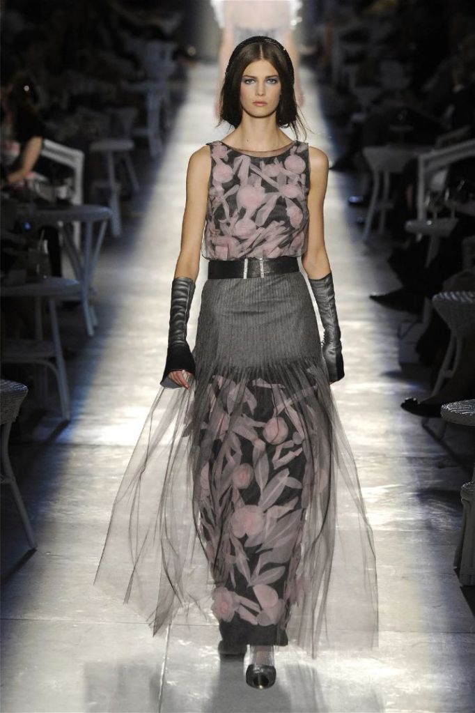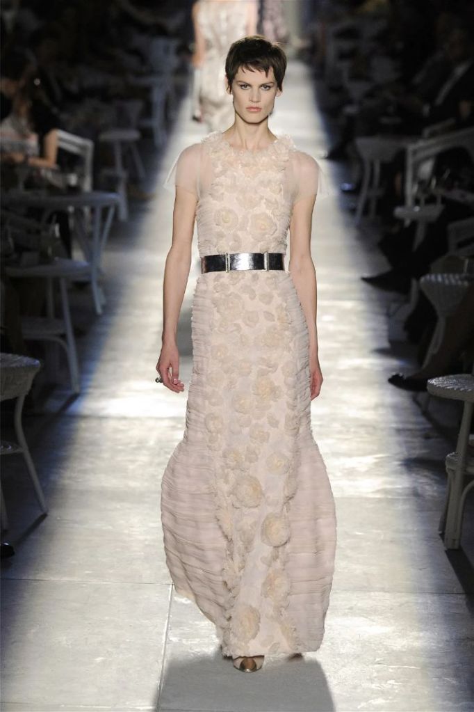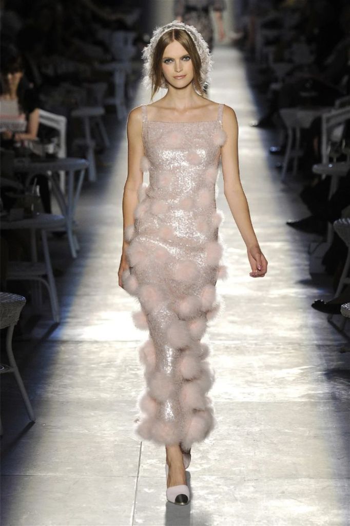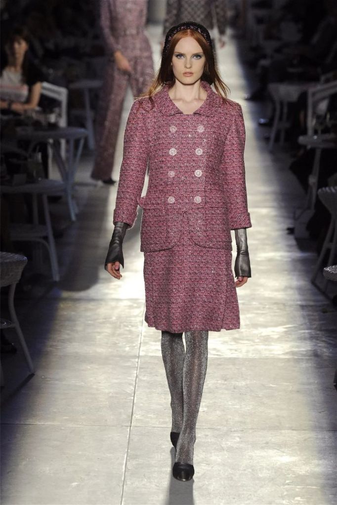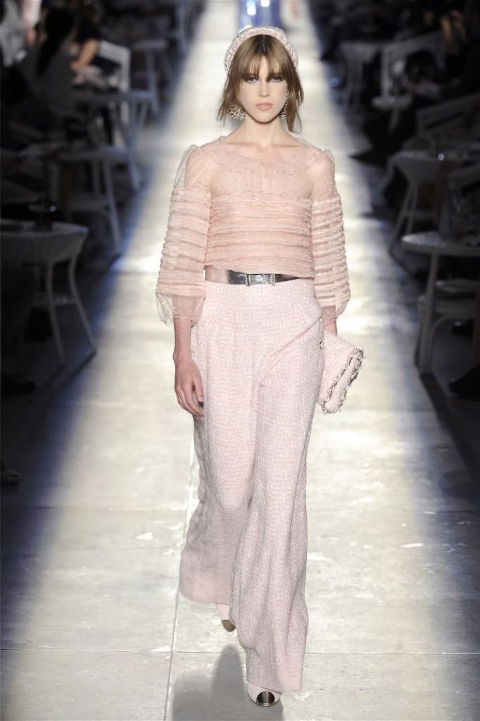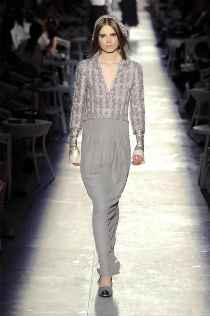 Lagerfeld introduces a sophisticated colour palette of soft grey, pastel pink, taupe, and ivory, capturing the essence of fall. Classic silhouettes are given a contemporary twist with metallic sleeves and belts, blending tradition with modernity seamlessly.