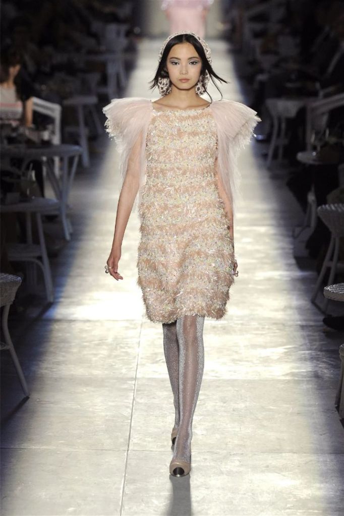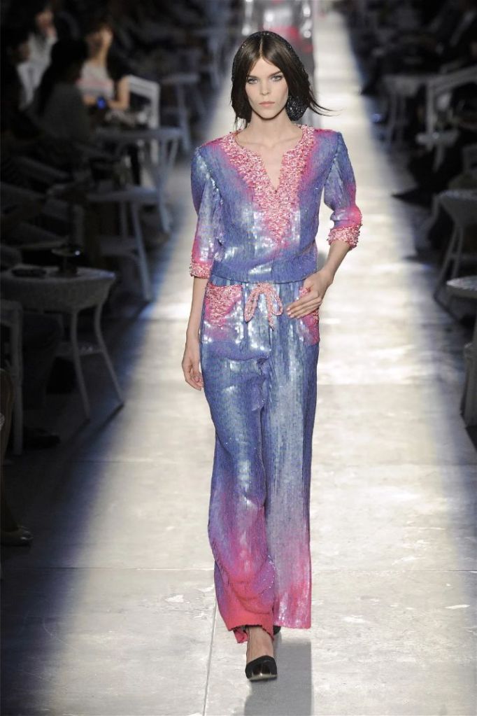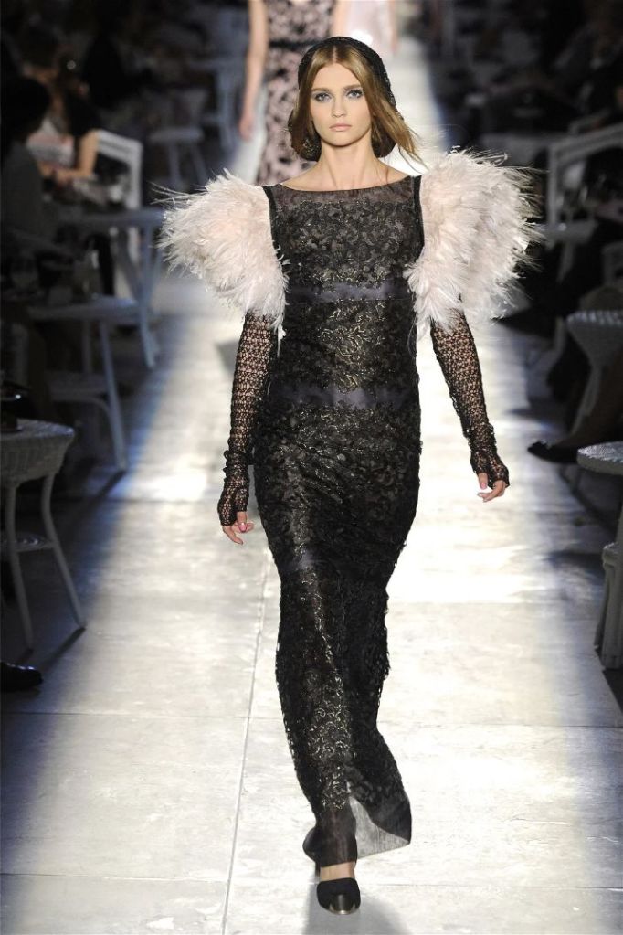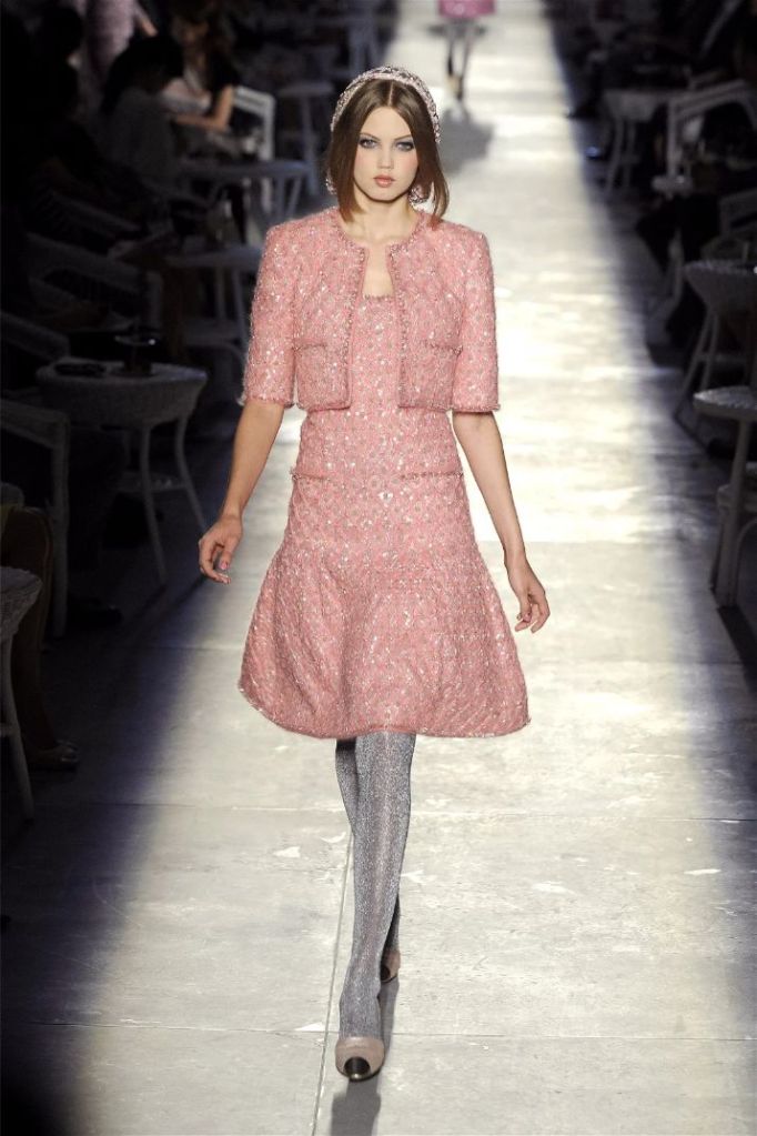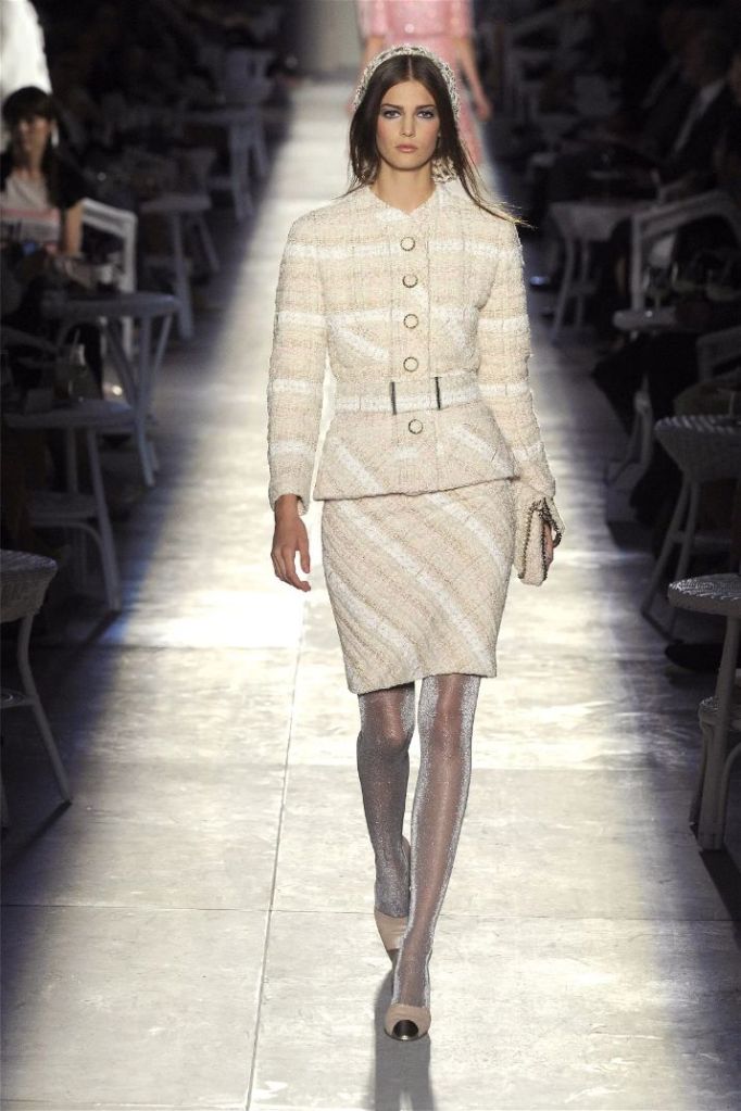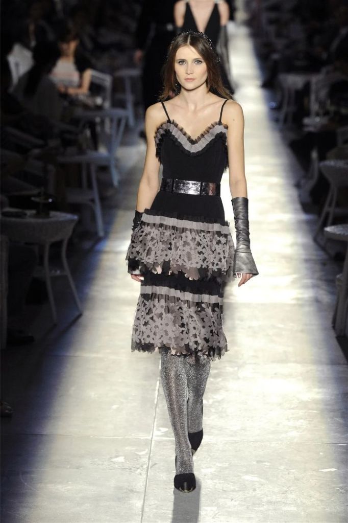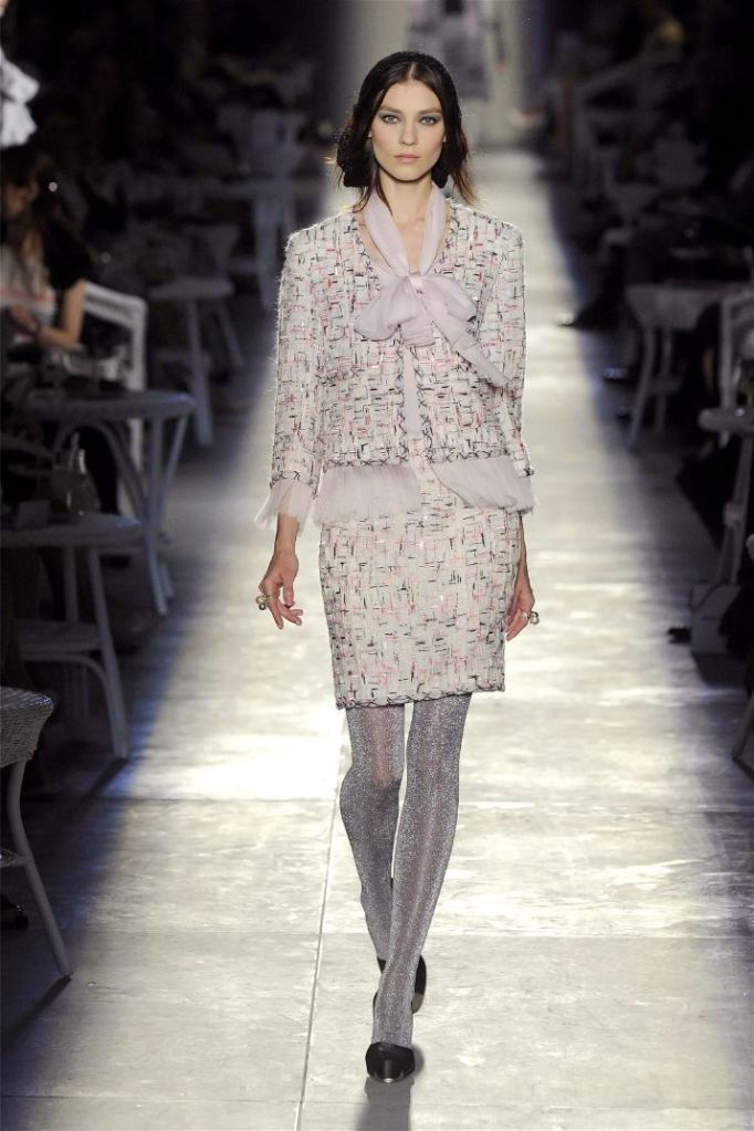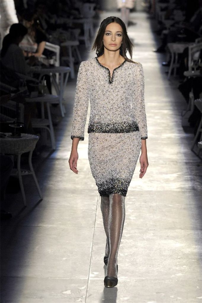 What truly sets this collection apart is Lagerfeld’s innovative use of fabrics. Introducing materials not found in Maison’s archives, such as embroidered tweeds and hand-sewn patchworks on lace, he pushes the boundaries of Chanel’s history. The infusion of a 1970s touch adds a nostalgic charm, while over sixty looks featuring layering and jackets showcase the brand’s commitment to couture craftsmanship.