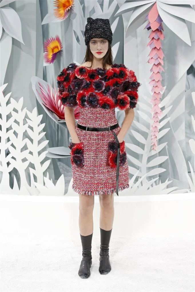 The grand spectacle unfolded in Paris today beneath the expansive glass roof of the Grand Palais, where Karl Lagerfeld orchestrated a transformative runway resembling a mesmerizing Garden of Eden. Drawing inspiration from nature, the collection showcased intricate 3D floral embroidery and crystal-adorned epaulettes, set against a backdrop of blooming origami flowers, creating an unparalleled Chanel garden.