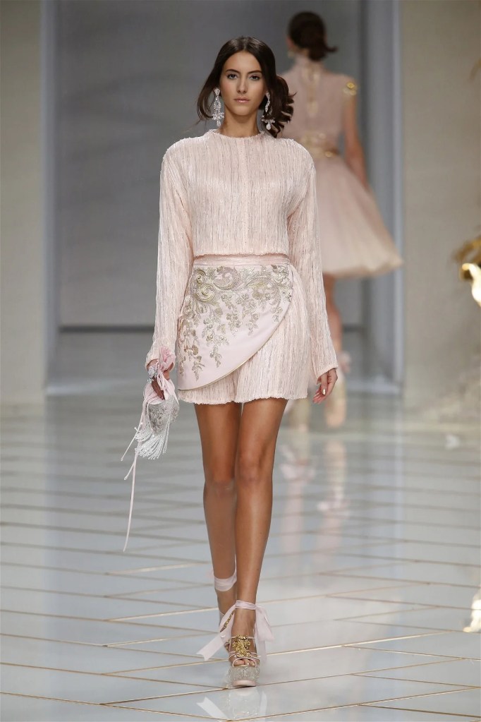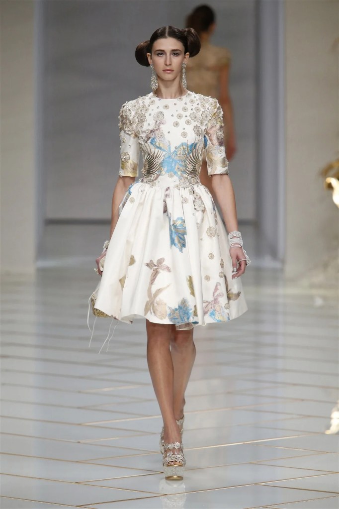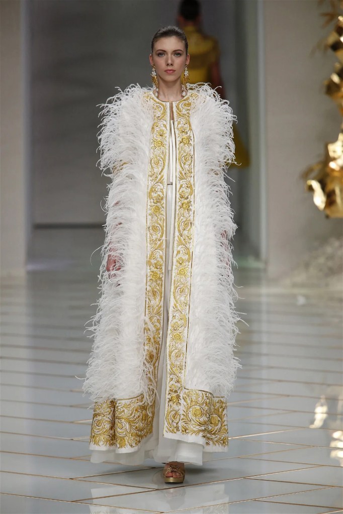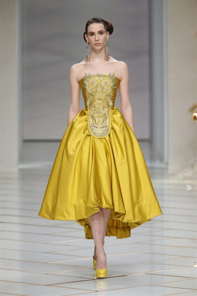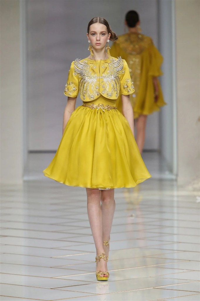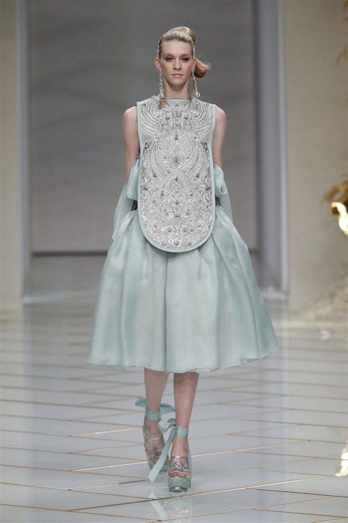 The garments exhibit a blend of refined maximalism and Chinese-inspired touches, featuring Mandarin collars and a fusion of qipao and hanfu silhouettes with a contemporary aesthetic. The collection not only showcases exquisite dresses but also whimsical separates, all adorned with sumptuous embellishments. Guo Pei seamlessly intertwines her Chinese heritage with couture sensibilites creating a collection that exudes drama. A blend of refined maximalism and Chinese-inspired touches, this collection was a true celebration of heritage.