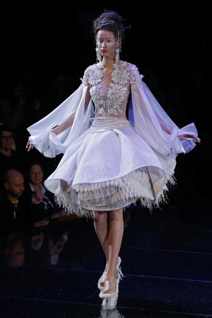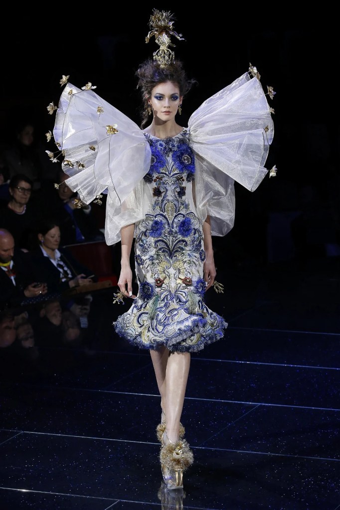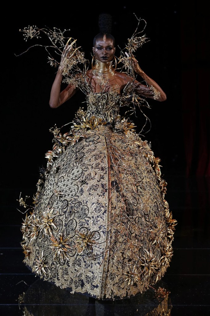 Guo Pei’s “Elysium” couture collection was a fantastical journey into a world of myth and nature. Held at the Le Cirque d’Hiver Bouglione in Paris, the show transformed the stage into a lush, otherworldly garden.