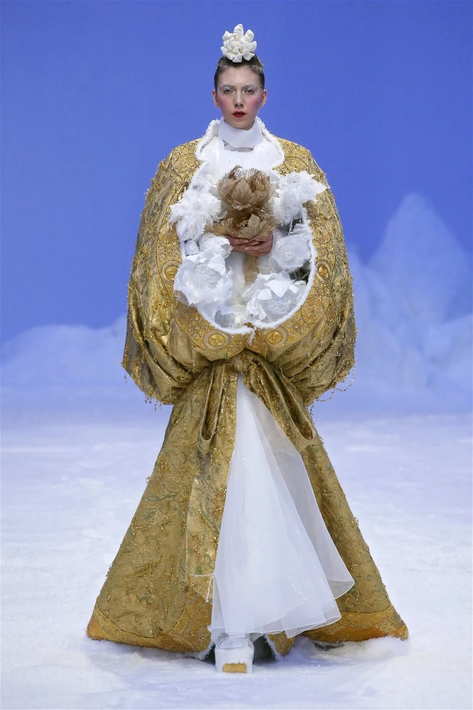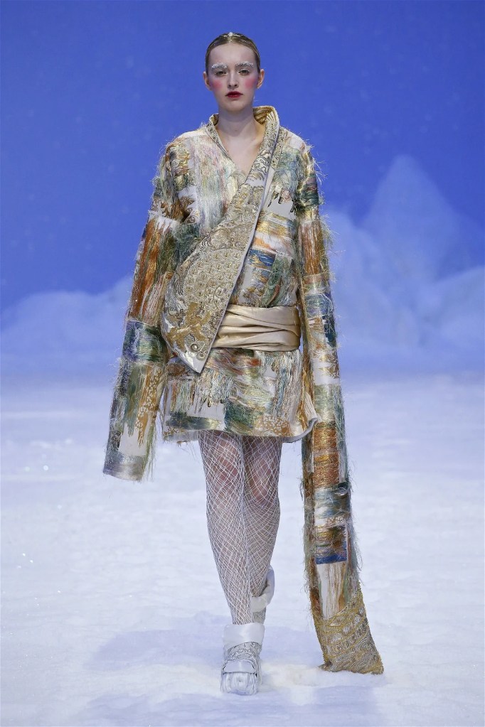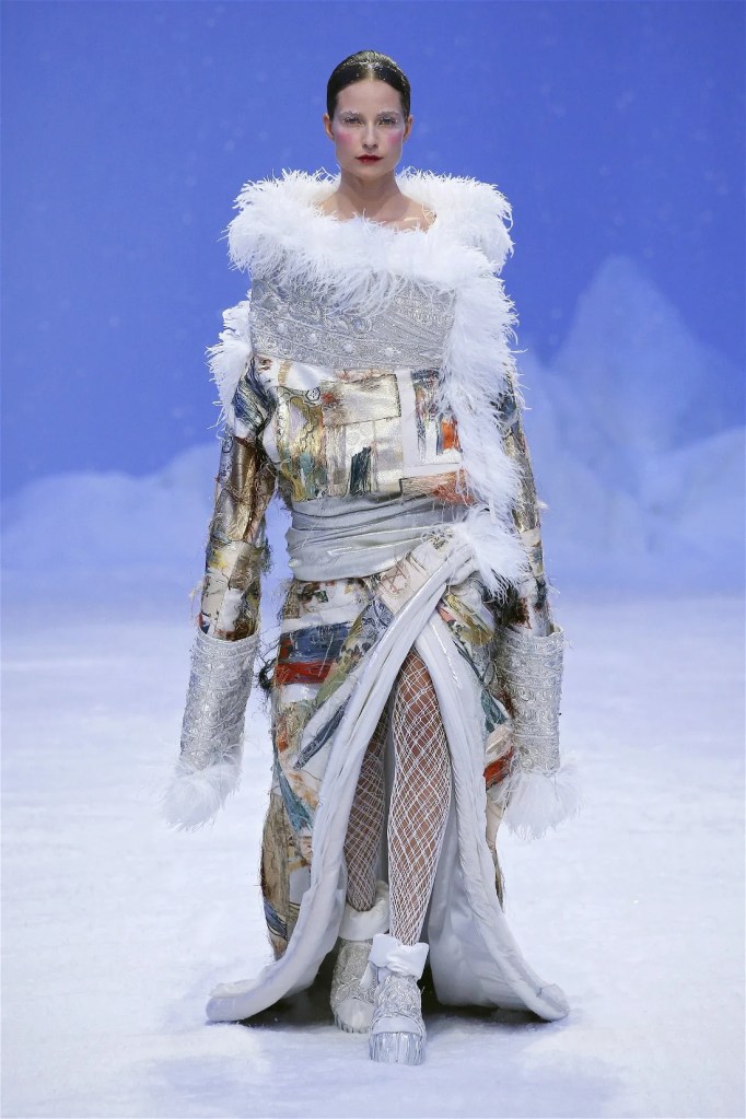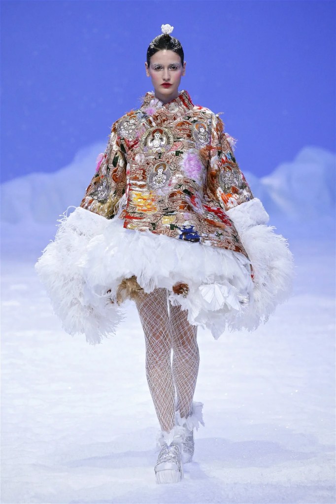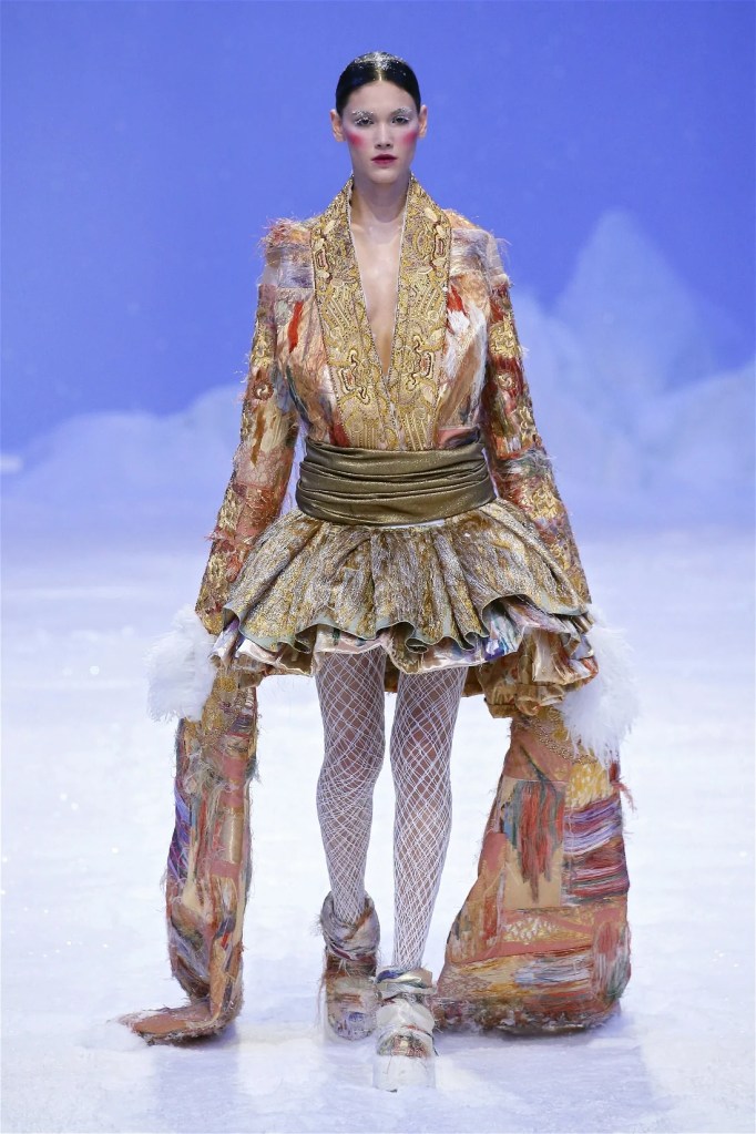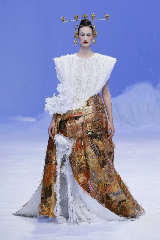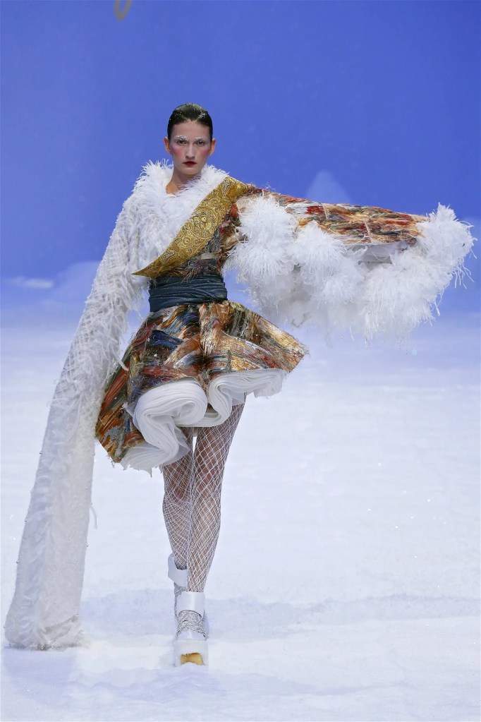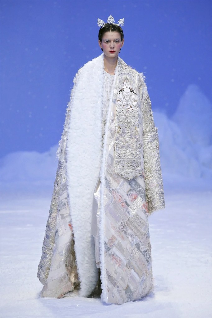 Guo Pei’s ‘Himalaya’ was a breathtaking journey through the ethereal beauty and spiritual significance of the Himalayas. Inspired by her fascination with the region, the collection translated into a series of stunning garments that were both dreamlike and opulent.