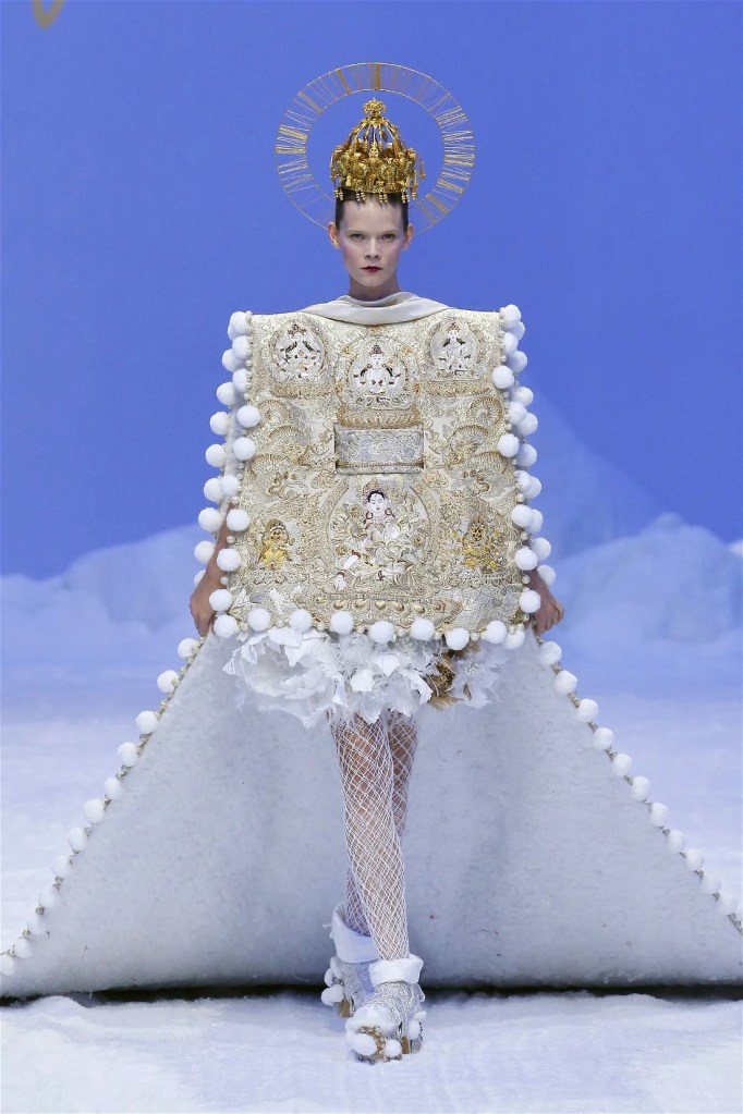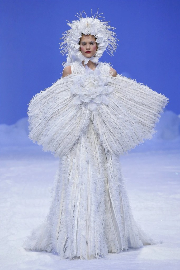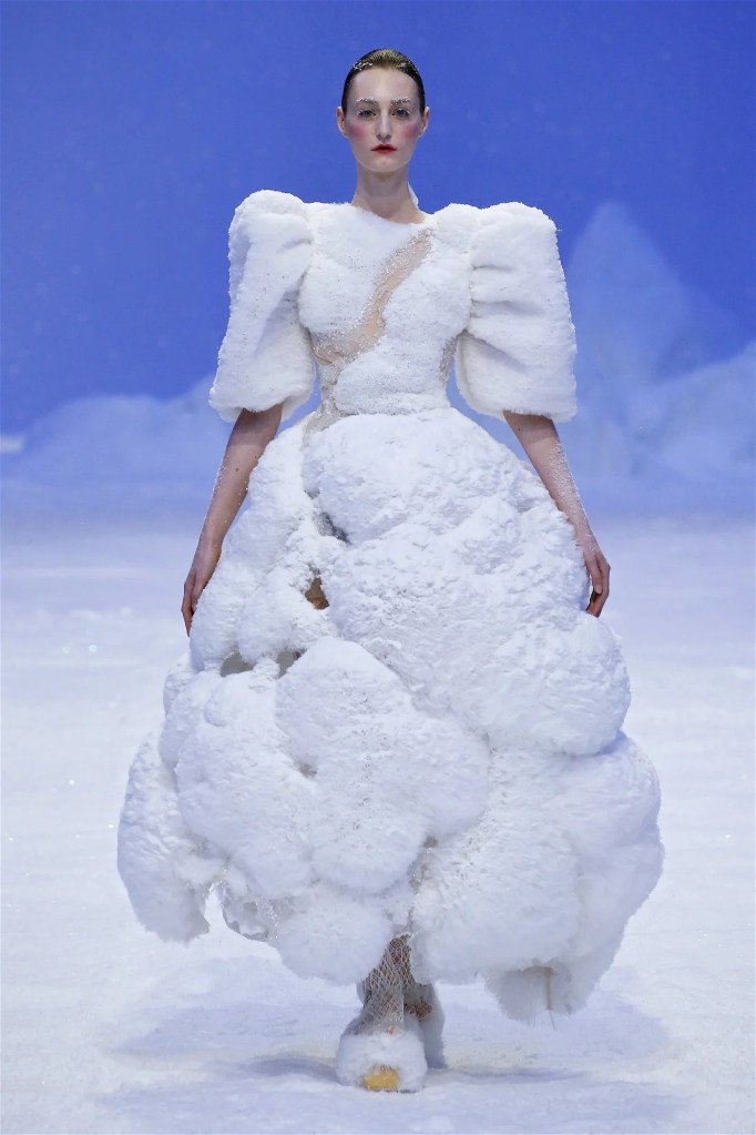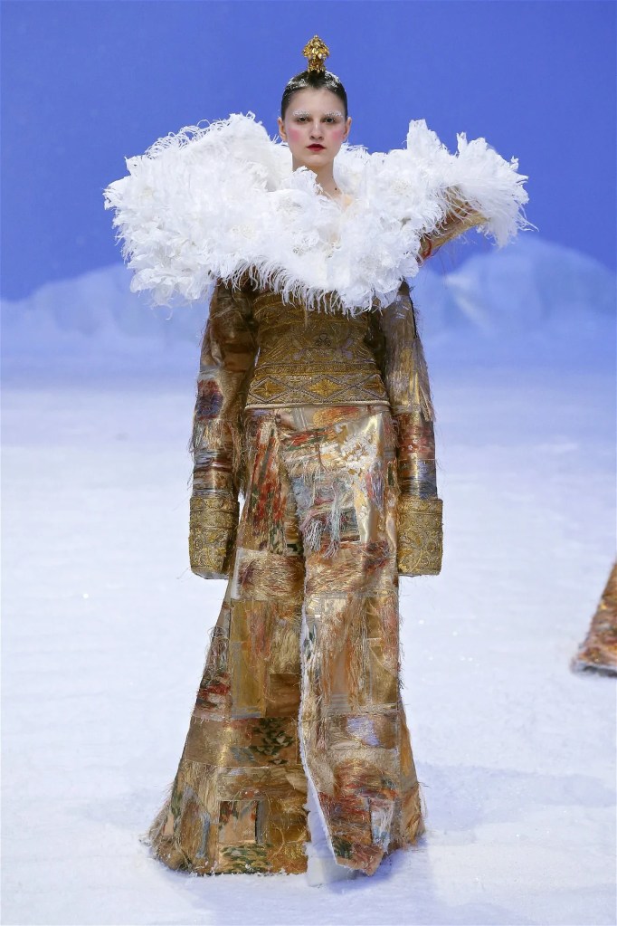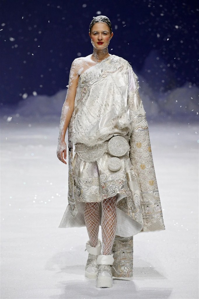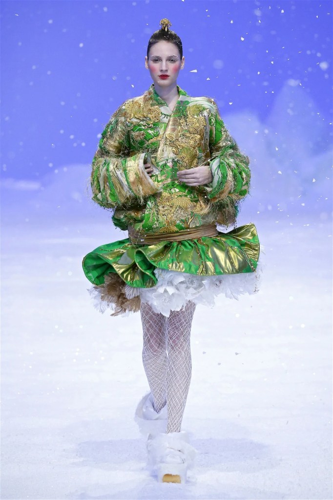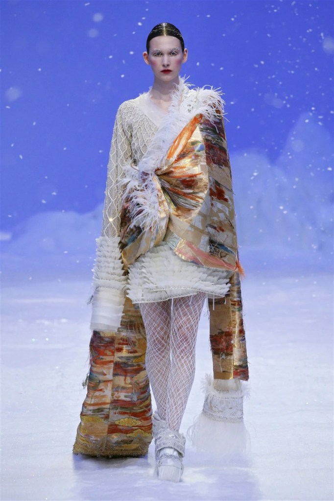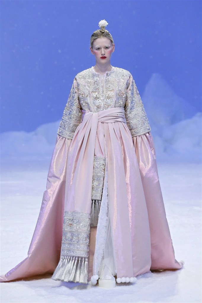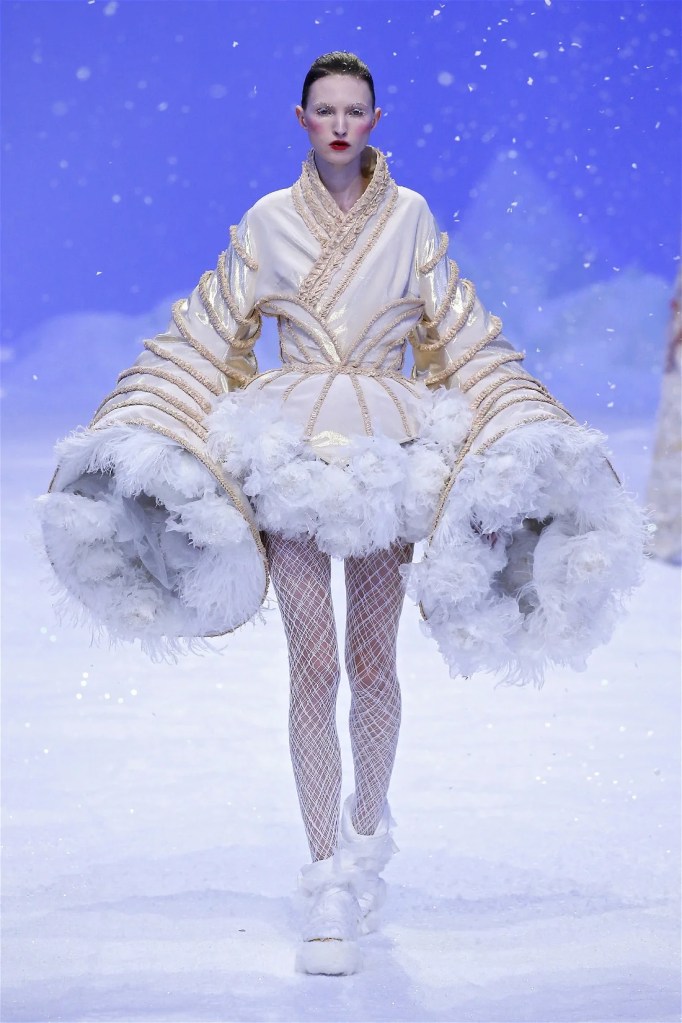 Guo Pei’s ‘Himalaya’ was a breathtaking journey through the ethereal beauty and spiritual significance of the Himalayas. Inspired by her fascination with the region, the collection translated into a series of stunning garments that were both dreamlike and opulent.