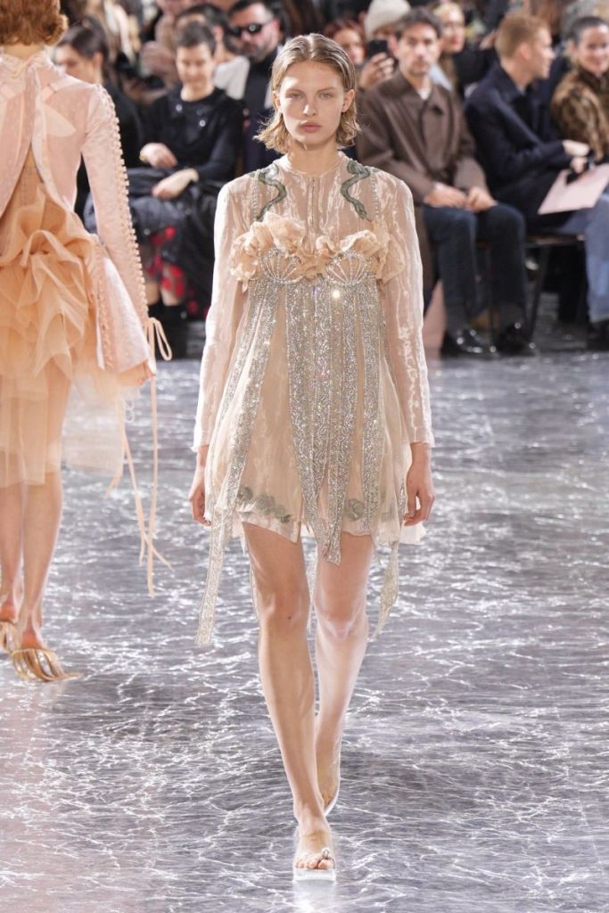 Simone Rocha’s takeover as the creative director of JPG Couture this season was nothing short of mesmerizing. Taking over the reins with her beloved girly, flirtatious energy, Rocha injected a fresh, surprising energy. I instantly fell in love!