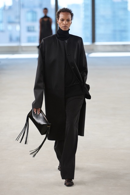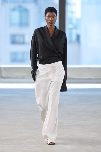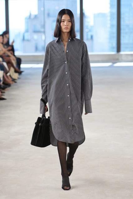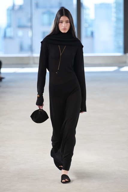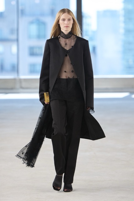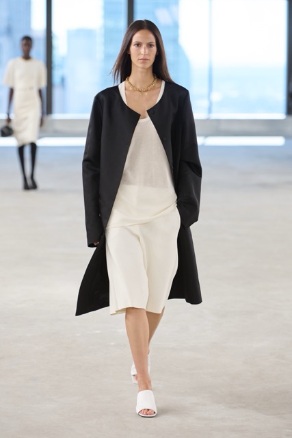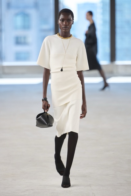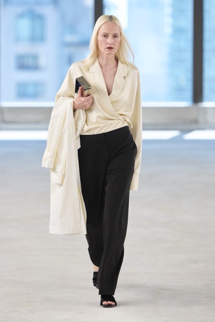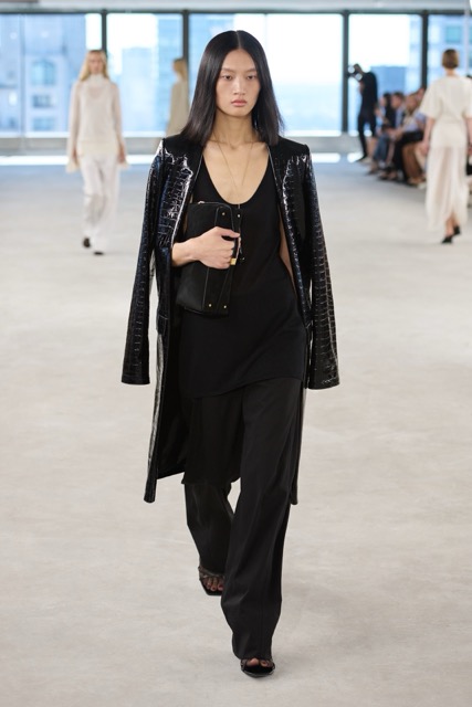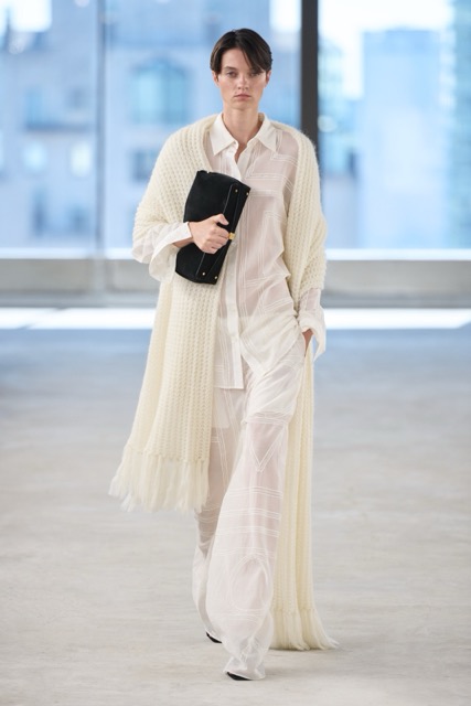 Toteme’s designs focused on creating versatile, day-to-night pieces for busy women, aligning with the brand’s Scandinavian roots and its growing influence in the U.S. The introduction of new accessories, including a scooped wristlet bag and teardrop pendant necklaces, added to the brand’s minimal approach. Toteme continues to align with its Scandinavian roots, balancing minimalist design with timeless elegance, proving that understated is always the shit.